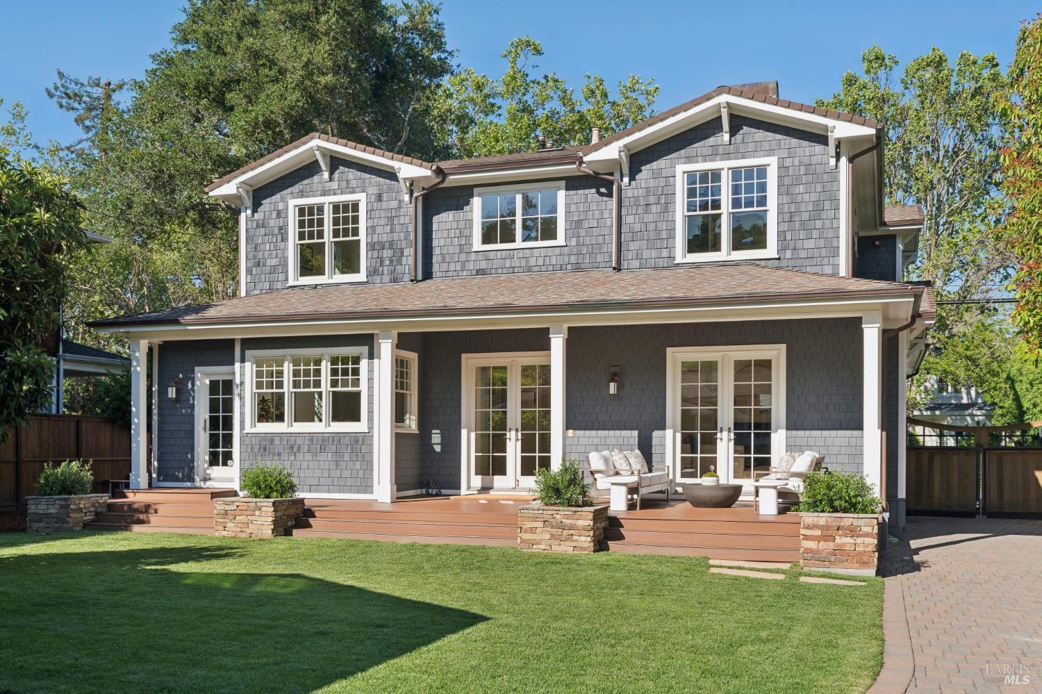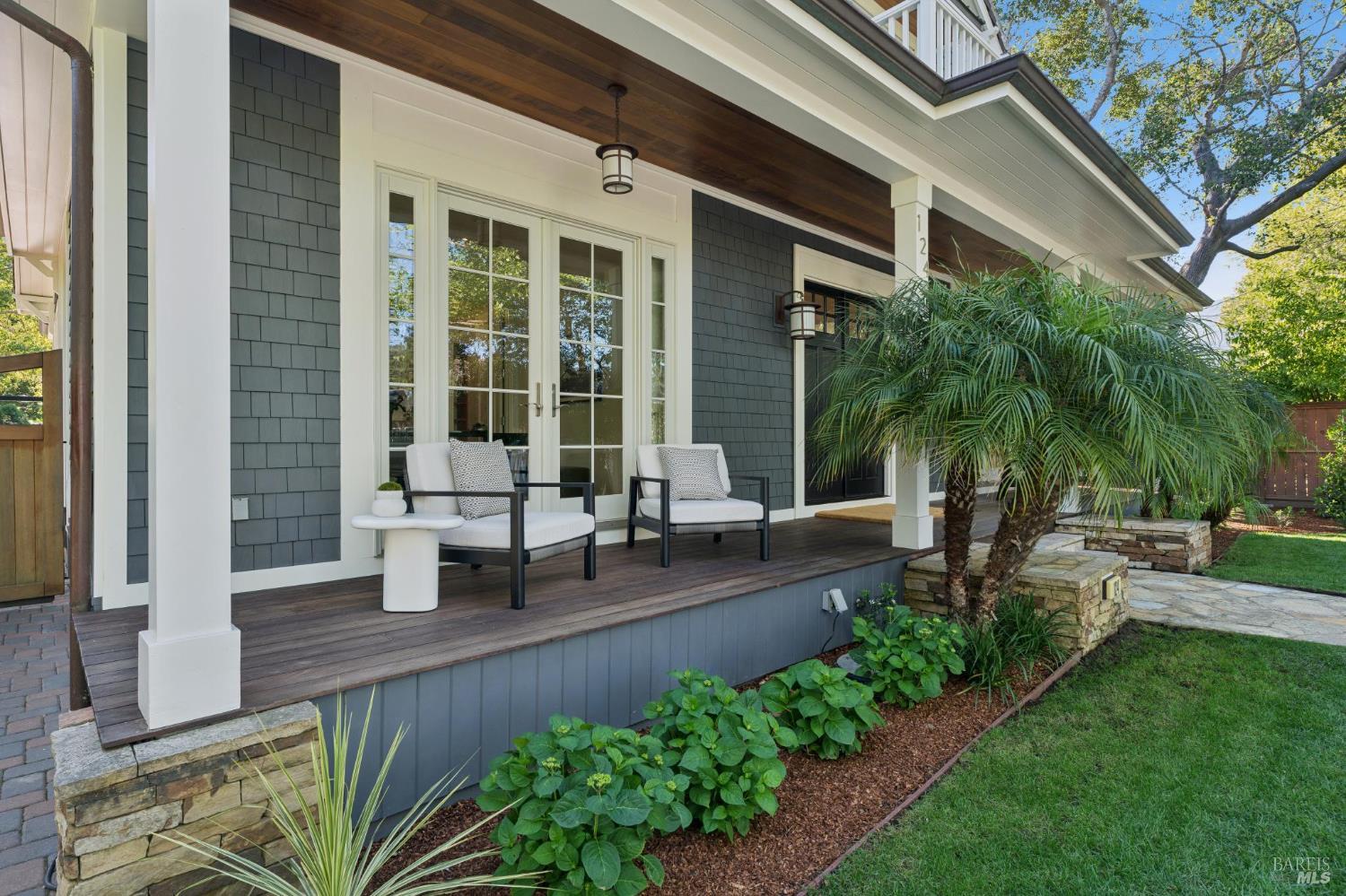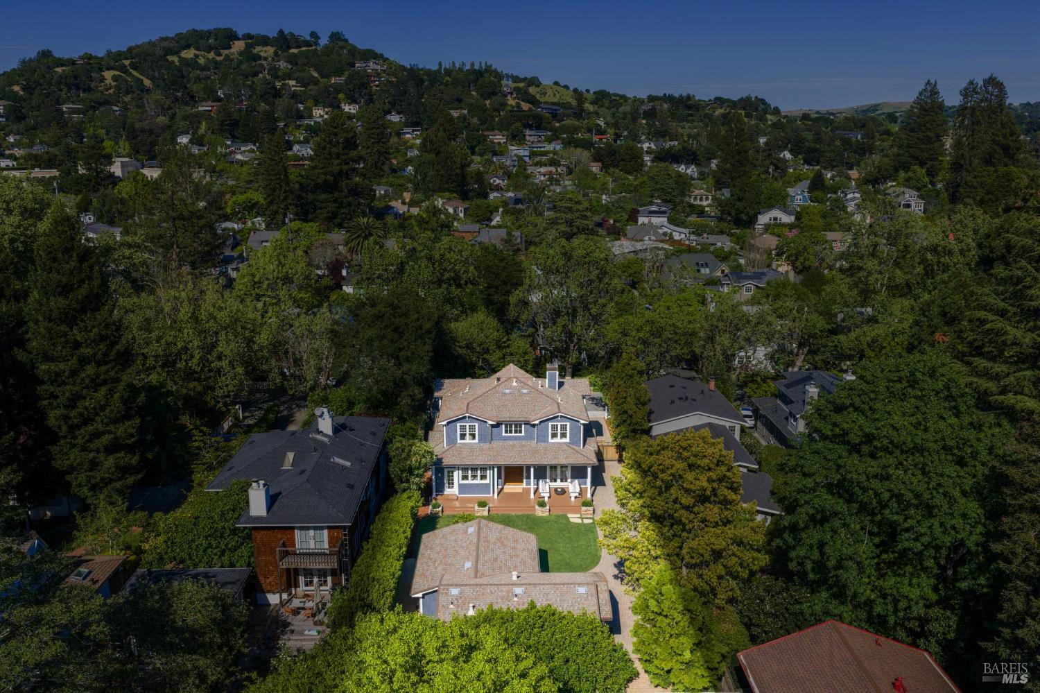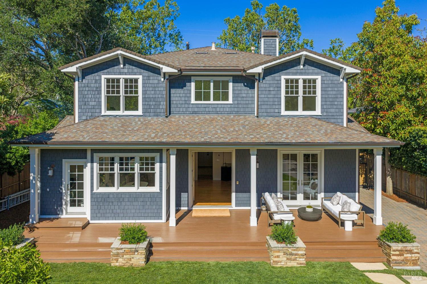 Tucked along what many consider the most coveted, tree-lined street in Sycamore Park, 124 Sycamore Ave captures that unmistakable Father of the Bride magictimeless, warm, and effortlessly inviting. Set on a rare double lot, this home offers a sense of space and privacy that's nearly impossible to find in Mill Valley. A classic Ipe wood front porch welcomes you in, where all-day sunshine pours across the property, creating a bright, uplifting atmosphere from morning to evening. Inside, the scale and craftsmanship immediately stand out. A dramatic two-story entry and soaring 10-foot ceilings set the tone, while solid core doors and hardwood floors throughout speak to the home's exceptional build quality. Designed for both everyday living and entertaining, the elegant formal dining room pairs beautifully with a thoughtfully designed kitchen featuring a charming built-in banquette and an oversized walk-in pantry. The heart of the home opens seamlessly to the outdoorskitchen and living spaces lined with multiple French doors that invite you into a completely fenced, private yard, perfect for hosting, relaxing, or letting kids play freely. Upstairs, four bedrooms on one level offer the layout today's buyers crave, including three ensuite bedrooms for comfort and flexibility. With five bedrooms total, there's space for guests, a home office, or whatever your lifestyle demands. Adding even more versatility, the property includes a beautifully appointed ~450 sq ft guest unitideal for visiting friends and family, an au pair, or a private work-from-home retreatalongside a detached two-car garage that blends seamlessly with the home's classic architecture. And then there's the locationjust a short stroll to the vibrant Mill Valley Depot, where cafs, shops, and gathering spaces create a daily rhythm reminiscent of a European piazza. This is Mill Valley living at its best: classic charm, modern functionality, and a rare sense of spaceall in one of the town's most beloved neighborhoods.