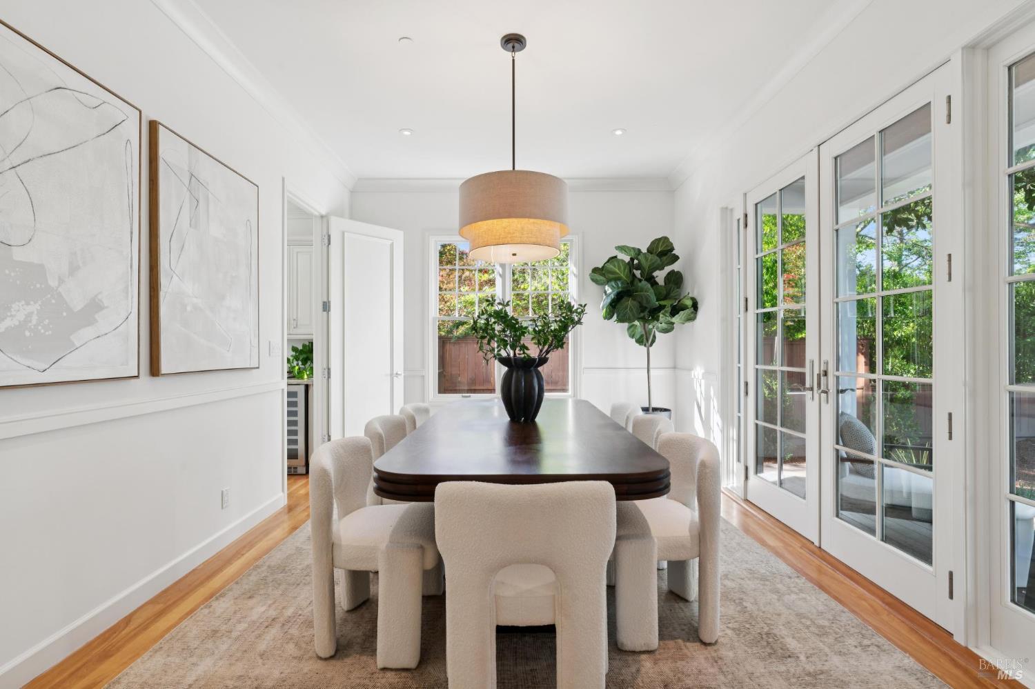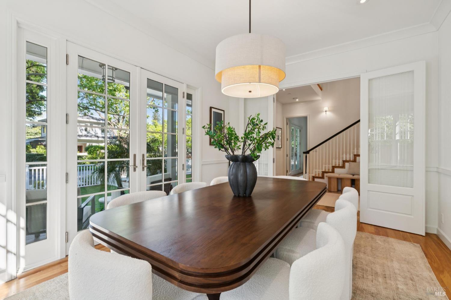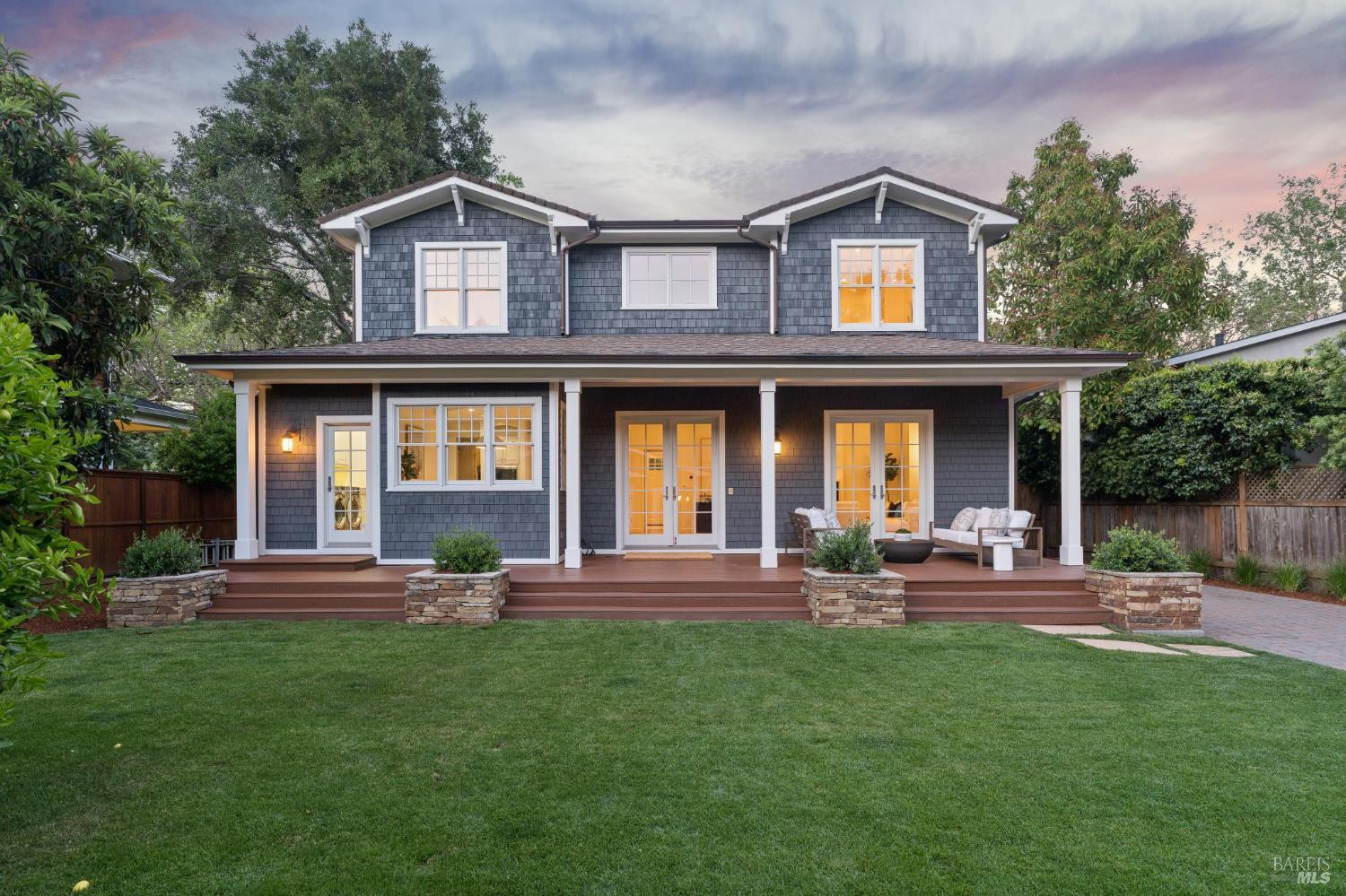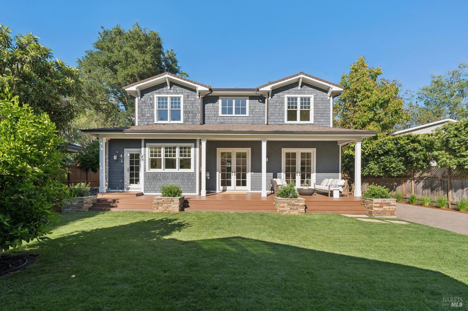 Tucked along what many consider the most coveted, tree-lined street in Sycamore Park, 124 Sycamore Ave captures that unmistakable Father of the Bride magictimeless, warm, and effortlessly inviting. Set on a rare double lot, this home offers a sense of space and privacy that's nearly impossible to find in Mill Valley. A classic Ipe wood front porch welcomes you in, where all-day sunshine pours across the property, creating a bright, uplifting atmosphere from morning to evening. Inside, the scale and craftsmanship immediately stand out. A dramatic two-story entry and soaring 10-foot ceilings set the tone, while solid core doors and hardwood floors throughout speak to the home's exceptional build quality. Designed for both everyday living and entertaining, the elegant formal dining room pairs beautifully with a thoughtfully designed kitchen featuring a charming built-in banquette and an oversized walk-in pantry. The heart of the home opens seamlessly to the outdoorskitchen and living spaces lined with multiple French doors that invite you into a completely fenced, private yard, perfect for hosting, relaxing, or letting kids play freely. Upstairs, four bedrooms on one level offer the layout today's buyers crave, including three ensuite bedrooms for comfort and flexibility. With five bedrooms total, there's space for guests, a home office, or whatever your lifestyle demands. Adding even more versatility, the property includes a beautifully appointed ~450 sq ft guest unitideal for visiting friends and family, an au pair, or a private work-from-home retreatalongside a detached two-car garage that blends seamlessly with the home's classic architecture. And then there's the locationjust a short stroll to the vibrant Mill Valley Depot, where cafs, shops, and gathering spaces create a daily rhythm reminiscent of a European piazza. This is Mill Valley living at its best: classic charm, modern functionality, and a rare sense of spaceall in one of the town's most beloved neighborhoods.