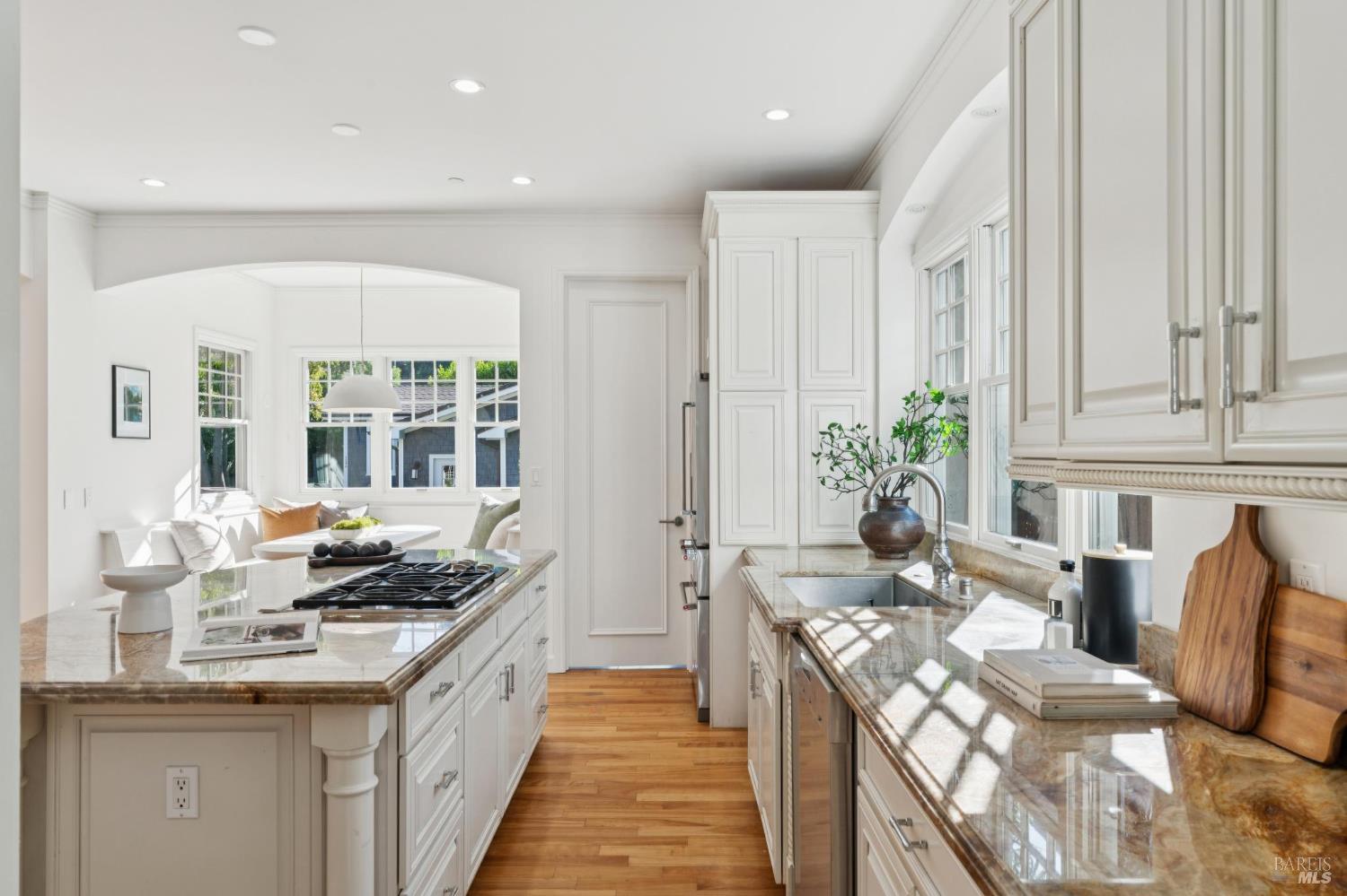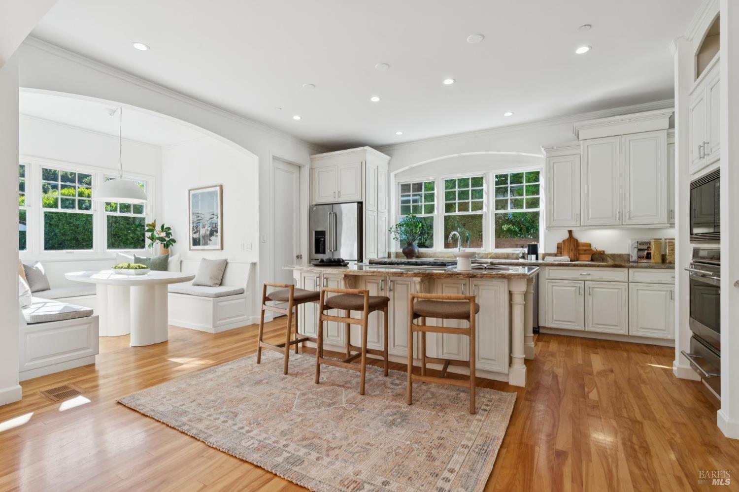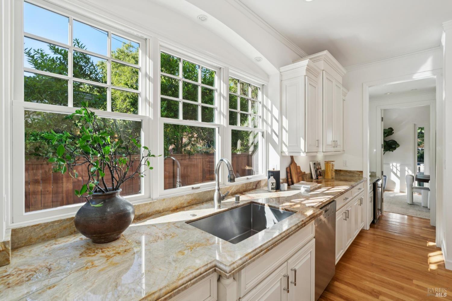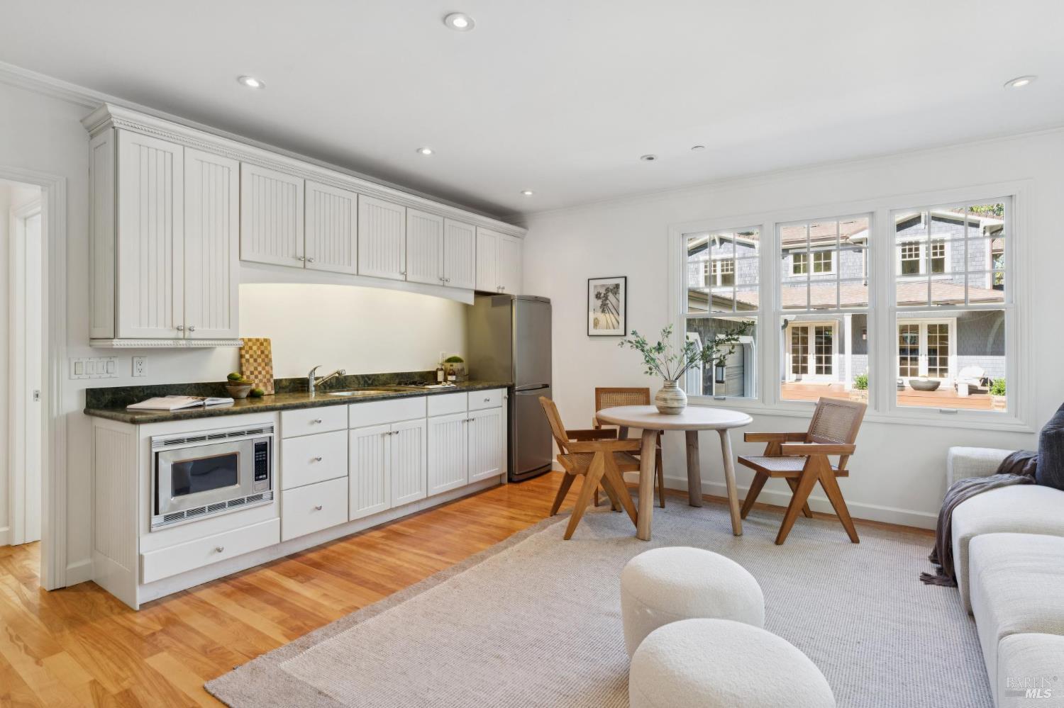 Tucked along what many consider the most coveted, tree-lined street in Sycamore Park, 124 Sycamore Ave captures that unmistakable Father of the Bride magictimeless, warm, and effortlessly inviting. Set on a rare double lot, this home offers a sense of space and privacy that's nearly impossible to find in Mill Valley. A classic Ipe wood front porch welcomes you in, where all-day sunshine pours across the property, creating a bright, uplifting atmosphere from morning to evening. Inside, the scale and craftsmanship immediately stand out. A dramatic two-story entry and soaring 10-foot ceilings set the tone, while solid core doors and hardwood floors throughout speak to the home's exceptional build quality. Designed for both everyday living and entertaining, the elegant formal dining room pairs beautifully with a thoughtfully designed kitchen featuring a charming built-in banquette and an oversized walk-in pantry. The heart of the home opens seamlessly to the outdoorskitchen and living spaces lined with multiple French doors that invite you into a completely fenced, private yard, perfect for hosting, relaxing, or letting kids play freely. Upstairs, four bedrooms on one level offer the layout today's buyers crave, including three ensuite bedrooms for comfort and flexibility. With five bedrooms total, there's space for guests, a home office, or whatever your lifestyle demands. Adding even more versatility, the property includes a beautifully appointed ~450 sq ft guest unitideal for visiting friends and family, an au pair, or a private work-from-home retreatalongside a detached two-car garage that blends seamlessly with the home's classic architecture. And then there's the locationjust a short stroll to the vibrant Mill Valley Depot, where cafs, shops, and gathering spaces create a daily rhythm reminiscent of a European piazza. This is Mill Valley living at its best: classic charm, modern functionality, and a rare sense of spaceall in one of the town's most beloved neighborhoods.