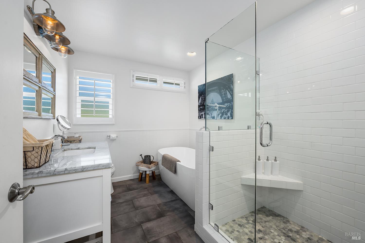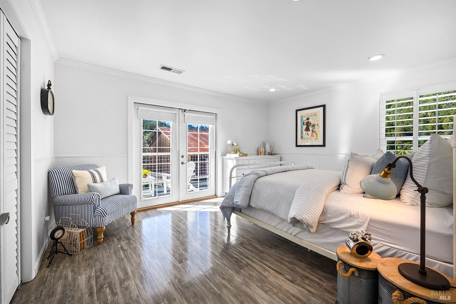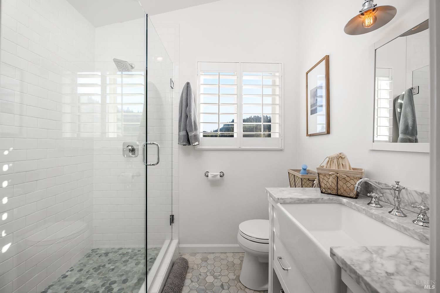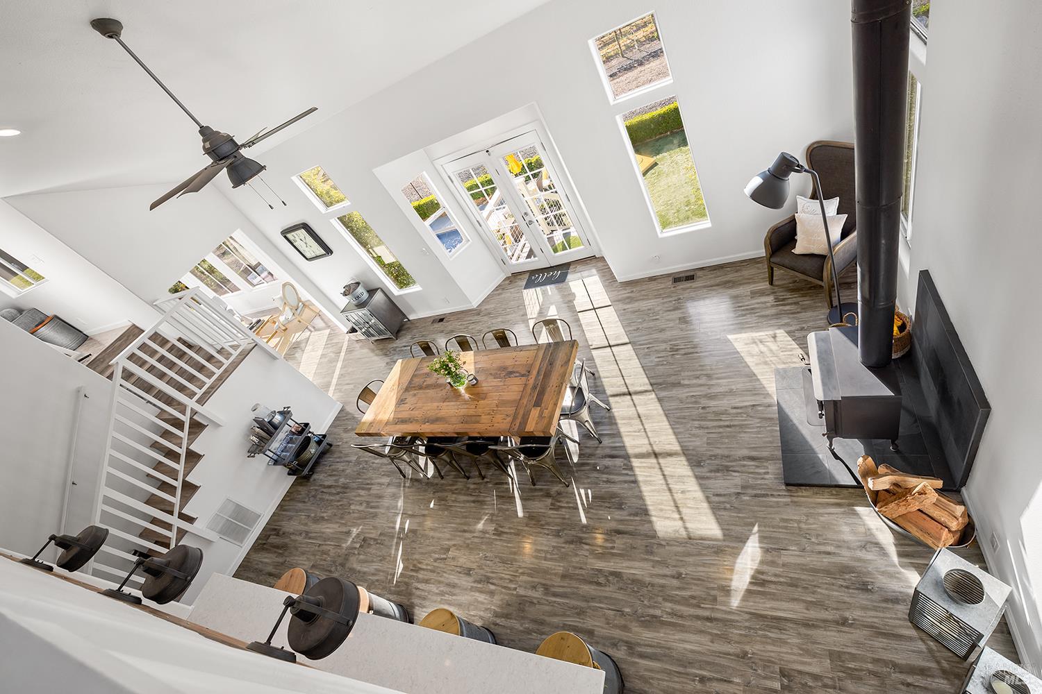 Perched above the rolling vineyards of Korbel with 180-degree views of forested ridgelines and mountain peaks, this fully updated West County farmhouse sets a standard for what a Guerneville estate can be. Set near the end of a private lane on a level 0.25-acre parcel with just one neighbor, the home delivers the kind of privacy and presence that defines true Sonoma County living. At 2,548 square feet with 5 bedrooms and 3.5 bathrooms, the floor plan is both gracious and flexible including a self-contained guest suite with its own private entrance, ideal for multigenerational living, visiting wine country guests, or income potential. Inside, the architecture earns its views. Soaring ceilings and walls of glass draw the vineyards and hills directly into the living space, while the thoughtfully updated kitchen and bathrooms make no compromises designer plumbing fixtures, elevated hardware, and rich stone and tile finishes create a refined, cohesive aesthetic from room to room. The result is a home that feels polished without being precious, luxurious without losing its warmth. Step outside and the property reveals its final act: a sparkling newer in-ground pool anchors a beautifully lit outdoor entertaining area that transitions seamlessly from golden afternoon gatherings to evenings under the stars. Whether you're hosting a harvest dinner for twelve or unwinding after a day on the Sonoma Coast, this outdoor space delivers. Practical details matter too municipal water and sewer, an attached garage, and a location that places you minutes from Guerneville's beloved farm-to-table dining scene, legendary wineries, Armstrong Redwoods State Natural Reserve, and the rugged, breathtaking bluffs and beaches of the Sonoma Coast. As a full-time residence or a West County retreat, this is a property that rewards you every single day you're in it.