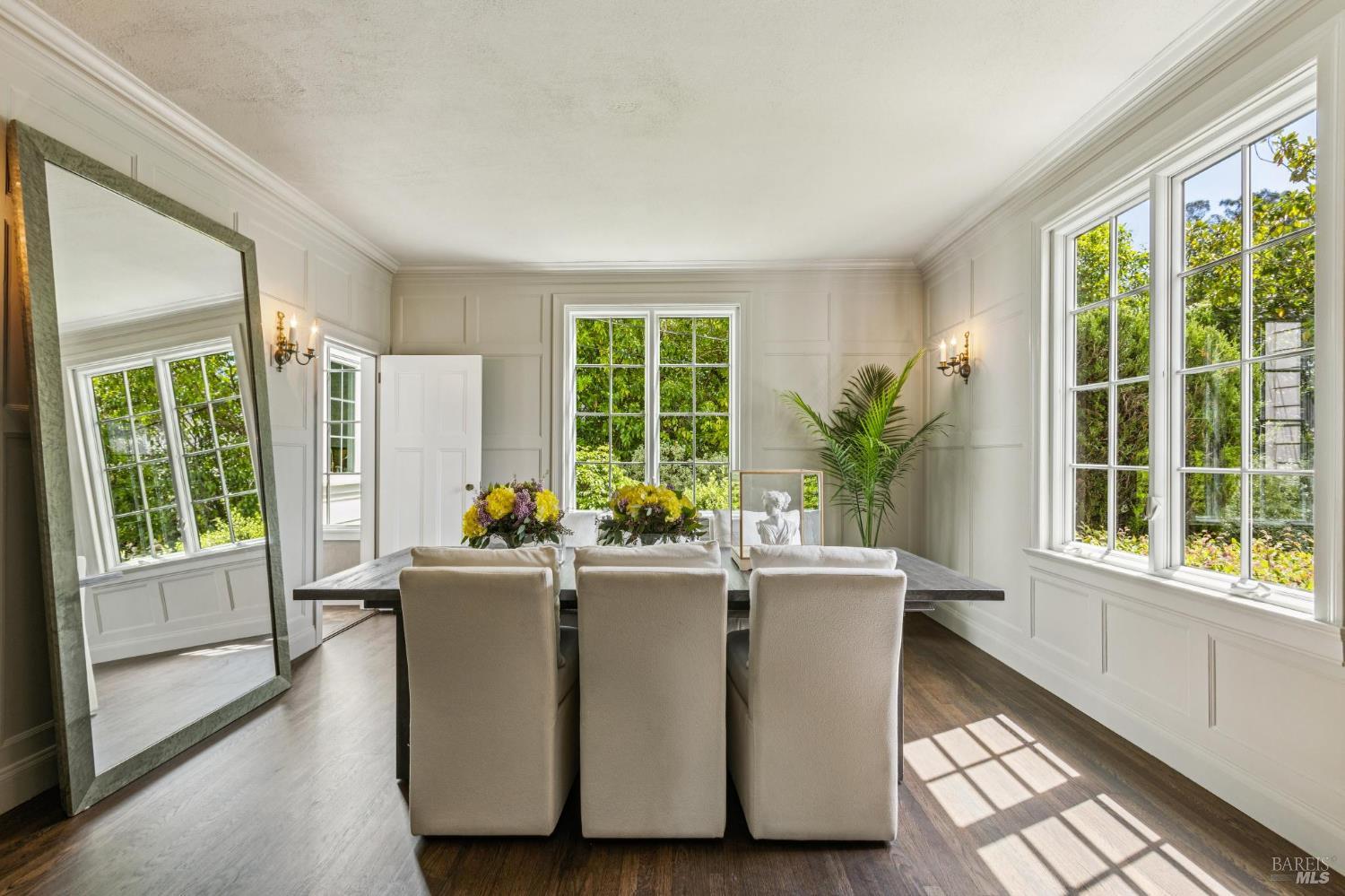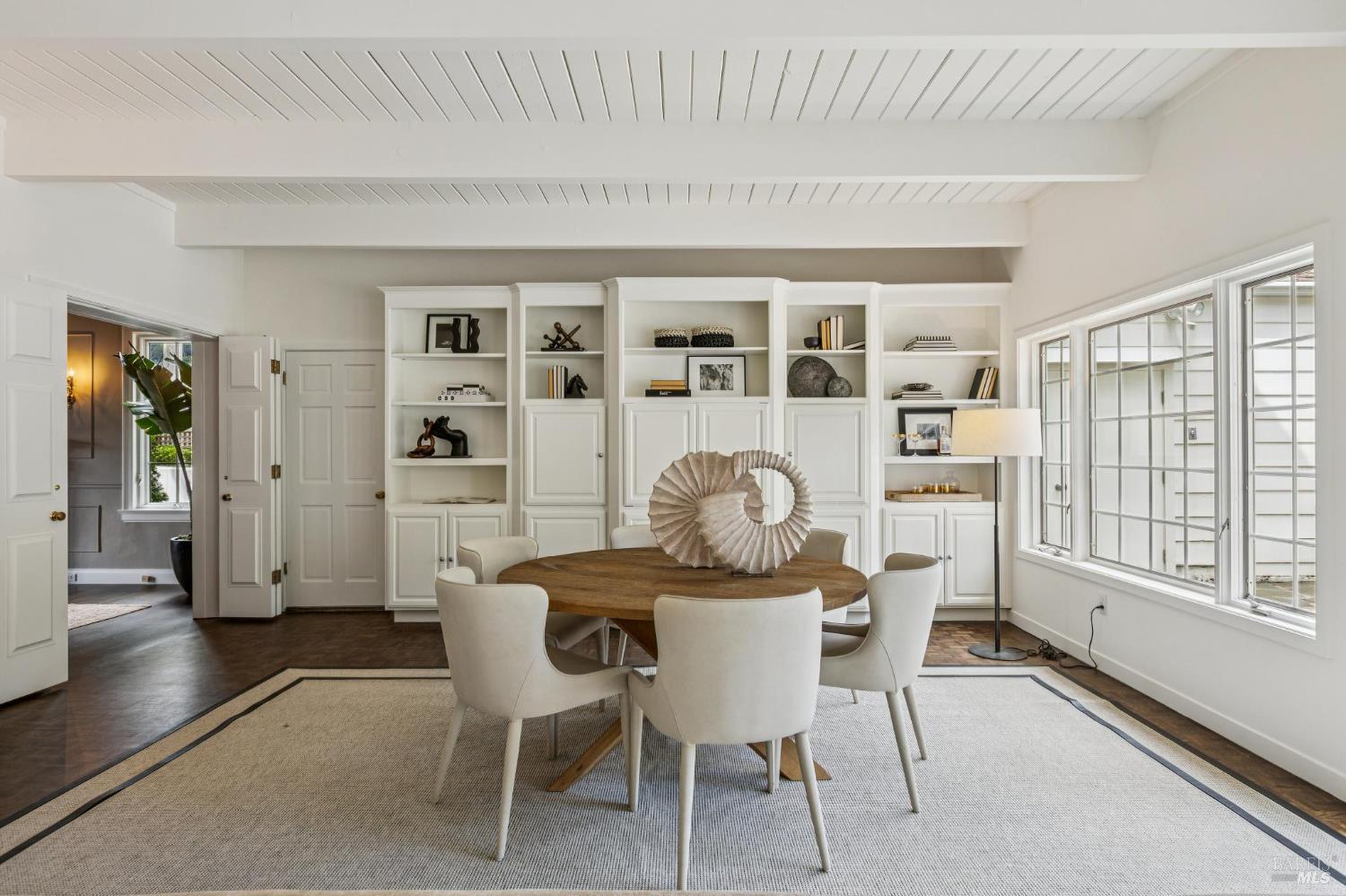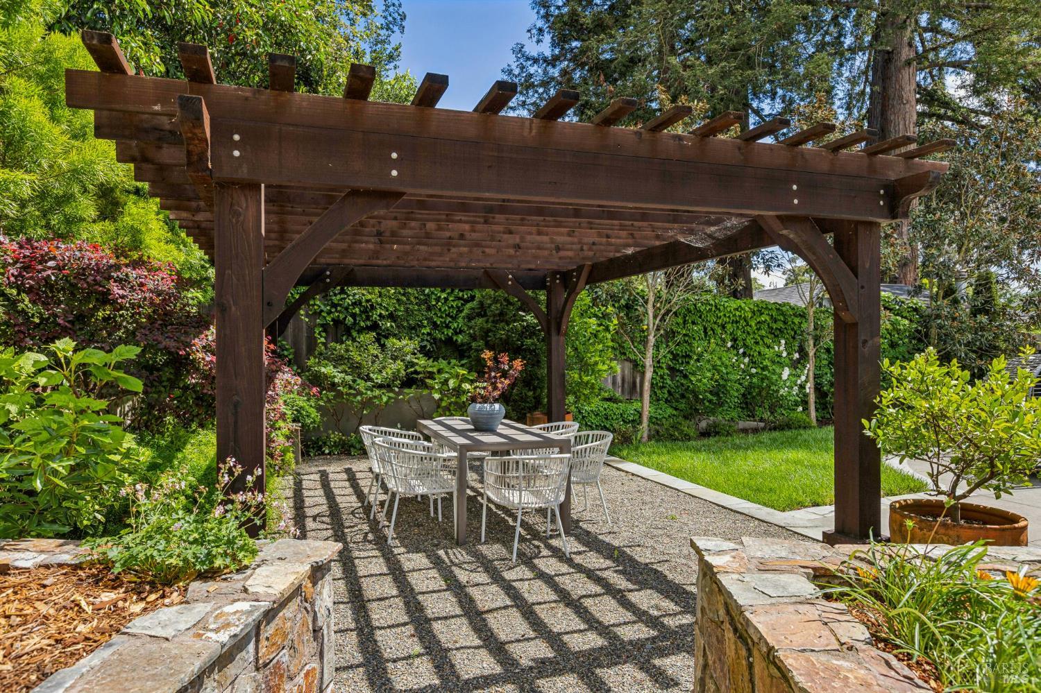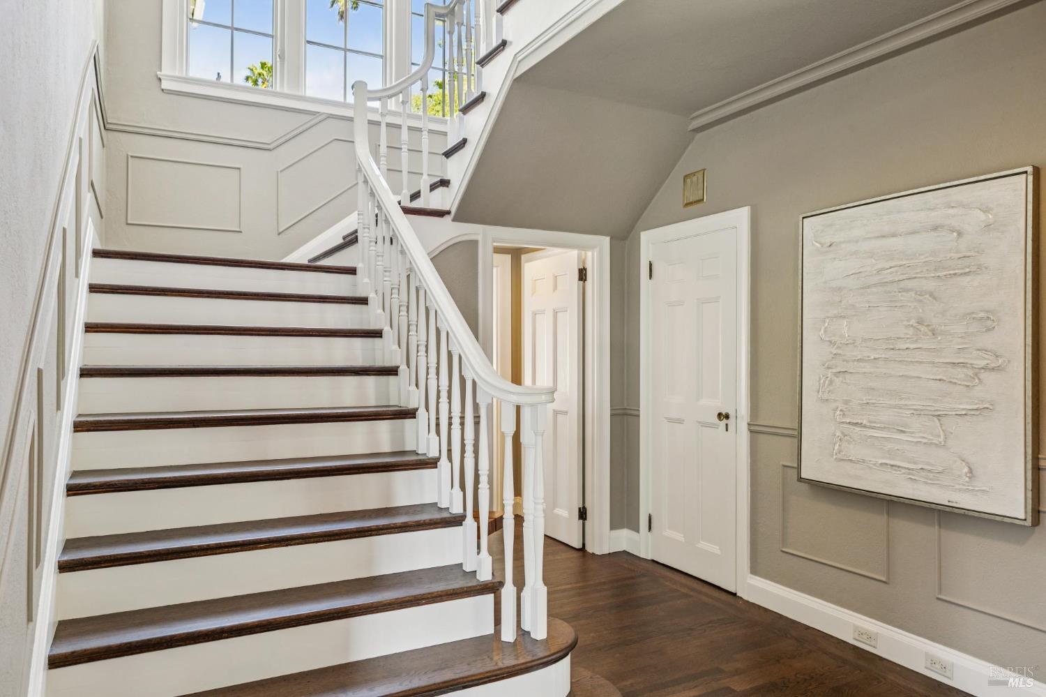 Welcome to this elegant 1927 Georgian estate, tucked behind a gated circular drive in the coveted Dominican neighborhood. The classic facade, framed by stately columns, traditional shutters, and a striking red door, offers a timeless first impression, complemented by manicured gardens of roses, lavender, boxwood, and olive trees. Inside, grand moldings, custom built-ins, hardwood floors, and a sweeping staircase reflect the home's architectural pedigree, thoughtfully updated to blend historic character with modern sophistication. The home offers four bedrooms and four and a half baths, including a main-level ensuite ideal for guests, a private office, powder room, and laundry room. At its heart, a chef's kitchen by Judi Cooper features Calacatta marble and soapstone countertops, premium appliances, and ample storage, flowing into the family room with seamless indoor-outdoor connection. Upstairs, three ensuite bedrooms include a primary suite with a remodeled bath, dual walk-in closets, and a deck overlooking lush grounds. The backyard offers a stone patio, sparkling pool, gardens, fountain, and pergola seating - ideal for relaxation or entertaining. Private yet convenient, minutes to trails, shopping, dining, and Hwy 101 - An extraordinary setting for gracious living.