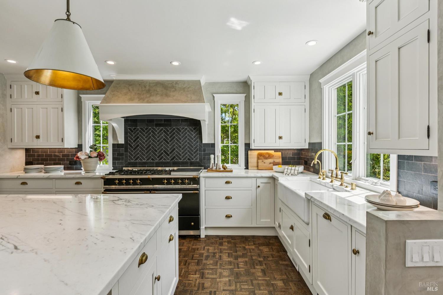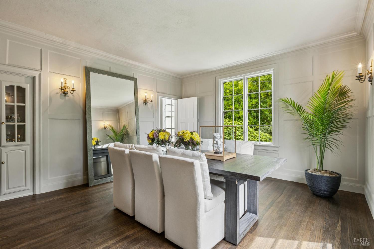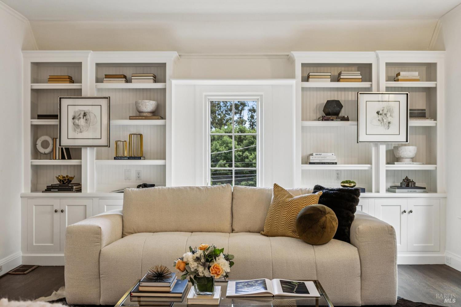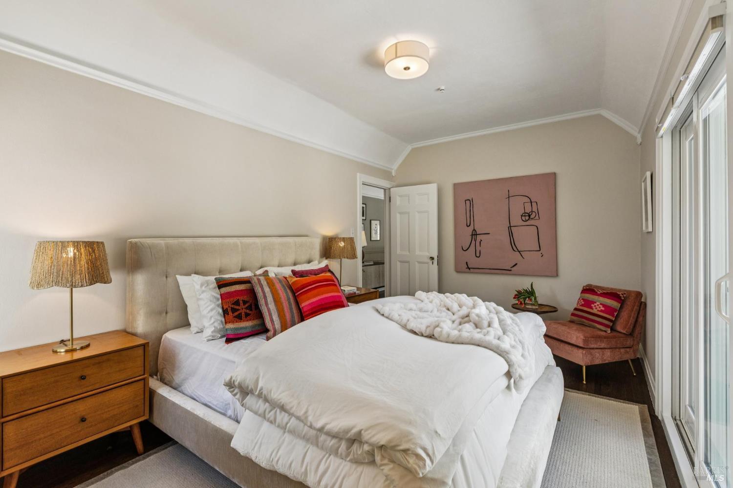 Welcome to this elegant 1927 Georgian estate, tucked behind a gated circular drive in the coveted Dominican neighborhood. The classic facade, framed by stately columns, traditional shutters, and a striking red door, offers a timeless first impression, complemented by manicured gardens of roses, lavender, boxwood, and olive trees. Inside, grand moldings, custom built-ins, hardwood floors, and a sweeping staircase reflect the home's architectural pedigree, thoughtfully updated to blend historic character with modern sophistication. The home offers four bedrooms and four and a half baths, including a main-level ensuite ideal for guests, a private office, powder room, and laundry room. At its heart, a chef's kitchen by Judi Cooper features Calacatta marble and soapstone countertops, premium appliances, and ample storage, flowing into the family room with seamless indoor-outdoor connection. Upstairs, three ensuite bedrooms include a primary suite with a remodeled bath, dual walk-in closets, and a deck overlooking lush grounds. The backyard offers a stone patio, sparkling pool, gardens, fountain, and pergola seating - ideal for relaxation or entertaining. Private yet convenient, minutes to trails, shopping, dining, and Hwy 101 - An extraordinary setting for gracious living.