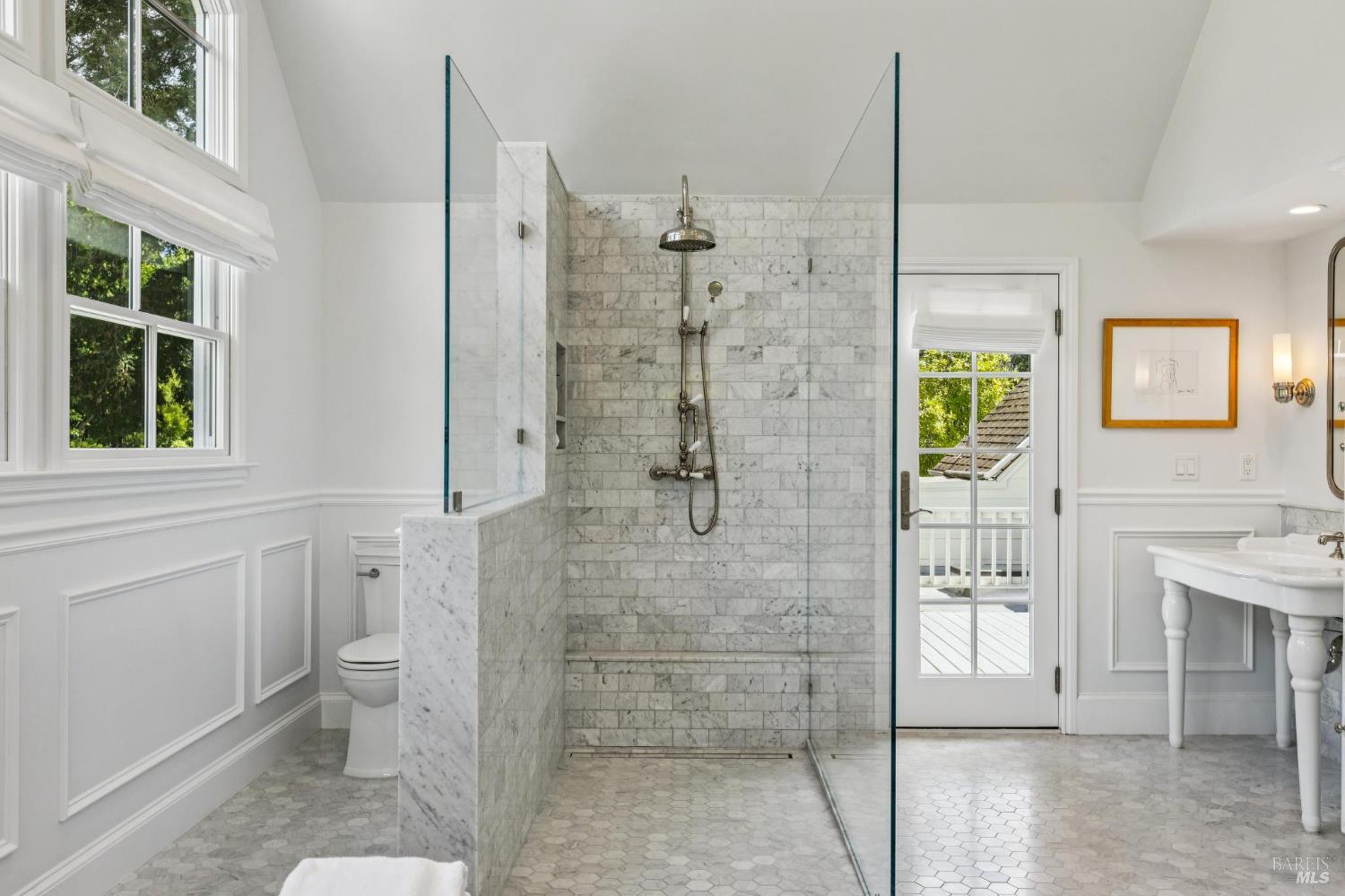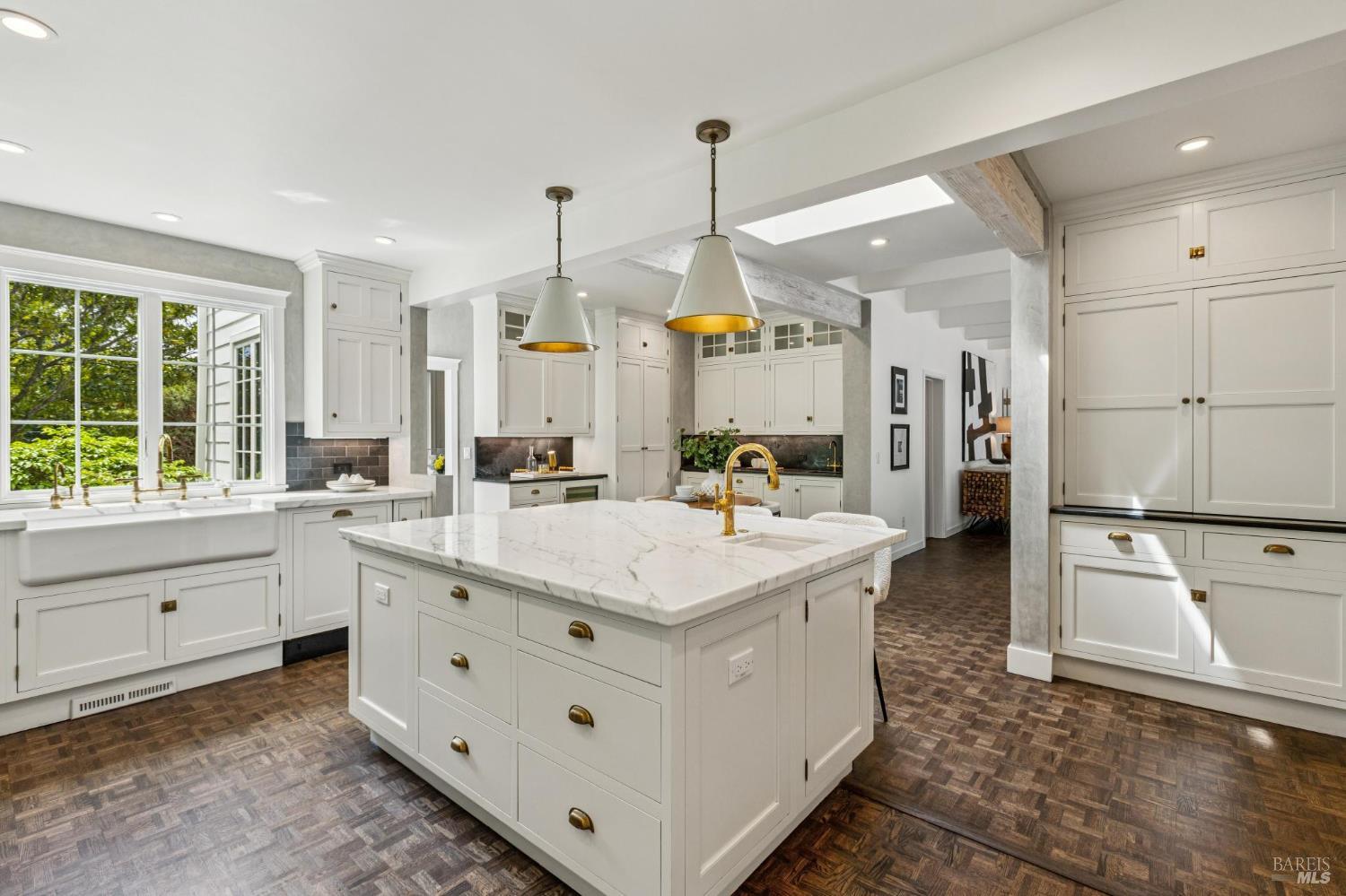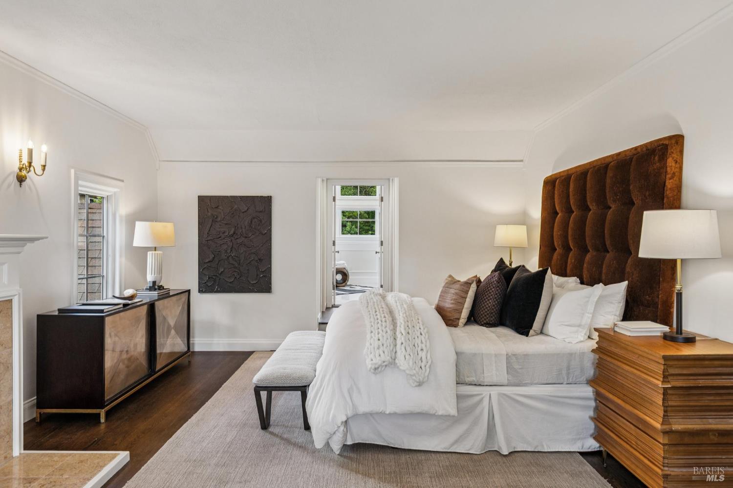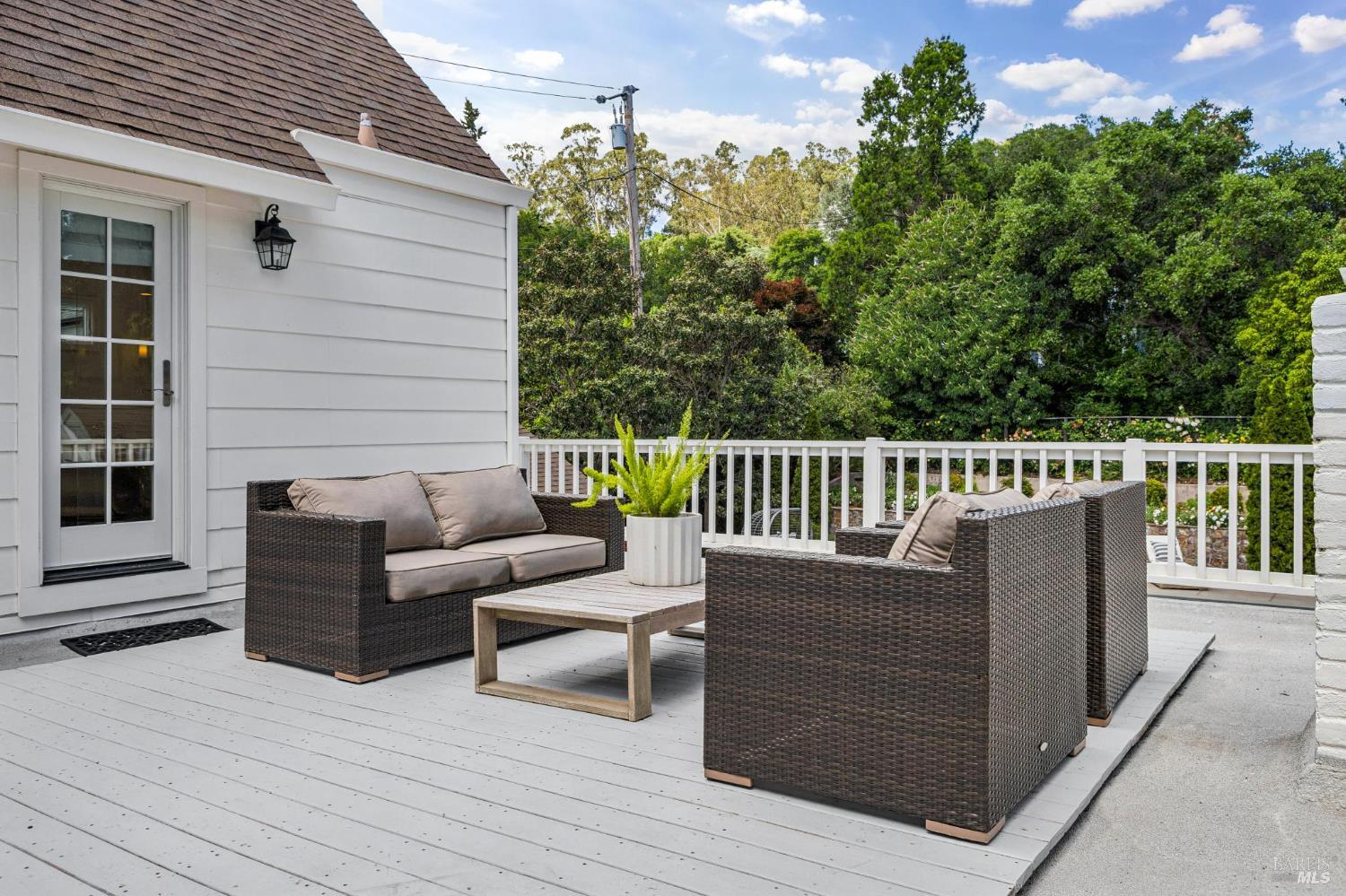 Welcome to this elegant 1927 Georgian estate, tucked behind a gated circular drive in the coveted Dominican neighborhood. The classic facade, framed by stately columns, traditional shutters, and a striking red door, offers a timeless first impression, complemented by manicured gardens of roses, lavender, boxwood, and olive trees. Inside, grand moldings, custom built-ins, hardwood floors, and a sweeping staircase reflect the home's architectural pedigree, thoughtfully updated to blend historic character with modern sophistication. The home offers four bedrooms and four and a half baths, including a main-level ensuite ideal for guests, a private office, powder room, and laundry room. At its heart, a chef's kitchen by Judi Cooper features Calacatta marble and soapstone countertops, premium appliances, and ample storage, flowing into the family room with seamless indoor-outdoor connection. Upstairs, three ensuite bedrooms include a primary suite with a remodeled bath, dual walk-in closets, and a deck overlooking lush grounds. The backyard offers a stone patio, sparkling pool, gardens, fountain, and pergola seating - ideal for relaxation or entertaining. Private yet convenient, minutes to trails, shopping, dining, and Hwy 101 - An extraordinary setting for gracious living.