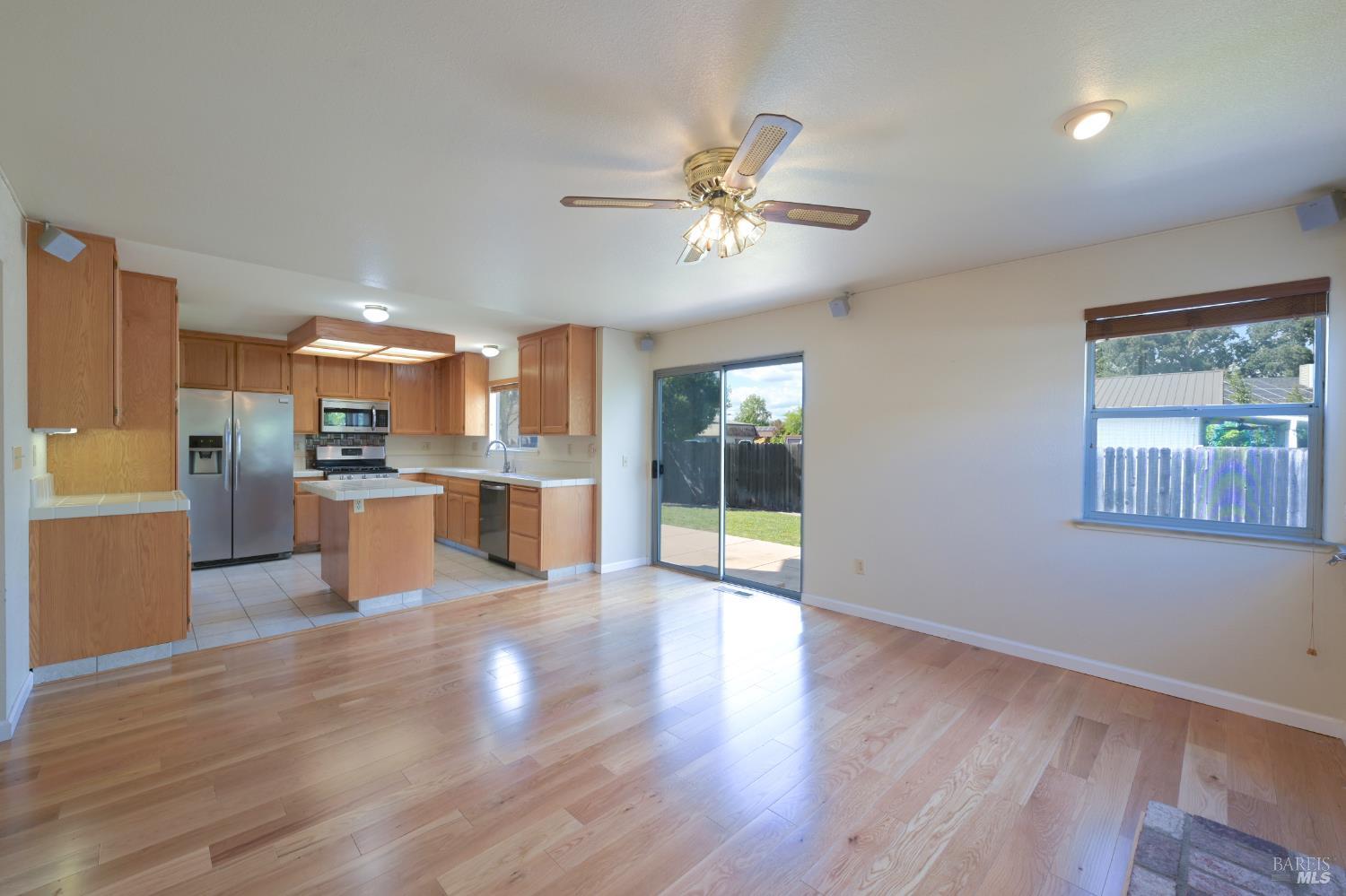 Seize the day on Dawn Way! This spacious four bedroom, three bathroom home is ideally situated on an expansive corner lot, offering increased privacy with no neighbors on one side and generous space between properties at the rear. The versatile floor plan includes a coveted main level bedroom and attached updated bathroom, while the front living and dining room areas feature vaulted ceilings and plentiful natural light. The well-equipped kitchen and family room combo comes complete with stainless steel appliances, a center island, and seamless transition to the rear yard. Upstairs, the primary suite offers vaulted ceilings, a walk-in closet, and a remodeled bathroom with dual sinks, complemented by guest bedrooms that share a convenient adjoining bathroom. Beyond the three-car garage and ample driveway parking, you'll find peace of mind with the major systems being upgraded over the years, including roof, HVAC, and water heater. Savor the vibrant lifestyle of the nearby Windsor Town Green with its celebrated artisan dining, live music, movie nights, and seasonal farmer's market, all of which make Dawn Way a residence that is sure to impress. Welcome home!