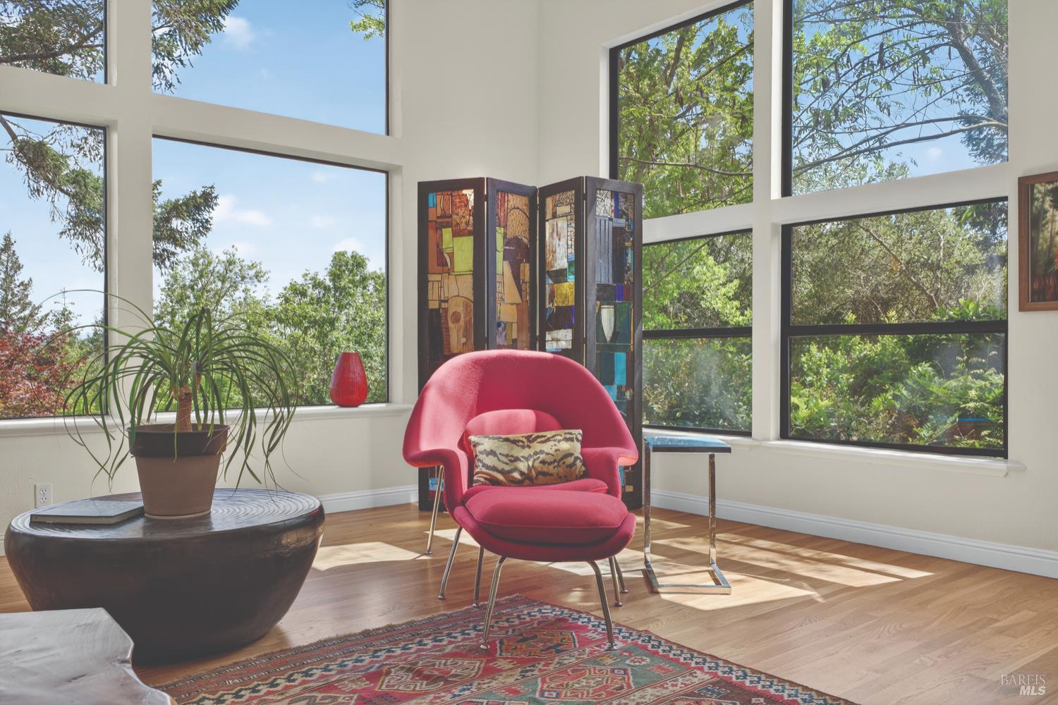 Set behind gates on Westside Road and tucked along a private lane in the sought-after Madrona Knolls neighborhood, this Healdsburg residence offers a rare combination of privacy, natural beauty, and close-to-town convenience. Surrounded by mature landscaping with dogwoods, citrus and plum trees, azaleas, rhododendrons, roses, and seasonal color, the setting feels peaceful and established while remaining just minutes from Healdsburg Plaza, acclaimed dining, tasting rooms, and boutique shopping. Inside, soaring approximately 25-foot windows in the great room frame sweeping southern valley views, distant mountains, memorable sunrises, and the changing light across the landscape. Abundant natural light, rich hardwood flooring, and generous living spaces create an atmosphere that is both comfortable and refined. Designed for everyday living as well as entertaining, the home offers four bedrooms and three baths, including two spacious primary suites positioned on opposite ends for privacy and flexibility. At the center of the home, the kitchen, dining, and great room connect naturally and flow to expansive view decks and outdoor gathering spaces. A private wine cellar with tasting area adds to the wine country setting, while the gated grounds provide a sense of retreat. A distinctive offering in one of Healdsburg's most desirable hillside neighborhoods.