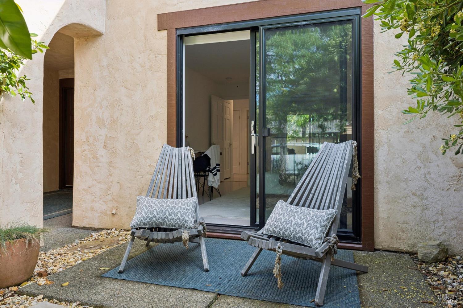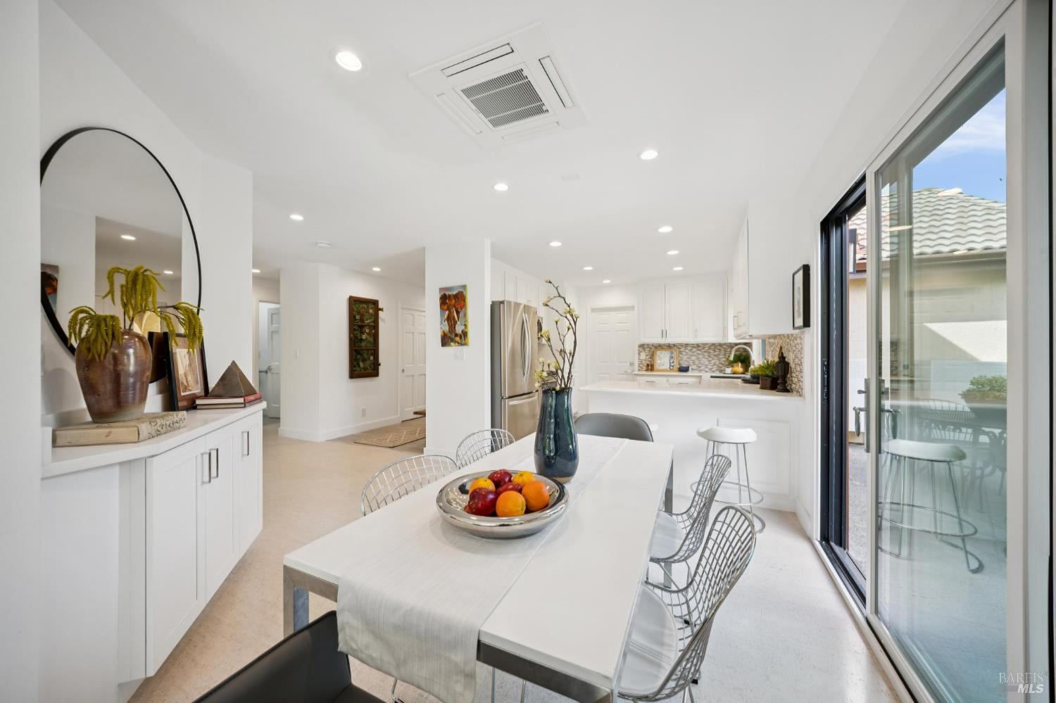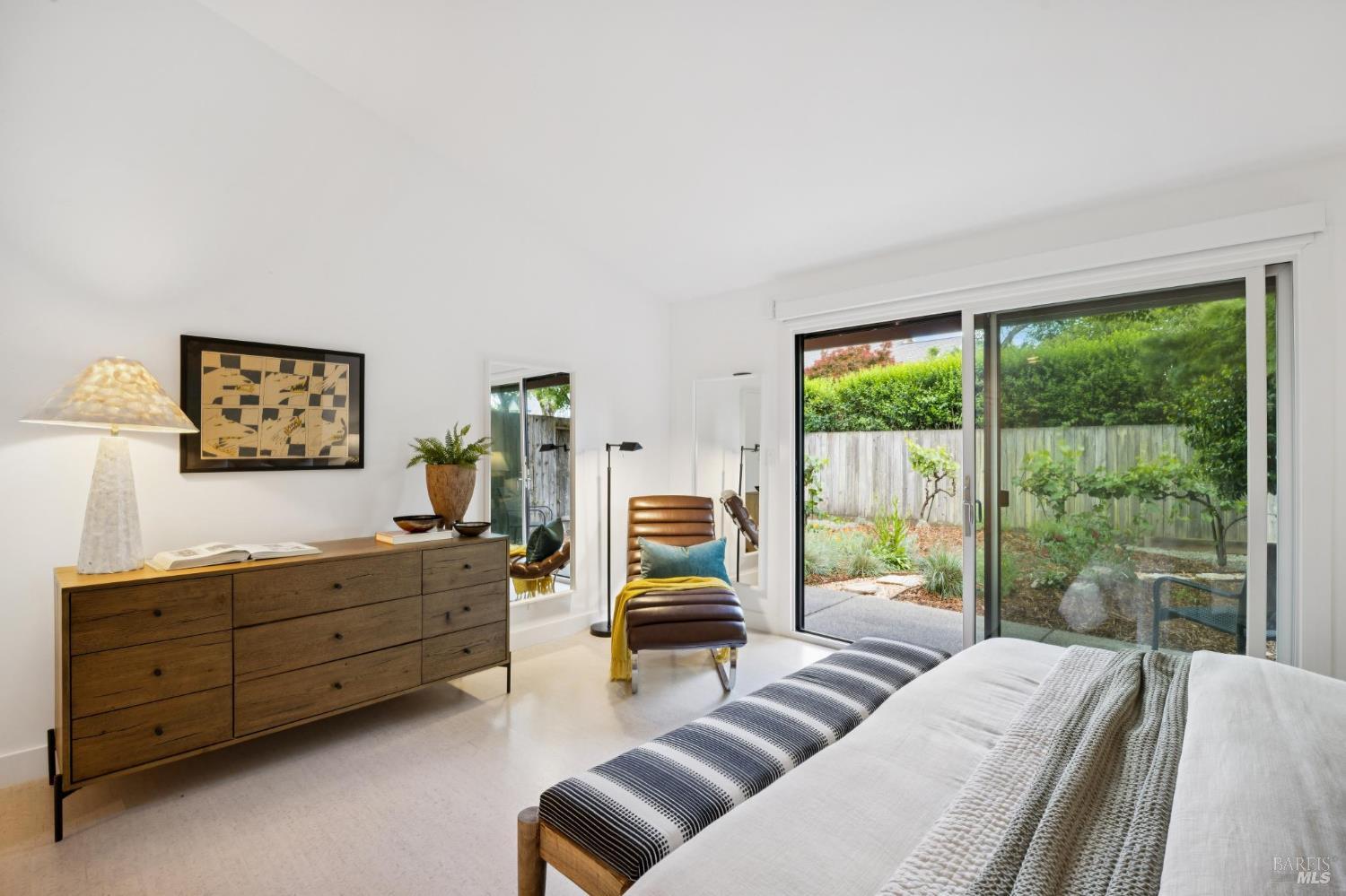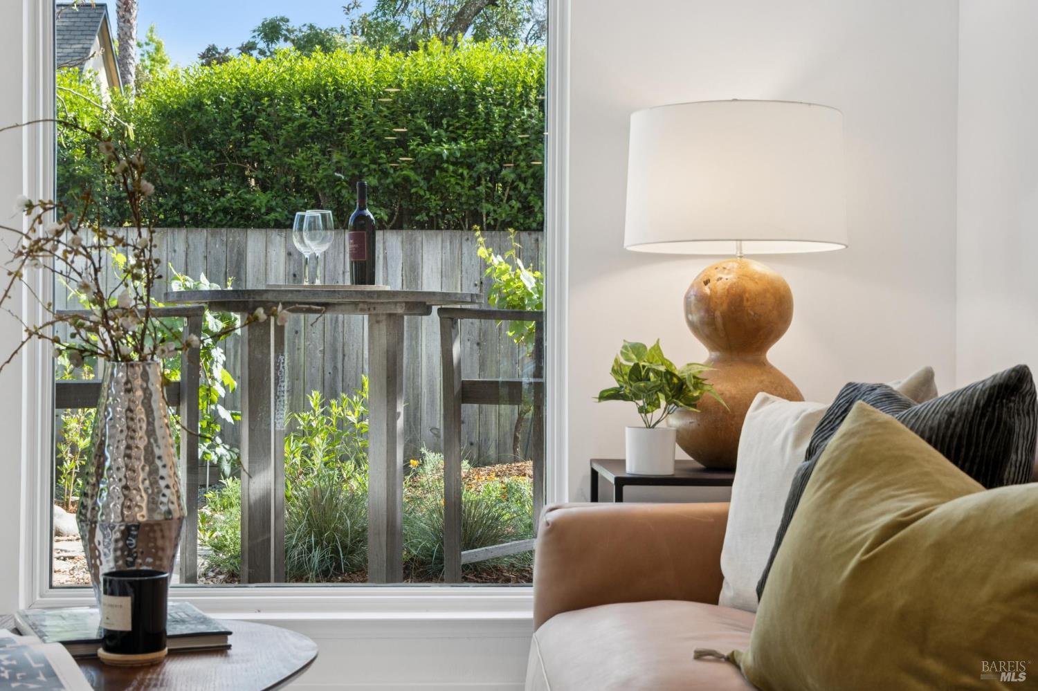 This stunning two-bedroom, two-bath home has undergone significant renovations and upgrades, with healthy living and environmental benefits as key considerations. The bright living room features soaring cathedral ceilings, abundant natural light, and a rare sense of spaciousness. A wood-burning fireplace provides a warm and inviting focal point, and the space opens directly to the landscaped back garden, thoughtfully designed with native plants and pollinators. The open dining area connects to the side patio, creating seamless indoor-outdoor living and easy al fresco diningperfect for Sonoma's temperate climate. The beautifully designed and well-equipped kitchen offers ample storage and counter space, along with direct access to the two-car garage with additional storage and laundry. The spacious primary suite overlooks the garden and includes a recently remodeled ensuite bath with a walk-in shower and double sinks. The comfortable front bedroom also offers direct outdoor access. A conveniently located hall bath features a rejuvenating soaking tub and has likewise been remodeled to a high standard. Environmentally conscious cork floors, new energy-efficient Marvin windows and sliding doors throughout, and upgraded Mitsubishi Electric HVAC and insulation are among the many thoughtful improvements to the home. The small, well-run HOA includes a community pool and hot tub. The quiet, laid-back neighborhood offers easy access to nearby walking trails, markets, restaurants, and the wine destinations that have made Sonoma famous.