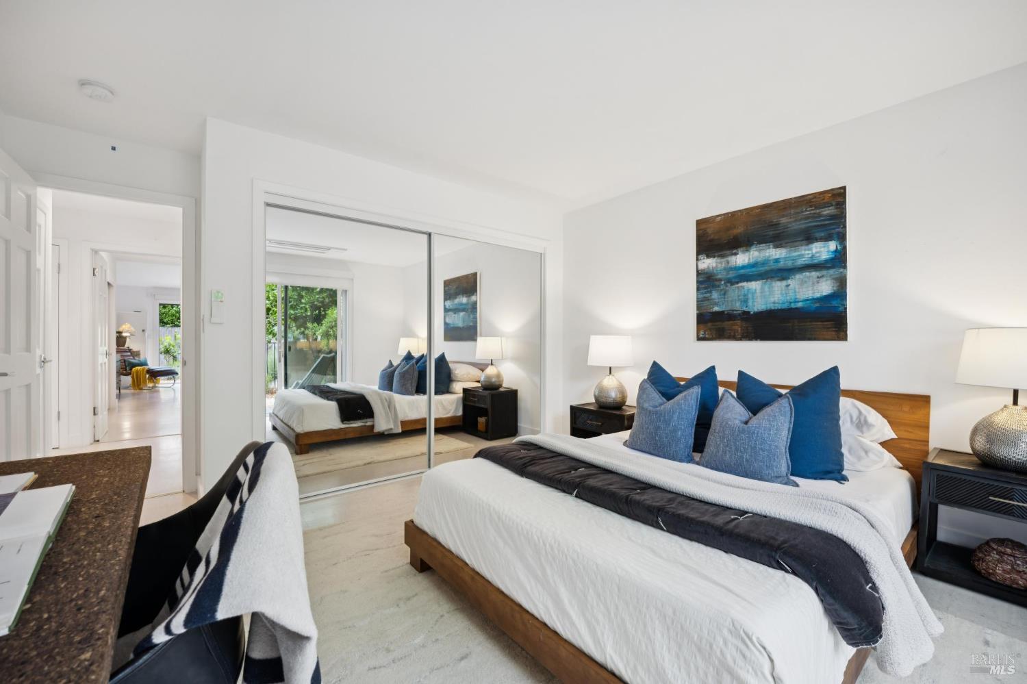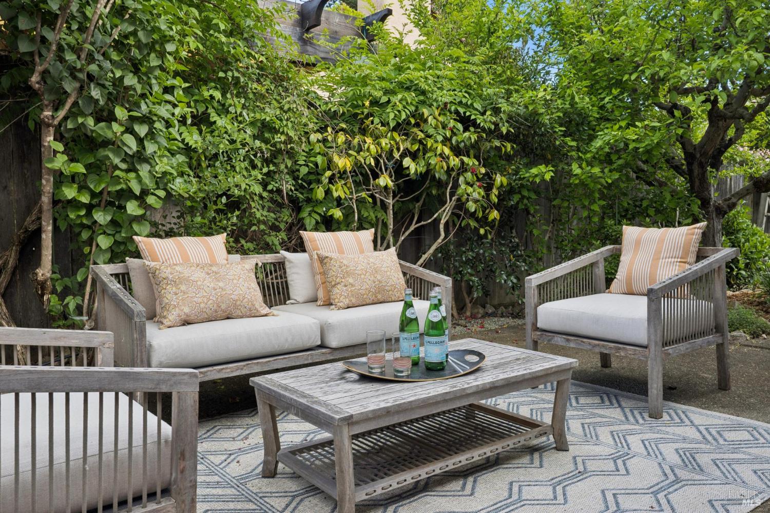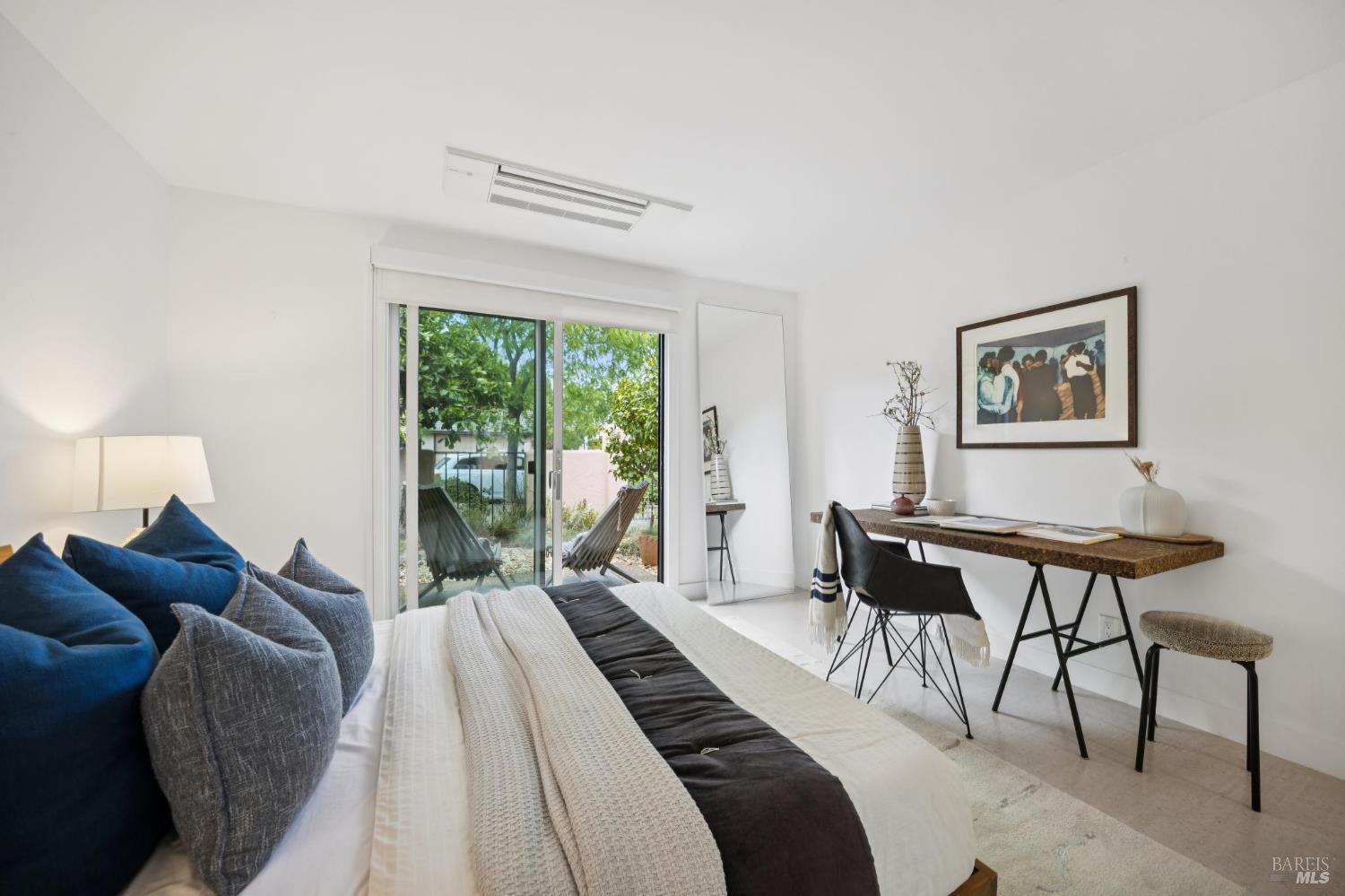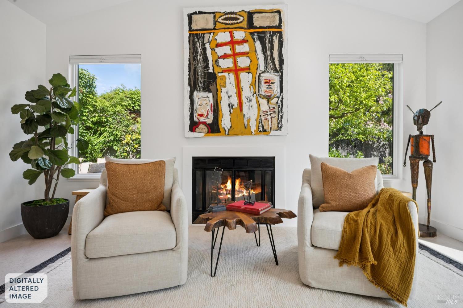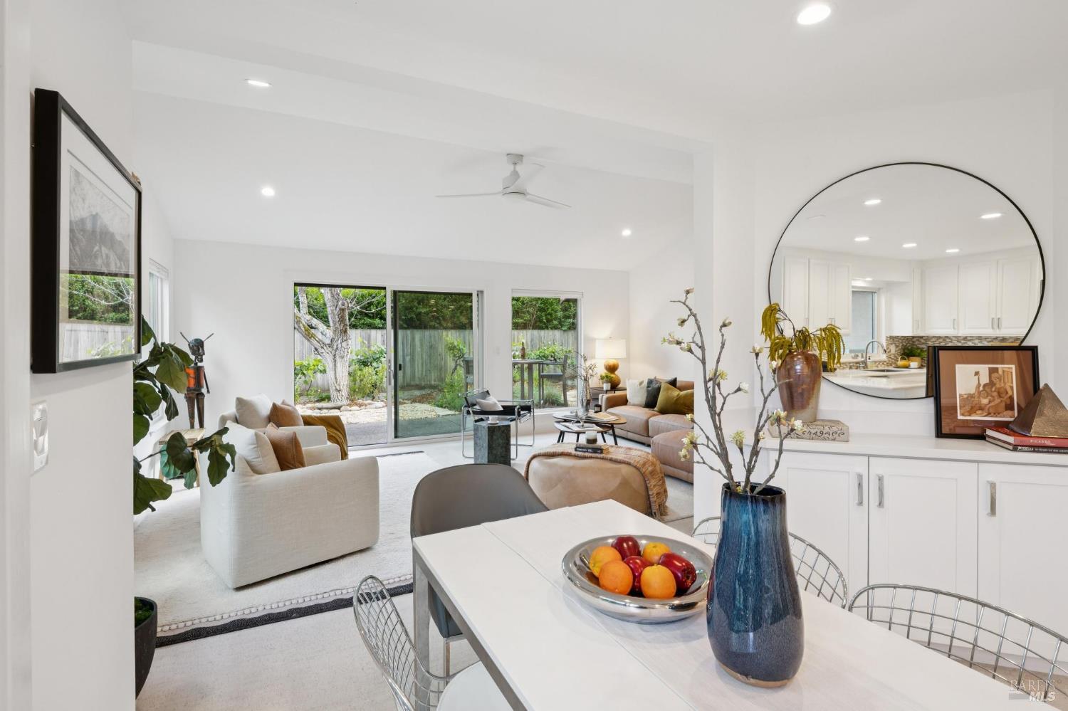 This stunning two-bedroom, two-bath home has undergone significant renovations and upgrades, with healthy living and environmental benefits as key considerations. The bright living room features soaring cathedral ceilings, abundant natural light, and a rare sense of spaciousness. A wood-burning fireplace provides a warm and inviting focal point, and the space opens directly to the landscaped back garden, thoughtfully designed with native plants and pollinators. The open dining area connects to the side patio, creating seamless indoor-outdoor living and easy al fresco diningperfect for Sonoma's temperate climate. The beautifully designed and well-equipped kitchen offers ample storage and counter space, along with direct access to the two-car garage with additional storage and laundry. The spacious primary suite overlooks the garden and includes a recently remodeled ensuite bath with a walk-in shower and double sinks. The comfortable front bedroom also offers direct outdoor access. A conveniently located hall bath features a rejuvenating soaking tub and has likewise been remodeled to a high standard. Environmentally conscious cork floors, new energy-efficient Marvin windows and sliding doors throughout, and upgraded Mitsubishi Electric HVAC and insulation are among the many thoughtful improvements to the home. The small, well-run HOA includes a community pool and hot tub. The quiet, laid-back neighborhood offers easy access to nearby walking trails, markets, restaurants, and the wine destinations that have made Sonoma famous.