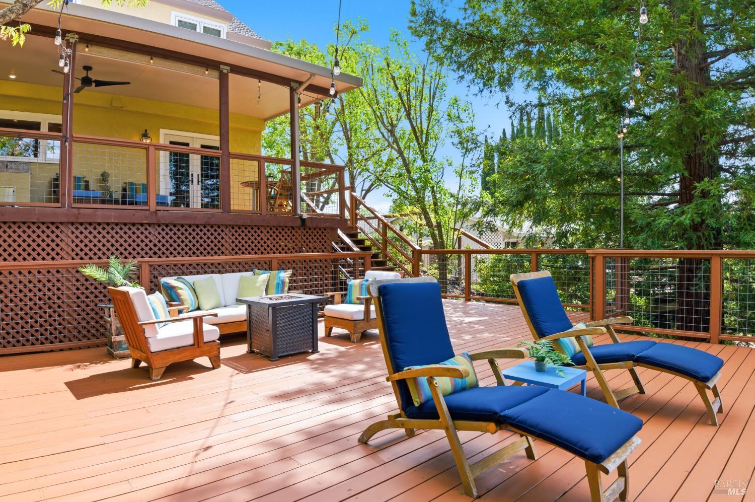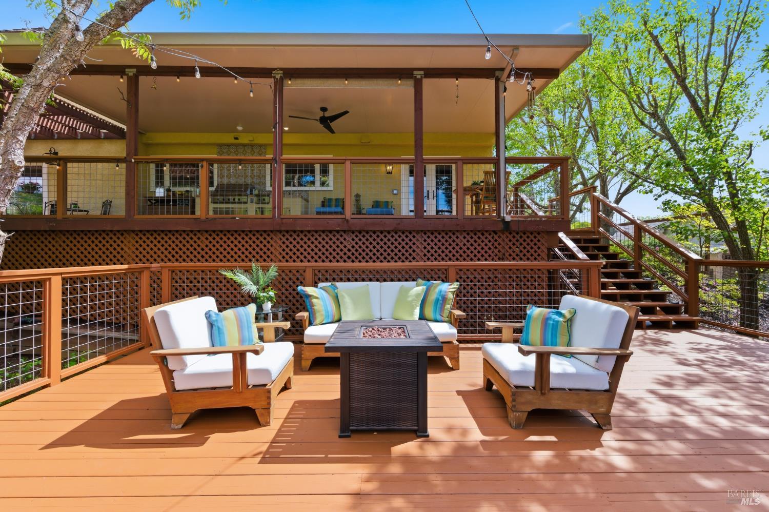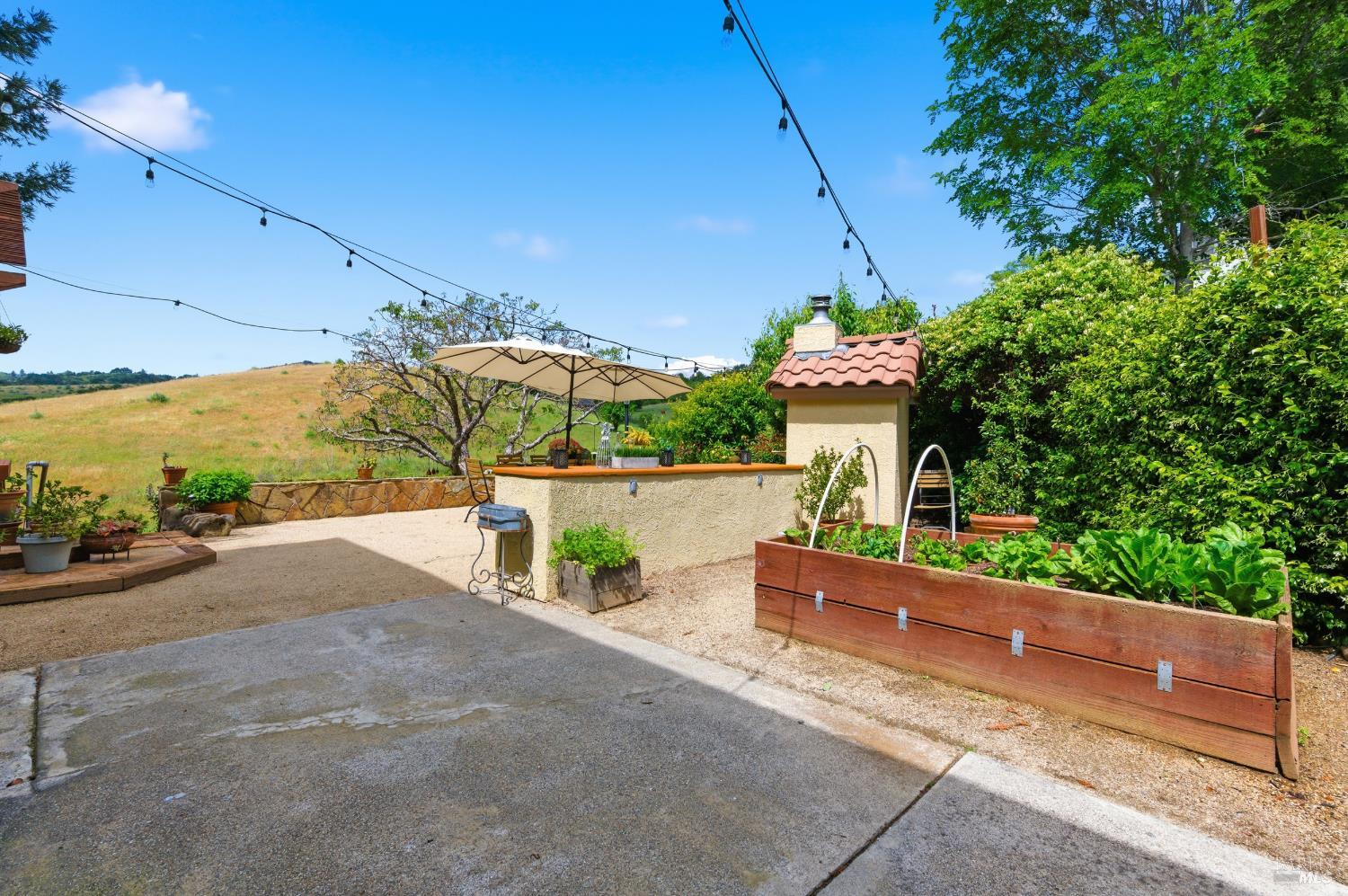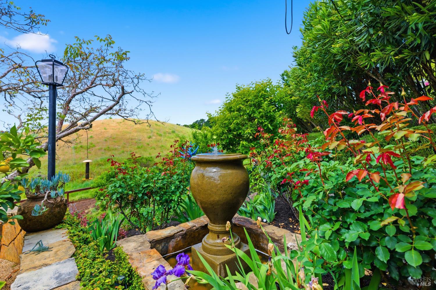 Tucked away on a peaceful cul-de-sac in Browns Valley's coveted west hills, this elegant French Country-inspired residence offers a rare blend of warmth, sophistication, and true Wine Country living! Lovingly customized over the years, never a flip, this home exudes character and craftsmanship, far from anything cookie-cutter. Step through the foyer into a gracious Living Room anchored by a beautifully rebuilt stone Fireplace, creating an inviting space that flows effortlessly into the formal Dining Room, ideal for intimate gatherings or lively celebrations. At the heart of the home, the thoughtfully designed Chef's Kitchen blends style and function with a generous butcher block island, quartz countertops, abundant cabinetry, and top-tier appliances including a Viking gas cooktop, double ovens, warming drawer, and professional-style refrigerator. The Kitchen opens seamlessly to the Family Room and adjacent temp-controlled wine cellar, enhancing the home's natural flow for everyday living and entertaining. Designed to embrace indoor-outdoor living, glass doors lead to approximately 1,500 SF of redwood decking with sweeping hillside and vineyard views stretching toward the Mayacamas foothills! Multiple outdoor entertaining spaces invite you to host unforgettable gatherings, complete with two fully equipped cooking areas: one featuring a natural gas grill, burner, and sink, and the other a generous island paired with a wood-fired pizza oven perfect for everything from artisan pizzas to slow-roasted feasts. The outdoor experience is nothing short of enchanting! Terraced gardens filled with vibrant flowers, raised vegetable beds, and a bounty of fruit trees: apples, pears, peaches, plums, figs, and persimmons, create a true farm-to-table lifestyle. Bees, butterflies, birds, and passing wildlife add to the serene private setting, offering a sense of retreat just moments from town. Inside, the four spacious bedrooms provide comfort and flexibility, including a luxurious Primary suite with ample room for a sitting area or private fitness space. Three beautifully appointed full bathrooms and an expansive laundry room with abundant storage. This is more than a home, it's a lifestyle. Private, peaceful, and thoughtfully designed for both relaxation and entertaining, it offers an exceptional opportunity to experience the very best of refined wine country living!