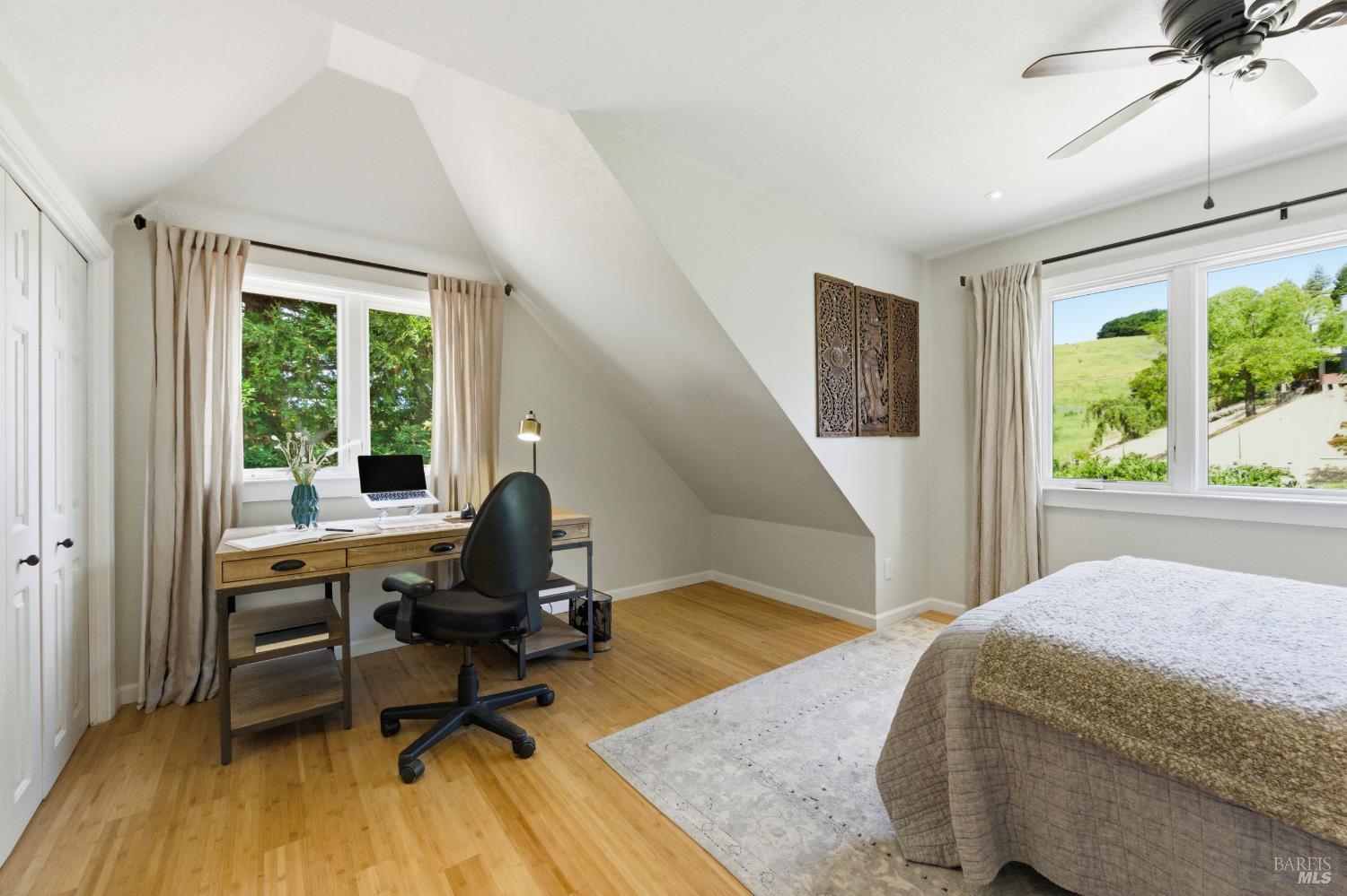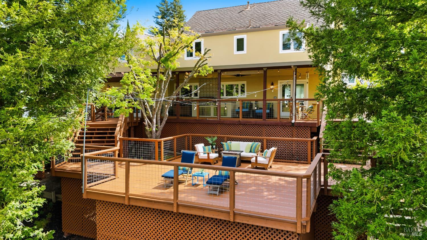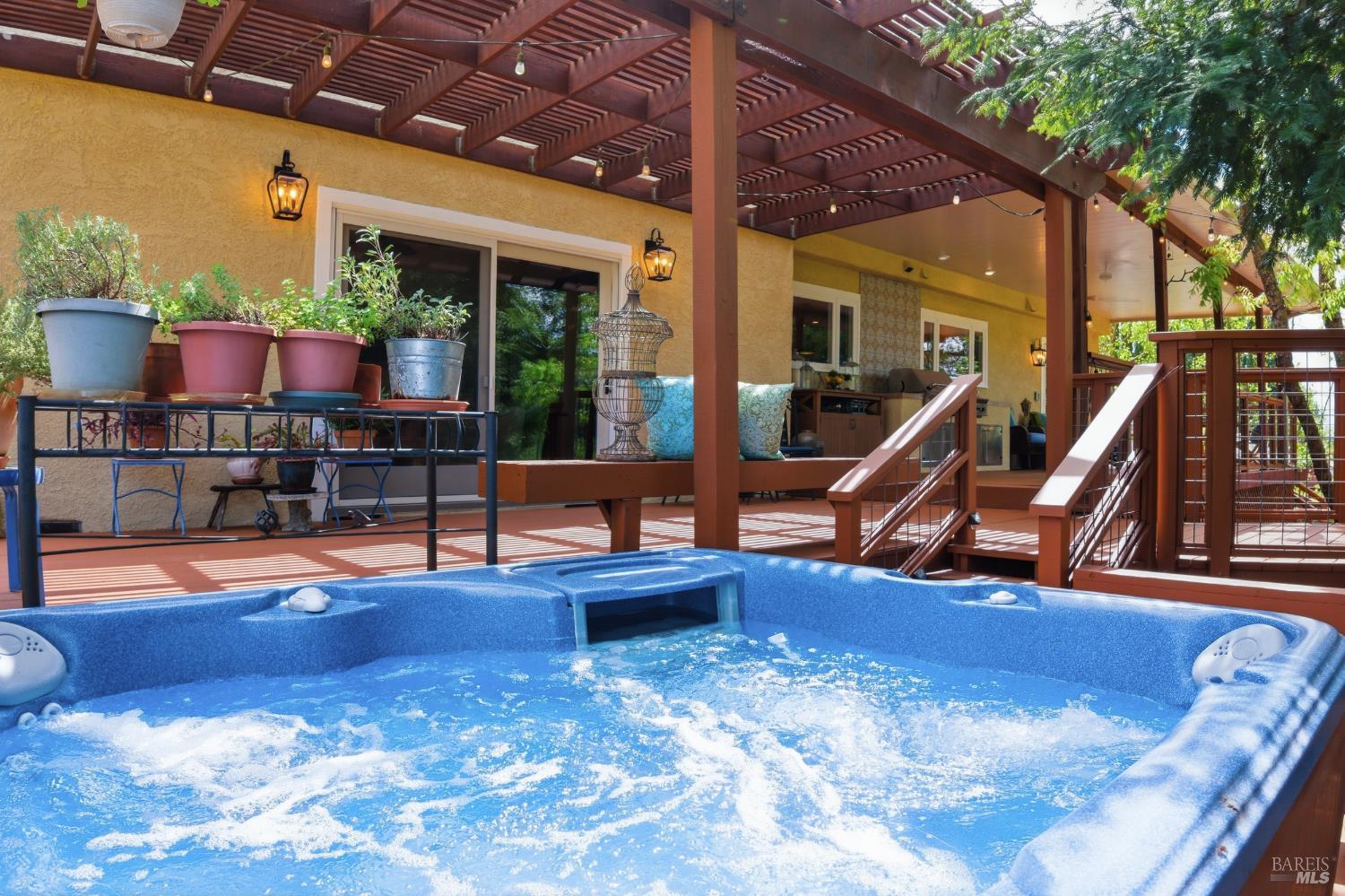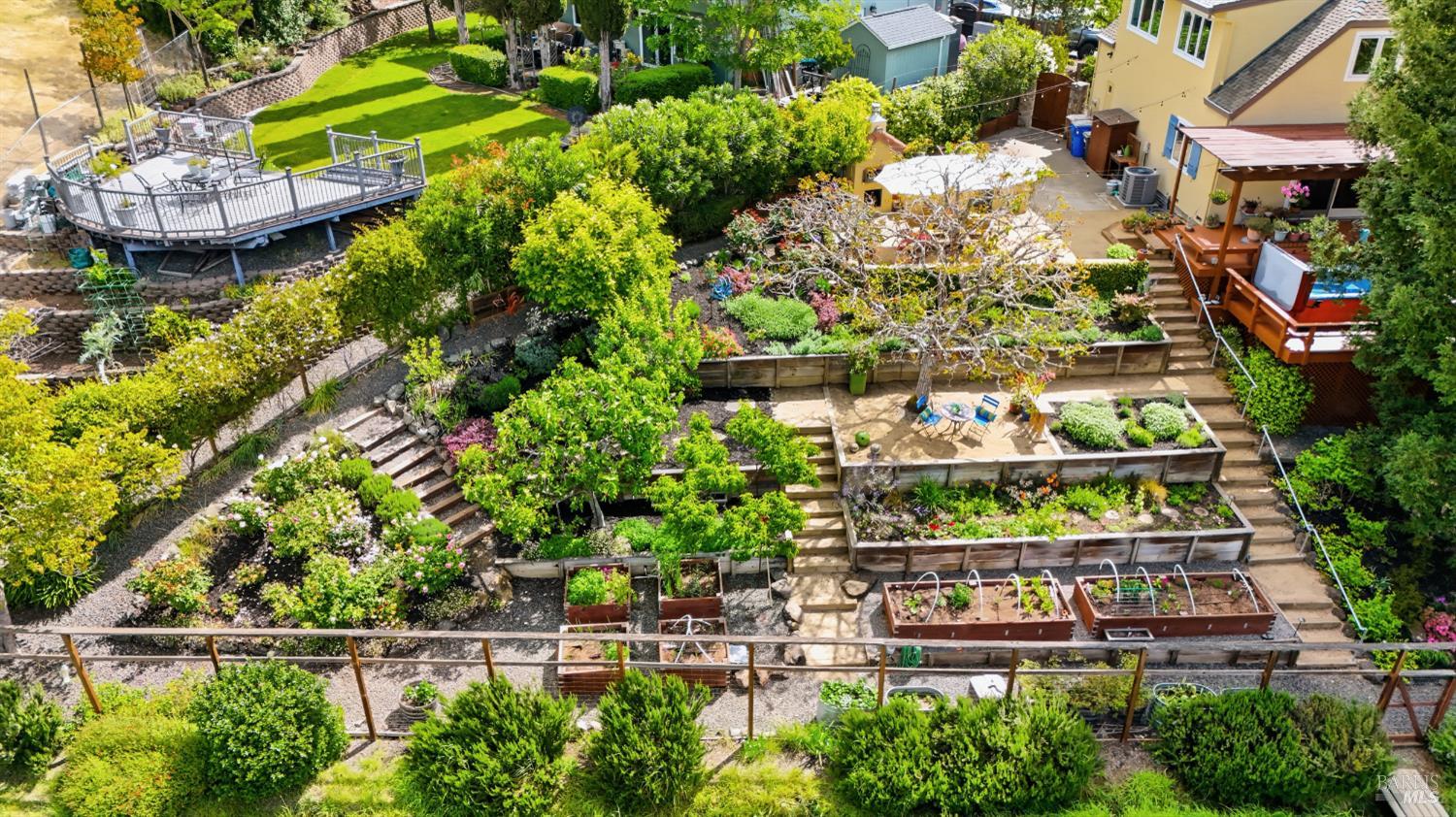 Tucked away on a peaceful cul-de-sac in Browns Valley's coveted west hills, this elegant French Country-inspired residence offers a rare blend of warmth, sophistication, and true Wine Country living! Lovingly customized over the years, never a flip, this home exudes character and craftsmanship, far from anything cookie-cutter. Step through the foyer into a gracious Living Room anchored by a beautifully rebuilt stone Fireplace, creating an inviting space that flows effortlessly into the formal Dining Room, ideal for intimate gatherings or lively celebrations. At the heart of the home, the thoughtfully designed Chef's Kitchen blends style and function with a generous butcher block island, quartz countertops, abundant cabinetry, and top-tier appliances including a Viking gas cooktop, double ovens, warming drawer, and professional-style refrigerator. The Kitchen opens seamlessly to the Family Room and adjacent temp-controlled wine cellar, enhancing the home's natural flow for everyday living and entertaining. Designed to embrace indoor-outdoor living, glass doors lead to approximately 1,500 SF of redwood decking with sweeping hillside and vineyard views stretching toward the Mayacamas foothills! Multiple outdoor entertaining spaces invite you to host unforgettable gatherings, complete with two fully equipped cooking areas: one featuring a natural gas grill, burner, and sink, and the other a generous island paired with a wood-fired pizza oven perfect for everything from artisan pizzas to slow-roasted feasts. The outdoor experience is nothing short of enchanting! Terraced gardens filled with vibrant flowers, raised vegetable beds, and a bounty of fruit trees: apples, pears, peaches, plums, figs, and persimmons, create a true farm-to-table lifestyle. Bees, butterflies, birds, and passing wildlife add to the serene private setting, offering a sense of retreat just moments from town. Inside, the four spacious bedrooms provide comfort and flexibility, including a luxurious Primary suite with ample room for a sitting area or private fitness space. Three beautifully appointed full bathrooms and an expansive laundry room with abundant storage. This is more than a home, it's a lifestyle. Private, peaceful, and thoughtfully designed for both relaxation and entertaining, it offers an exceptional opportunity to experience the very best of refined wine country living!