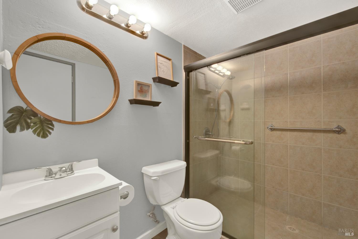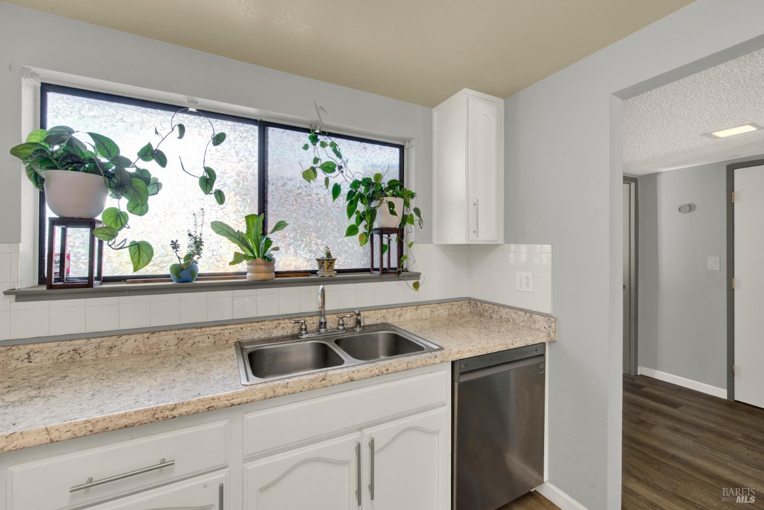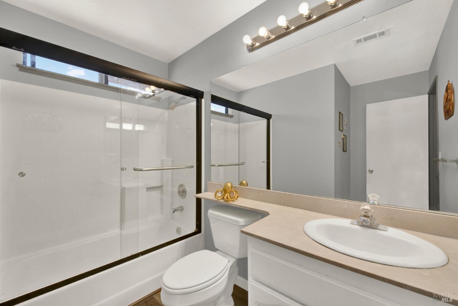 Nestled in a great location, this neatly kept and spacious two-story home welcomes you with an open and bright floor plan and durable LVT flooring throughout. The well-appointed kitchen features granite countertops and a gas stove, making meal prep a pleasure. The downstairs den can easily be converted into a bedroom, and there is a full bathroom on this level for added convenience. The primary suite is generous in size and showcases double doors, a large bathroom with a walk-in shower, and ample closet space. Outside, the large backyard offers fruit trees, lush turf, and an awning that provides welcome shade. Located near shopping, Travis Air Force base, train station, freeways, and schools. This home combines comfort, practicality, and accessibility in one wonderful package.
