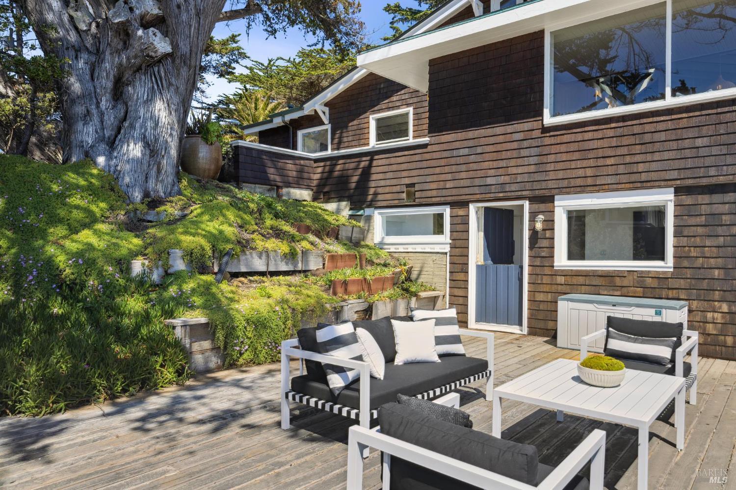 This isn't just a home, it's a front-row seat to California's most iconic coastal lifestyle, wrapped in history, creativity, and rare exclusivity. Welcome to 99 Brighton, an extraordinary opportunity to own a share of one of Northern California's most legendary oceanfront estates. Offered for the first time ever, three 1/4 ownership shares invite you to step into a legacy property that has long served as a sanctuary for artists, visionaries, and those seeking something truly special. Set along nearly 400 feet of pristine Pacific coastline in the coveted enclave of Bolinas, this private, gated retreat captures the essence of effortless coastal living just moments from San Francisco. The setting is nothing short of breathtaking - sweeping views stretch from Stinson Beach across the horizon and up the rugged Bolinas coastline, with the city skyline shimmering in the distance. Previously owned by Jefferson Starship's Grace Slick, the property reflects a rich cultural legacy, having hosted icons like Jerry Garcia and David Crosby. The spirit of creativity still lingers, most notably in the expansive family room, once home to late-night jam sessions and musical collaboration that helped shape an era. The grounds are equally unforgettable: a rare, guitar-shaped pool, sprawling flat lawn, hot tub, sauna, and multiple decks and patios designed for front-row views of the crashing surf below. Every room is oriented toward the ocean, immersing you in the rhythm and beauty of the coast. This is more than a residence, it's a legacy offering, a lifestyle, and a chance to own a meaningful piece of California history. Opportunities like this don't just come along - they're passed down.