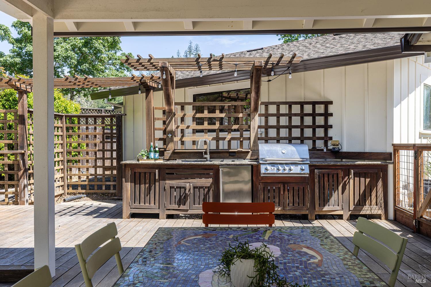 Stunning single-level Wine Country home on 1.15 acres with creek frontage and vineyard views! This turnkey 3BD/3BA residence offers 2,225 sq ft of light-filled living space with high-end finishes throughout. Features include an open-concept layout, updated kitchen with premium appliances, and a spacious living area with fireplace. The primary suite and additional bedrooms provide comfort and flexibility. Exceptional outdoor living with expansive deck, stone patio, outdoor kitchen, and landscaped grounds. Maacama Creek at the rear of the property attracts abundant wildlife, creating a peaceful, private setting. Wrap-around driveway with ample parking plus 2-car garage. Prime location near Chalk Hill Road and close to renowned wineries including Verit, Chalk Hill Estate, and Roth. Turnkey, private, and ideally located don't miss this Wine Country opportunity!