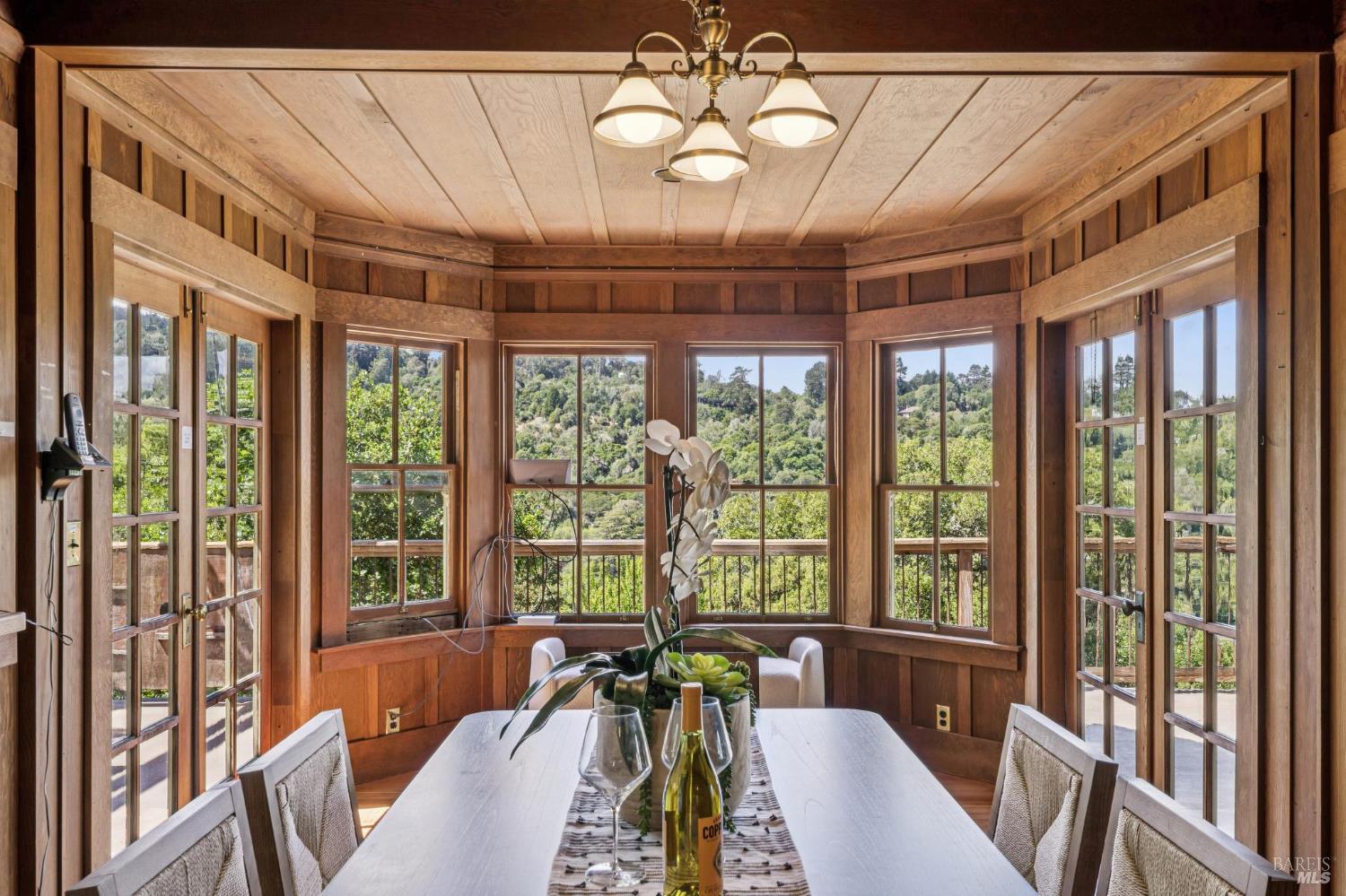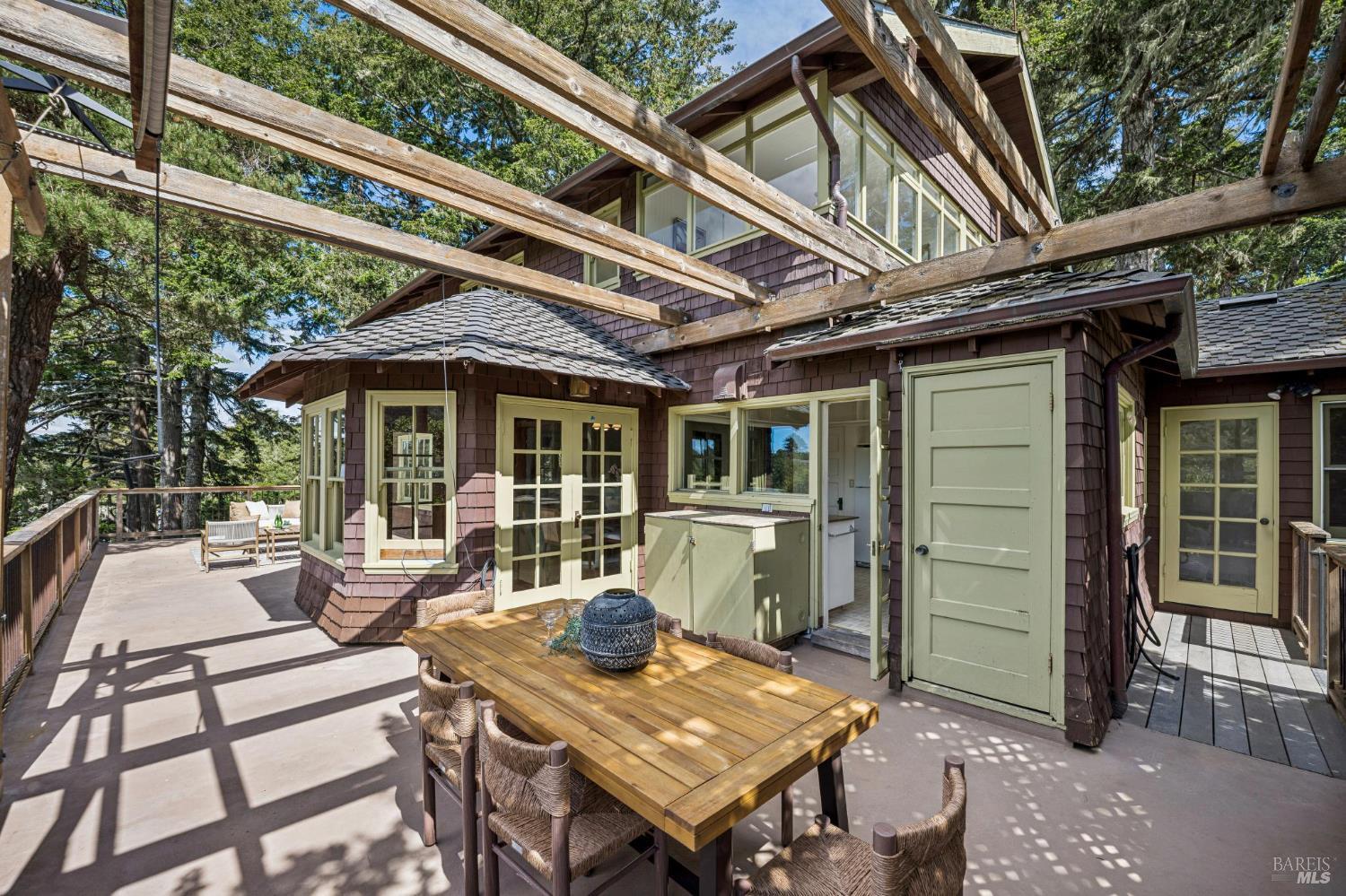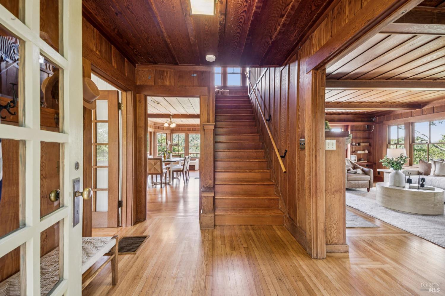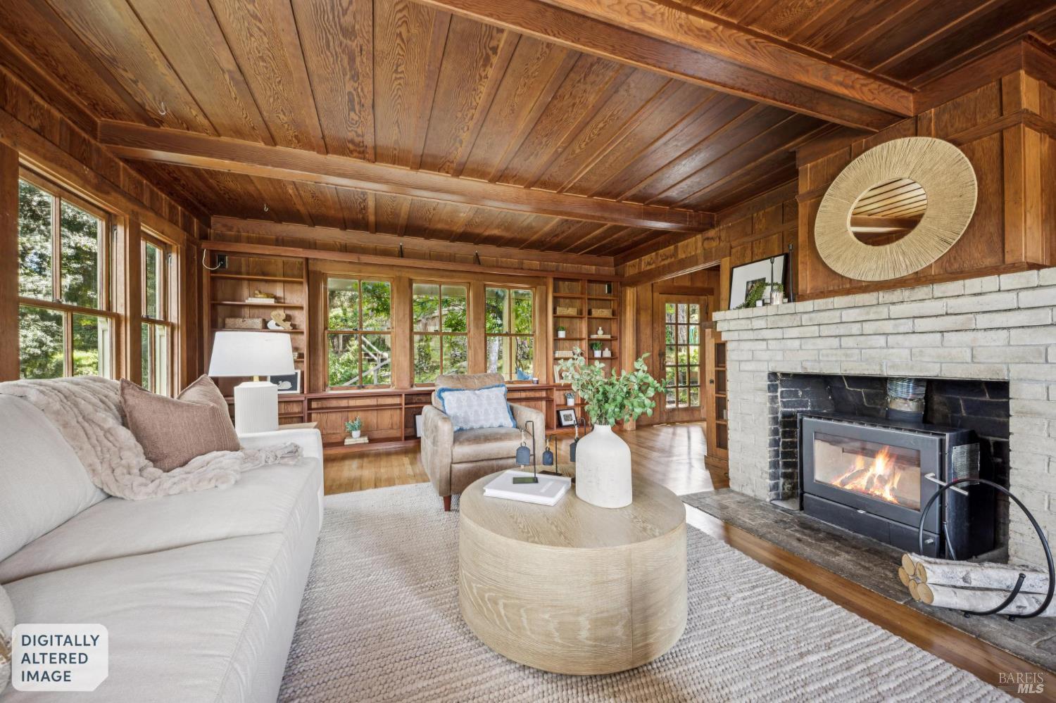 50 Dundee Way is a classic Inverness retreat with 6 bedrooms and 3 bathrooms in the main residence, 1-bedroom ADU and workshop. Built in 1909 from old-growth Douglas fir, this sun-filled home comes alive in the spring, set at the end of a long, little-traveled lane where light and nature surround you. Now thoughtfully staged, the home's spaces feel refreshed, allowing its warmth, scale, and potential to truly shine. Held by the same family since 1959, this home has long been a place of gathering. The floors have carried generations, the front porch welcomes soft breezes, and the brick hearth anchors cozy evenings with a sense of comfort that feels both nostalgic and enduring. Time has added texture and story to this classic home. For those ready to step in, the home offers remarkable bones and an inspiring canvas. Springtime here is especially magical as gardens begin to bloom and heritage trees sway overhead. Take in the fresh, salt-tinged air drifting in from nearby Tomales Bay. This is more than a home. It's a place to begin again, just as the season invites.