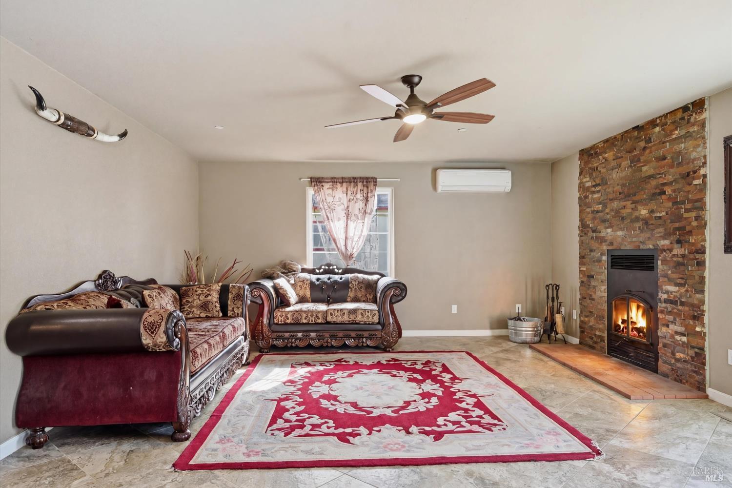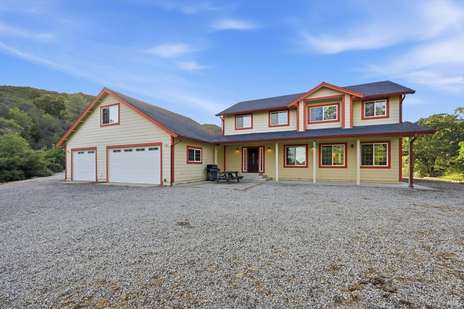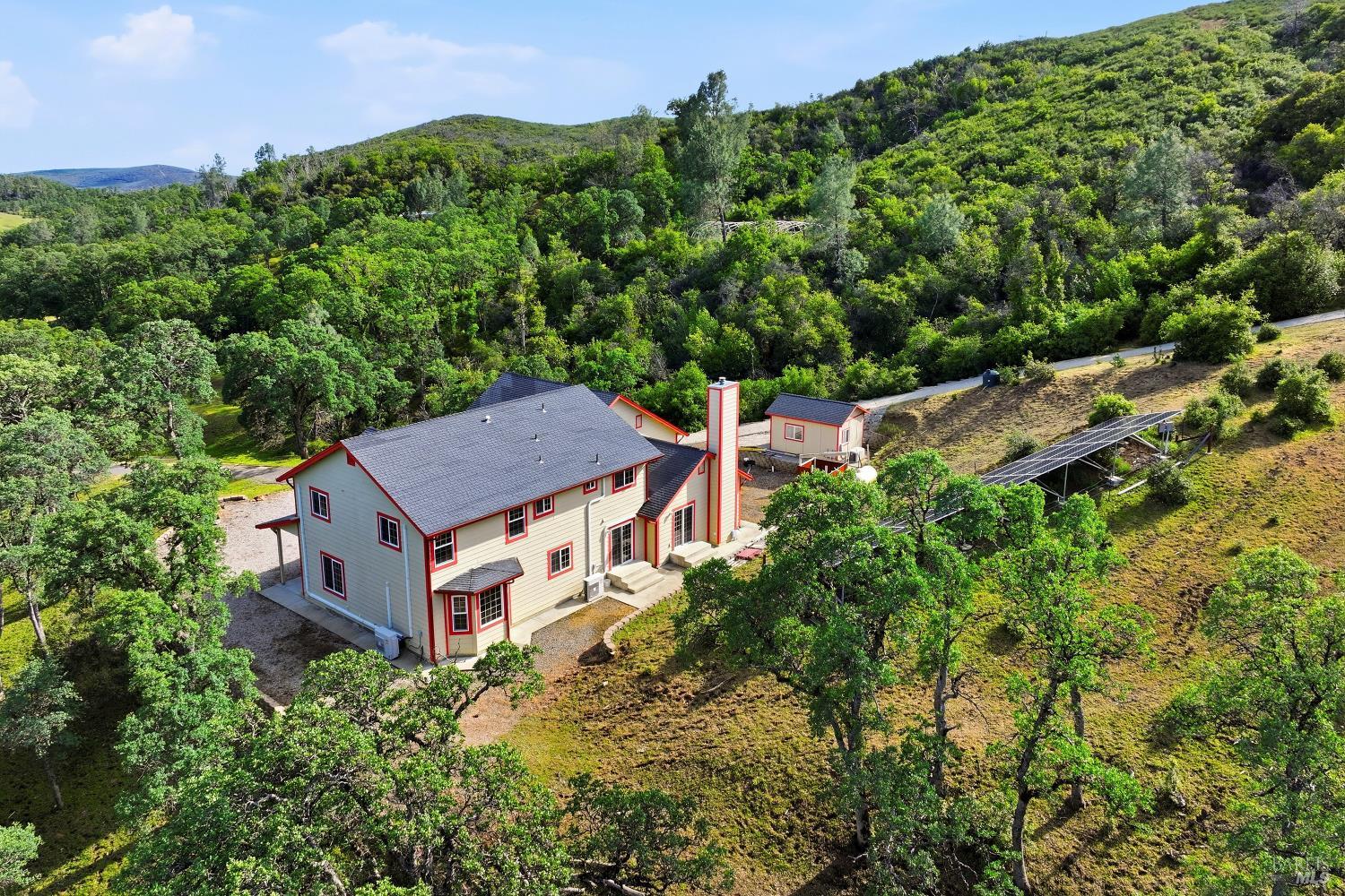 118 acres of Northern California ranch living with refined interior finishes and exceptional infrastructure. This 4-bed, 3.5-bath residence features marble countertops throughout, an open-concept kitchen with center island, bar seating, and generous storage. The family room adjoins the kitchen and includes a wood-burning fireplace and sliding glass doors opening to mountain views. A separate living room provides additional space for daily living. Each bedroom is individually climate-controlled via mini-split systems. The primary suite offers dual sinks and a well-appointed bath. A extra room above the 4-car garage is suitable for office, guest, or flex use. Property is fully cross-fenced and currently supports approx. 7 cows and 1 bull (born on-site, available to convey). Seasonal pond, natural year-round spring, and miles of drivable trails throughout the acreage. Two high-producing wells (approx. 42 GPM buyer to verify) with solar-powered irrigation. Owned solar array with battery backup powers the entire property. Additional structures include an older mobile unit used for garden/storage and a dedicated alfalfa barn area. Custom outdoor shower on site. Abundant firewood. RV/boat parking available. Washer and dryer included. Suitable for primary residence, working ranch, multi-generational use, or short-term rental opportunity. Buyer to verify all data including acreage, GPM, and permitted uses with applicable county agencies.$115,000 premium off-grid solar system: 12.42 kW solar array (36 SolarWorld panels) 61.2 kWh lithium battery bank (18 Simpliphi modules) Dual Outback 8 kW inverter-chargers Four Outback FlexMax 80 controllers 16 kW Generac propane backup generator Ground-mounted IronRidge systemThis system stores over 61 kWh and produces 12.42 kW of solar more than enough to power the entire home comfortably with full off-grid capability. 2.5 hours from Bay Area 1.75 hours from Napa