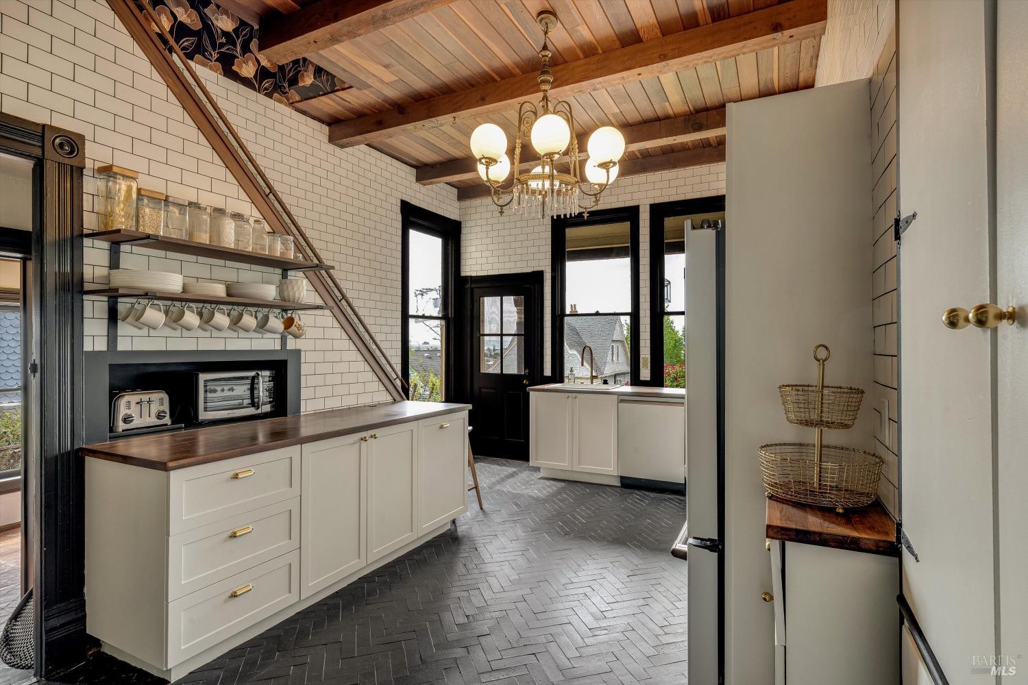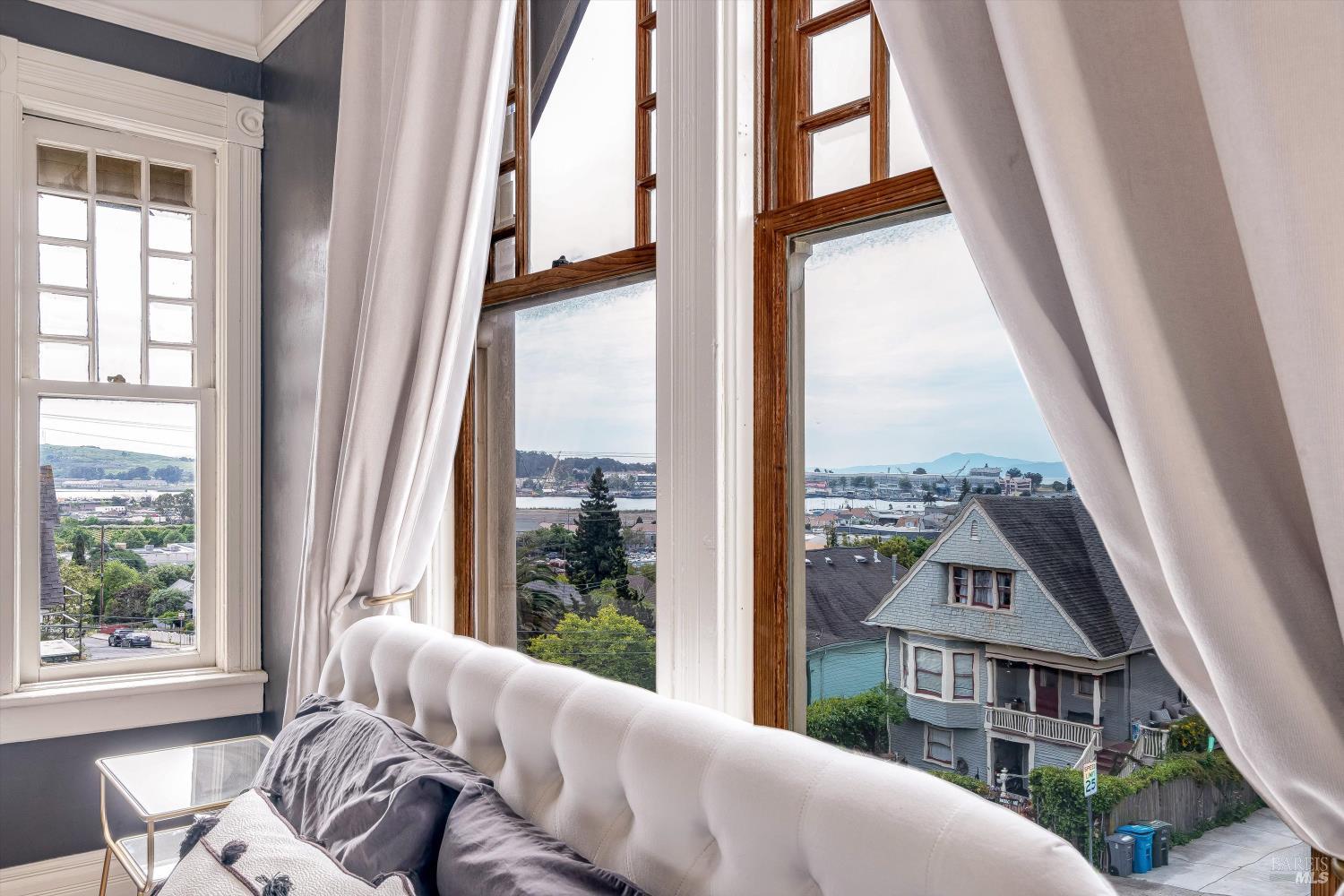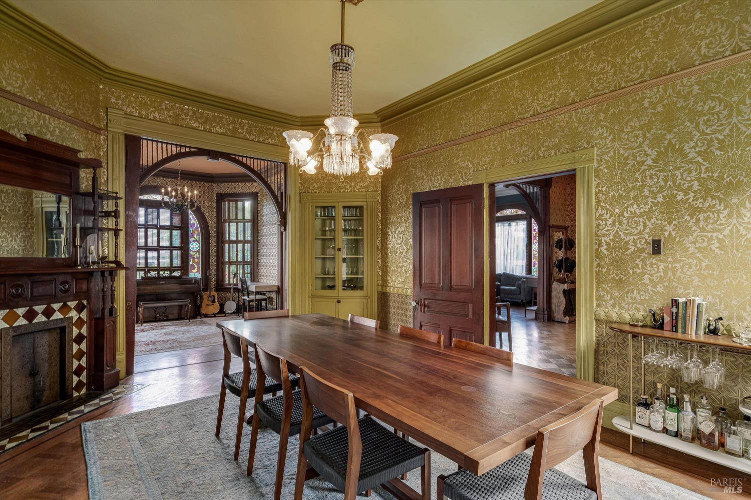 You don't come across homes like this very often. This 1891 Queen Anne Victorian offers a San Francisco-adjacent lifestyle with nearly 3,000 sq. ft. of grand, one-of-a-kind character. Soaring 11-foot ceilings, original chandeliers, and four fireplaces showcase incredible craftsmanship, yet this is a home designed for modern living, not a museum. The kitchen has been thoughtfully remodeled to honor the home's soul, featuring a Lacanche range imported from France and herringbone brick flooring. From the home, enjoy views of Mt. Tamalpais and the Napa River, where the San Francisco ferry comes and goes daily, a backdrop that connects you directly to the Bay. Upstairs, the fully renovated primary bathroom feels like a true retreat, complete with heated floors and a classic clawfoot tub. A rare find for this style of home, the property includes a two-car attached garage with a Tesla charger and generous storage. Located in the Architectural Heritage District, you're just a short stroll to the ferry and downtown Vallejo's growing collection of restaurants and coffee shops. It's the perfect blend of historic presence and everyday livability.