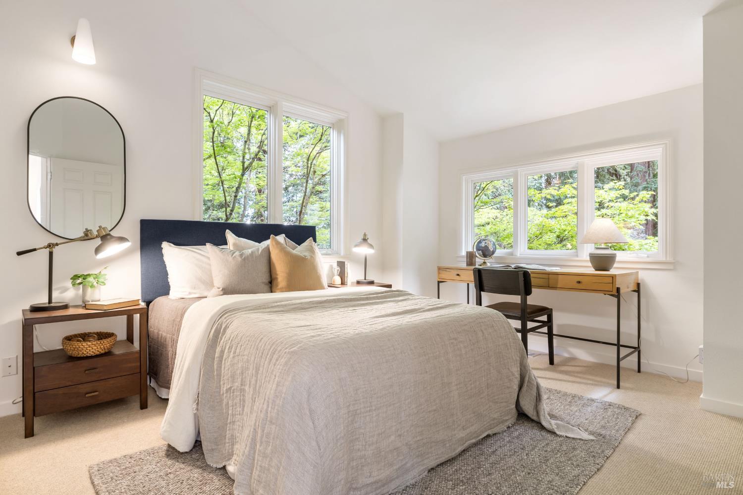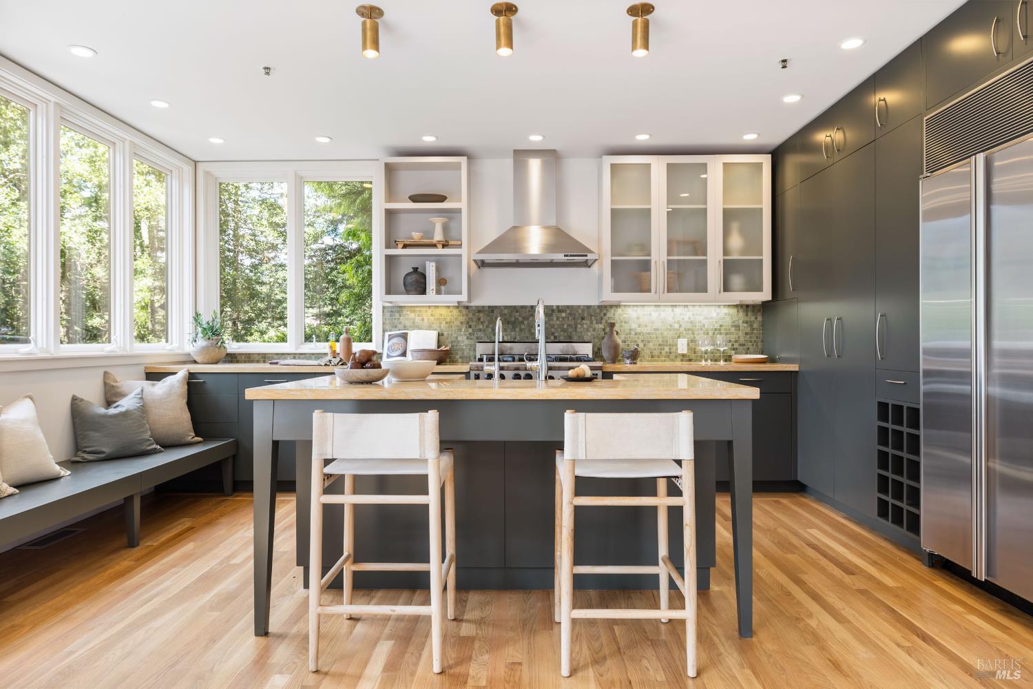 You've never experienced Mt. Tam views like this. This private, architecturally inspired sanctuary located in the heart of Mill Valley fuses a zen vibe, majestic views and the ultimate in Mill Valley living. 200 Hazel is a light-filled residence ideally positioned to capture cinematic views of Mt. Tam with dramatic vistas unfolding from nearly every room. This sophisticated 4 bed/3.5 bath home offers an exceptional floor plan with all the public rooms and gleaming oak floors on the main level. Thoughtfully designed with clean lines, the interiors are both striking and inviting. French doors, opening to a spacious deck, create seamless indoor/outdoor living, and the expansive windows frame the ever-changing natural landscape. The spacious open living room, stone-clad fireplace, and adjacent family room are perfect for easy entertaining and unwinding in a setting that feels worlds away. The romantic primary suite with stunning ridgeline views has beautiful African Mocha wood cabinetry and a spa-like bath. There is a 2-car garage and plenty of parking. All of this is just moments from the Dipsea Steps, the charm of downtown Mill Valley, acclaimed schools and the miles of scenic trails. A home this special doesn't simply offer a view it creates an experience.