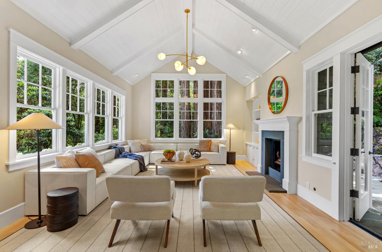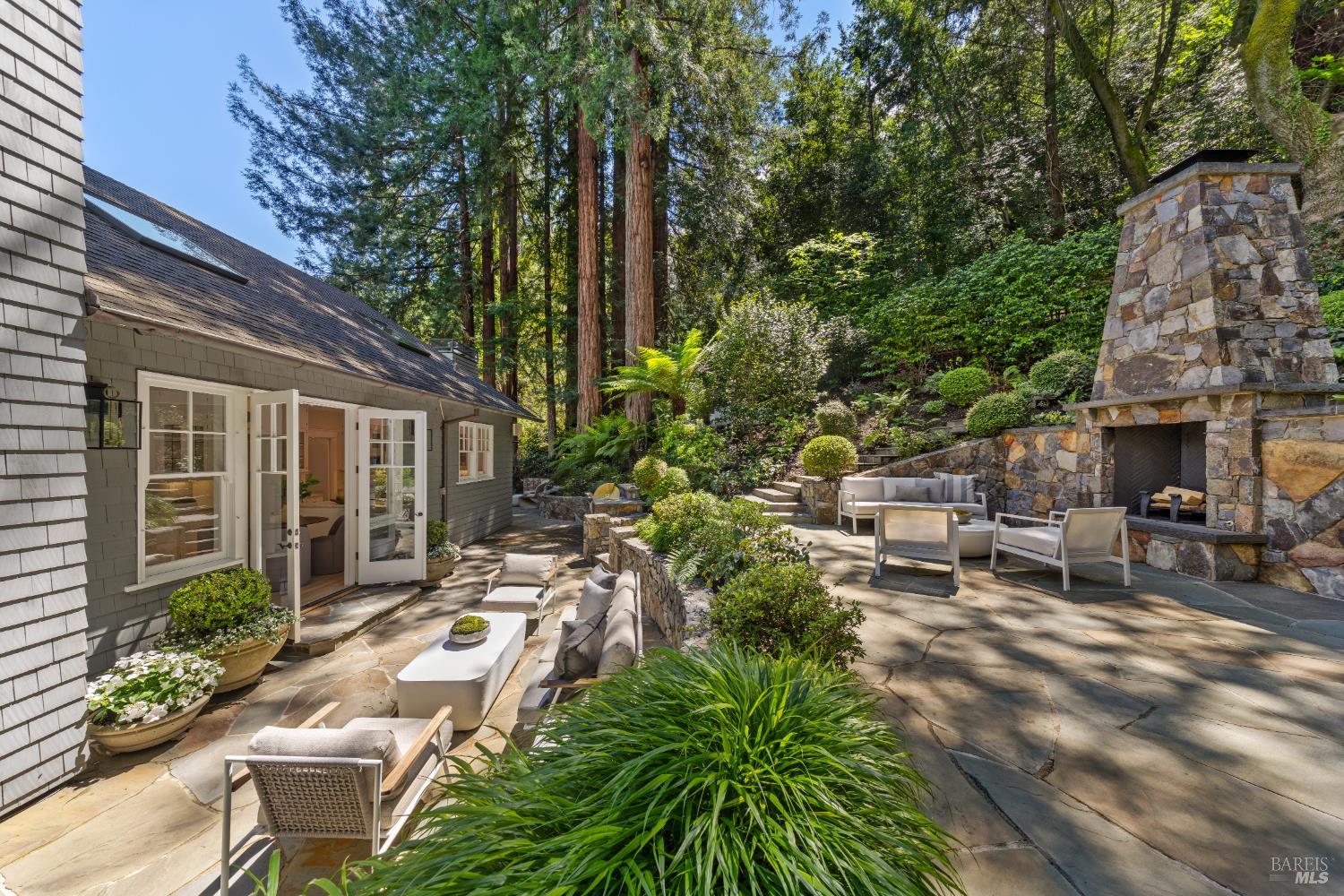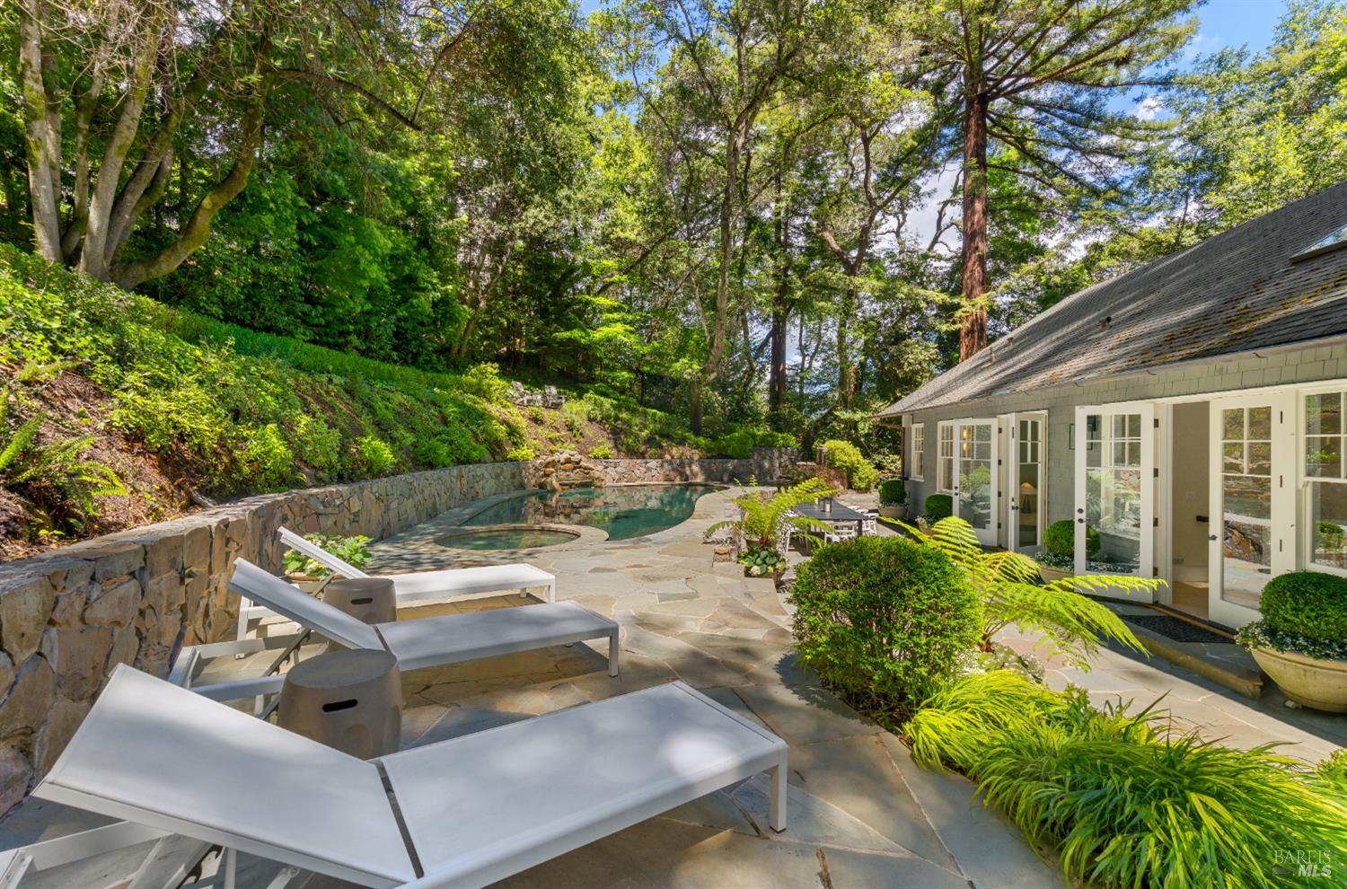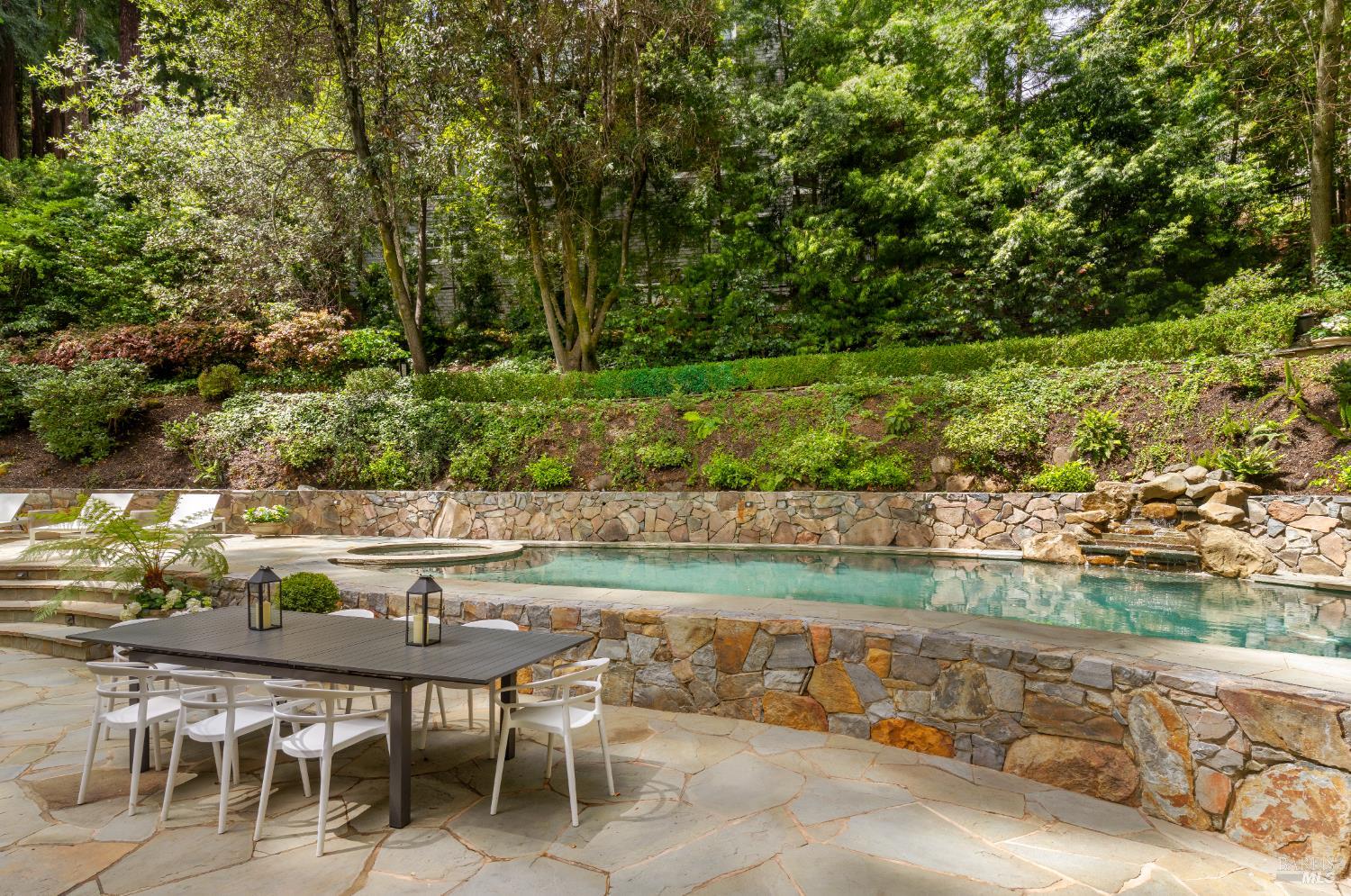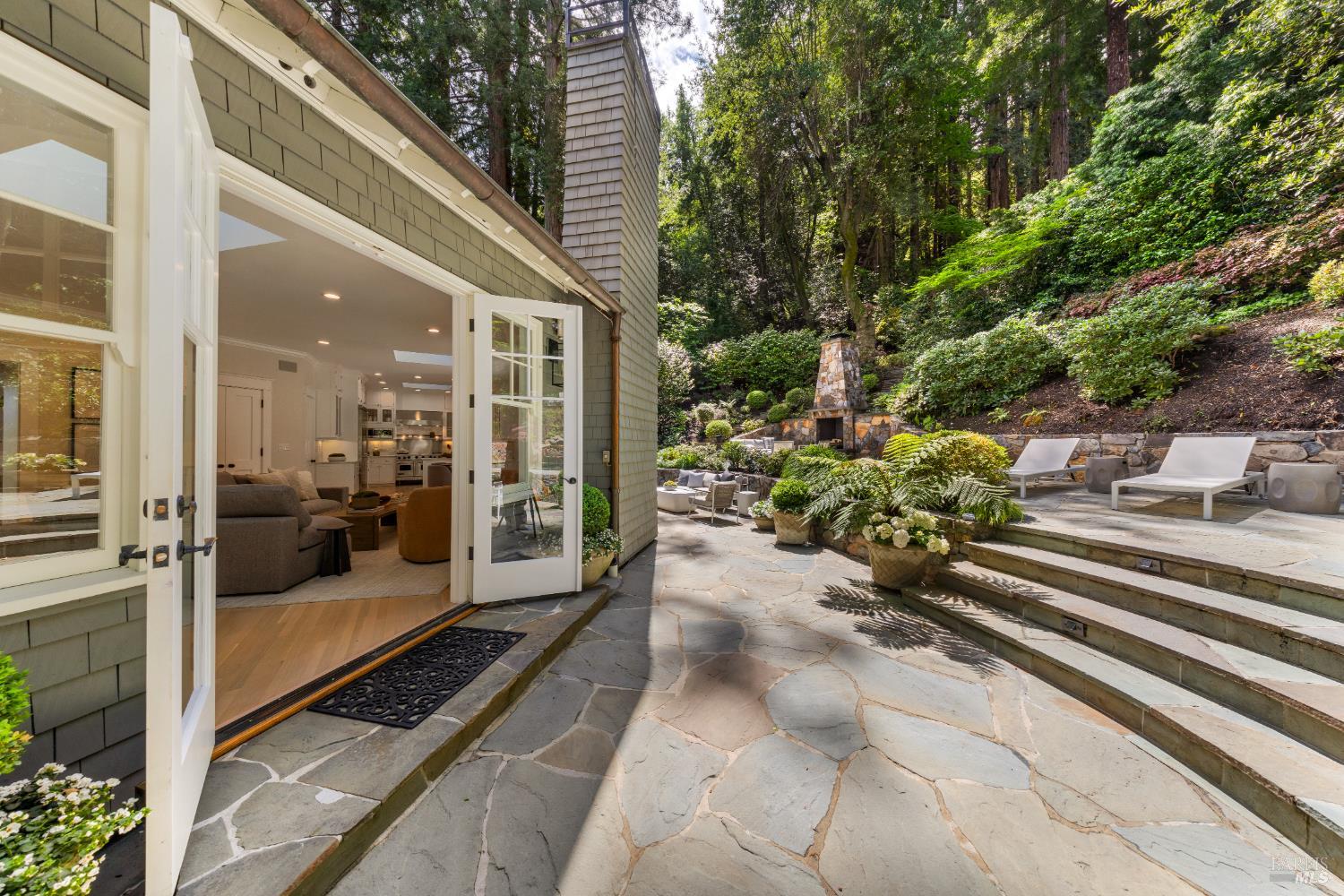 Hampton's inspired design in this spectacular 5 bedroom shingle style Ross residence. Meticulous blend of high end design incorporates bespoke lighting, custom wall coverings, soaring box beam ceilings, divided light windows, and the extensive use of white marble throughout. Beautifully appointed grand scale great room opens directly to the resort like grounds with seamless indoor/outdoor living throughout. Secondary family room on lower level. Perfectly site placed on a verdant +- 1/2 acre property with multiple level outdoor entertaining spaces. In ground pool & spa, outdoor fireplace, large level lawn, and al fresco dining areas. Mature plantings with organized, east coast inspired landscaping throughout. HUGE parking court allows for ample off street parking. Just blocks from the award winning K-8th grade Ross School and Ross Common. Gated, quiet and very private: A rarity for an in town location. Blocks to the vast network of hiking and biking trails in the Phoenix Lane recreational area.
