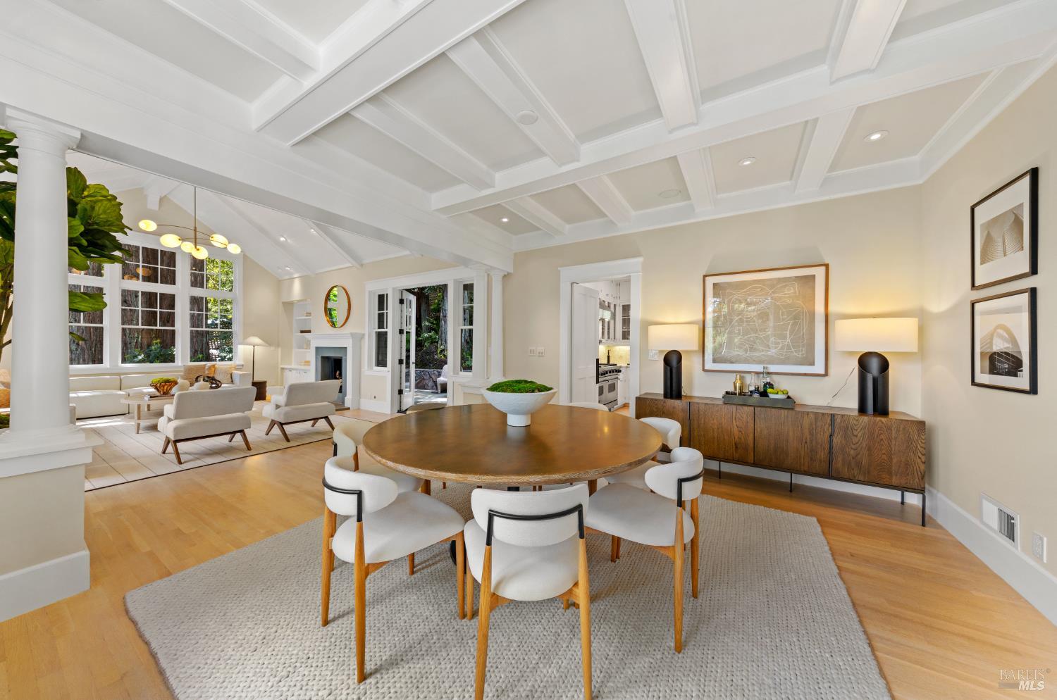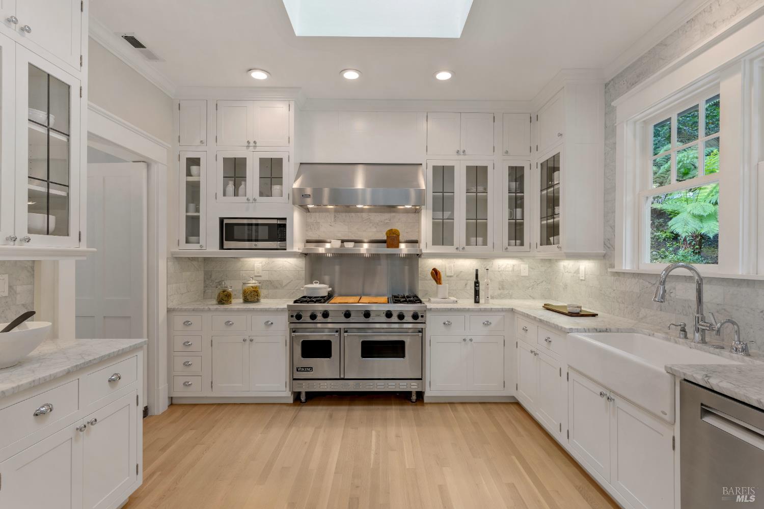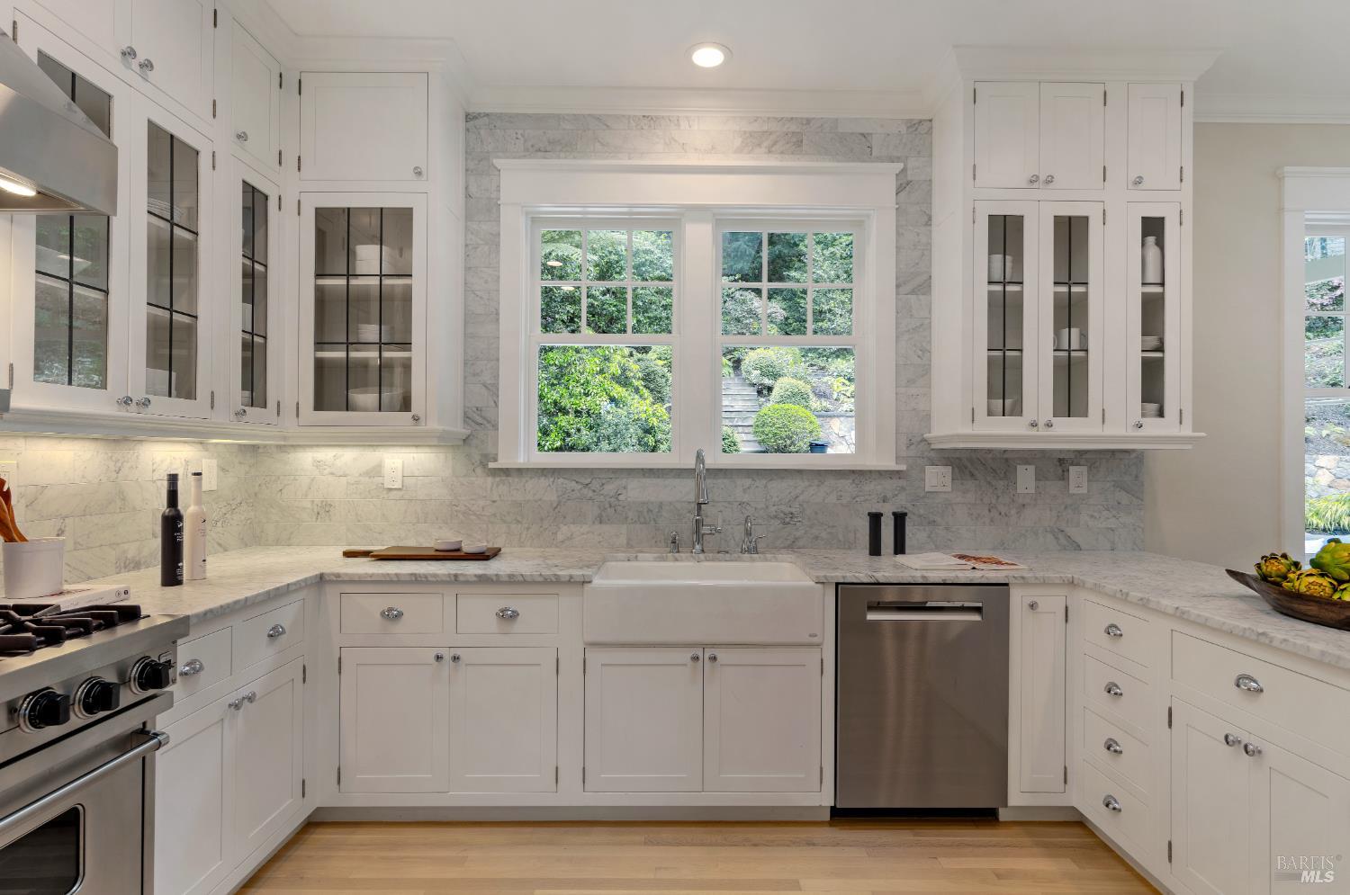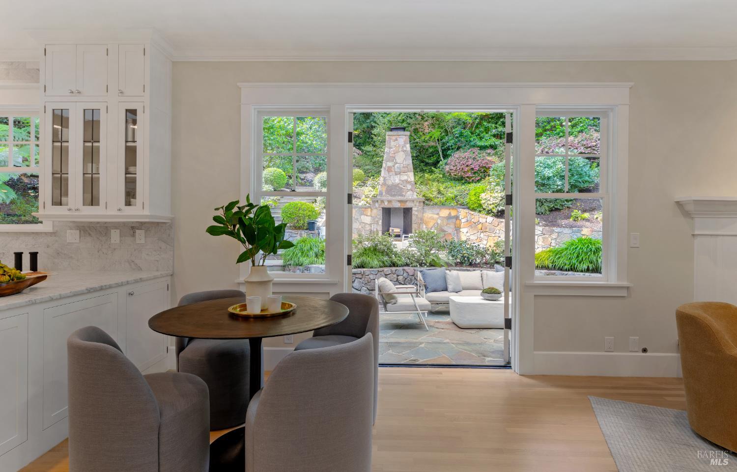 Hampton's inspired design in this spectacular 5 bedroom shingle style Ross residence. Meticulous blend of high end design incorporates bespoke lighting, custom wall coverings, soaring box beam ceilings, divided light windows, and the extensive use of white marble throughout. Beautifully appointed grand scale great room opens directly to the resort like grounds with seamless indoor/outdoor living throughout. Secondary family room on lower level. Perfectly site placed on a verdant +- 1/2 acre property with multiple level outdoor entertaining spaces. In ground pool & spa, outdoor fireplace, large level lawn, and al fresco dining areas. Mature plantings with organized, east coast inspired landscaping throughout. HUGE parking court allows for ample off street parking. Just blocks from the award winning K-8th grade Ross School and Ross Common. Gated, quiet and very private: A rarity for an in town location. Blocks to the vast network of hiking and biking trails in the Phoenix Lane recreational area.