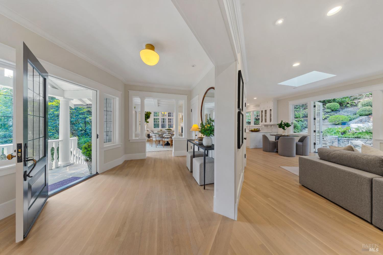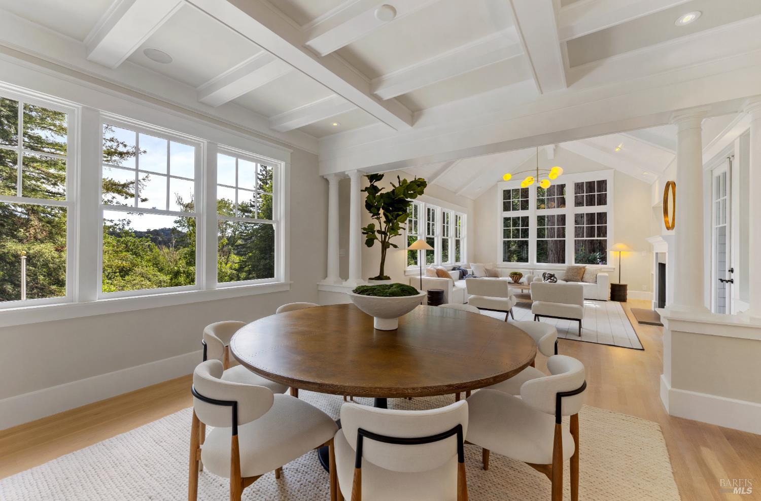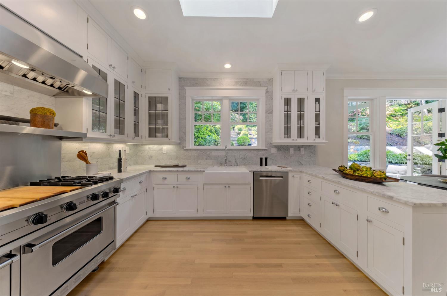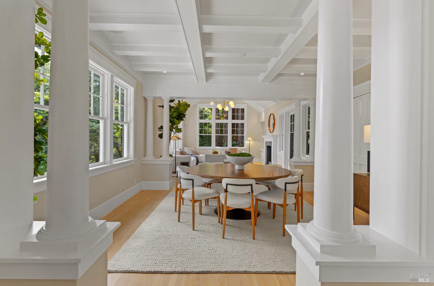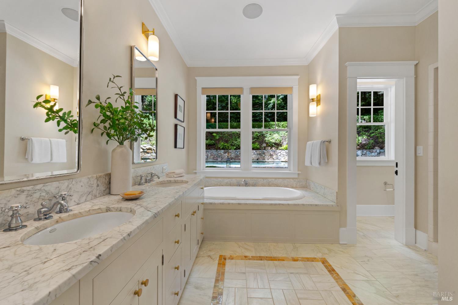 Hampton's inspired design in this spectacular 5 bedroom shingle style Ross residence. Meticulous blend of high end design incorporates bespoke lighting, custom wall coverings, soaring box beam ceilings, divided light windows, and the extensive use of white marble throughout. Beautifully appointed grand scale great room opens directly to the resort like grounds with seamless indoor/outdoor living throughout. Secondary family room on lower level. Perfectly site placed on a verdant +- 1/2 acre property with multiple level outdoor entertaining spaces. In ground pool & spa, outdoor fireplace, large level lawn, and al fresco dining areas. Mature plantings with organized, east coast inspired landscaping throughout. HUGE parking court allows for ample off street parking. Just blocks from the award winning K-8th grade Ross School and Ross Common. Gated, quiet and very private: A rarity for an in town location. Blocks to the vast network of hiking and biking trails in the Phoenix Lane recreational area.