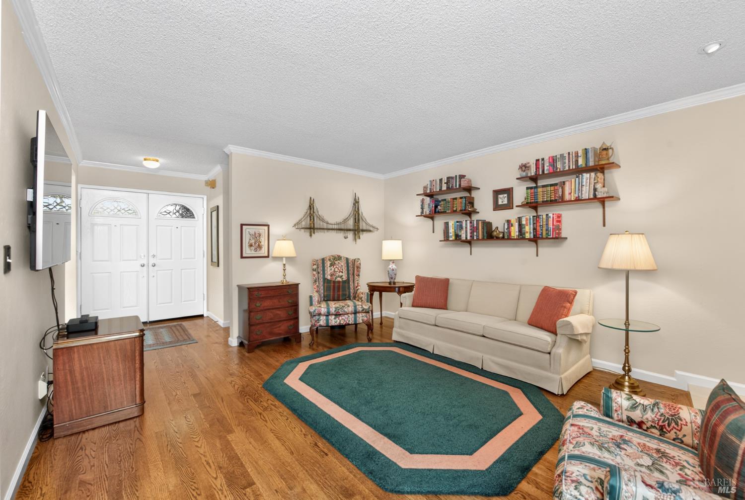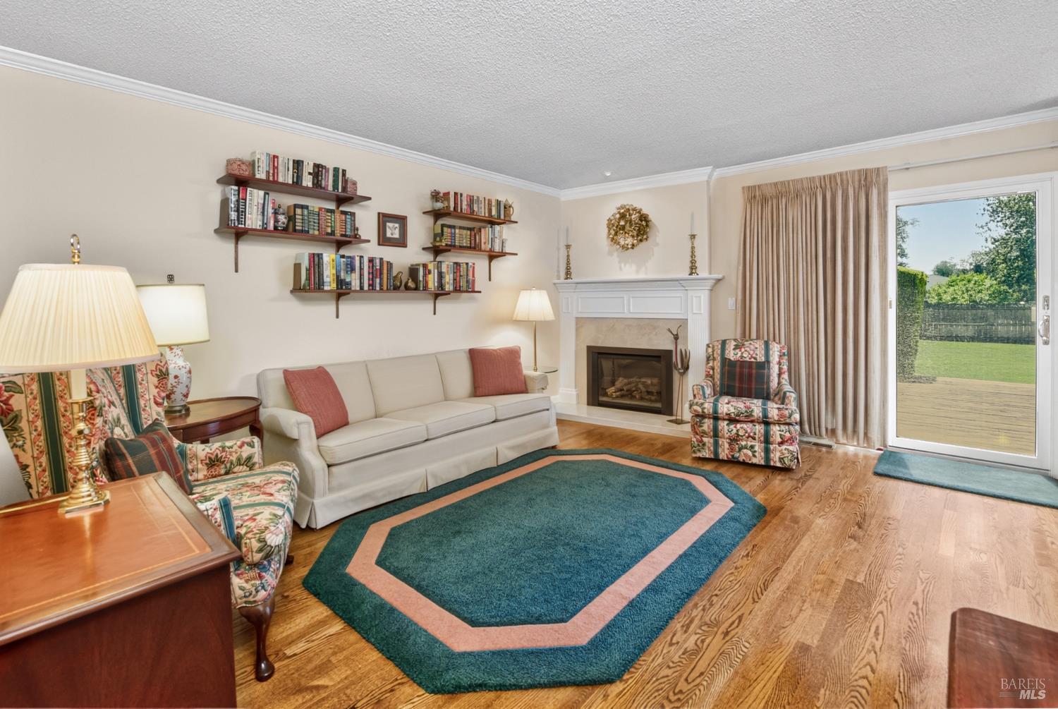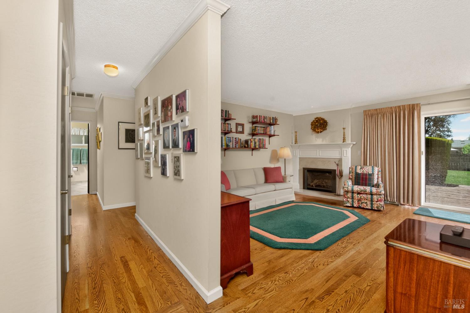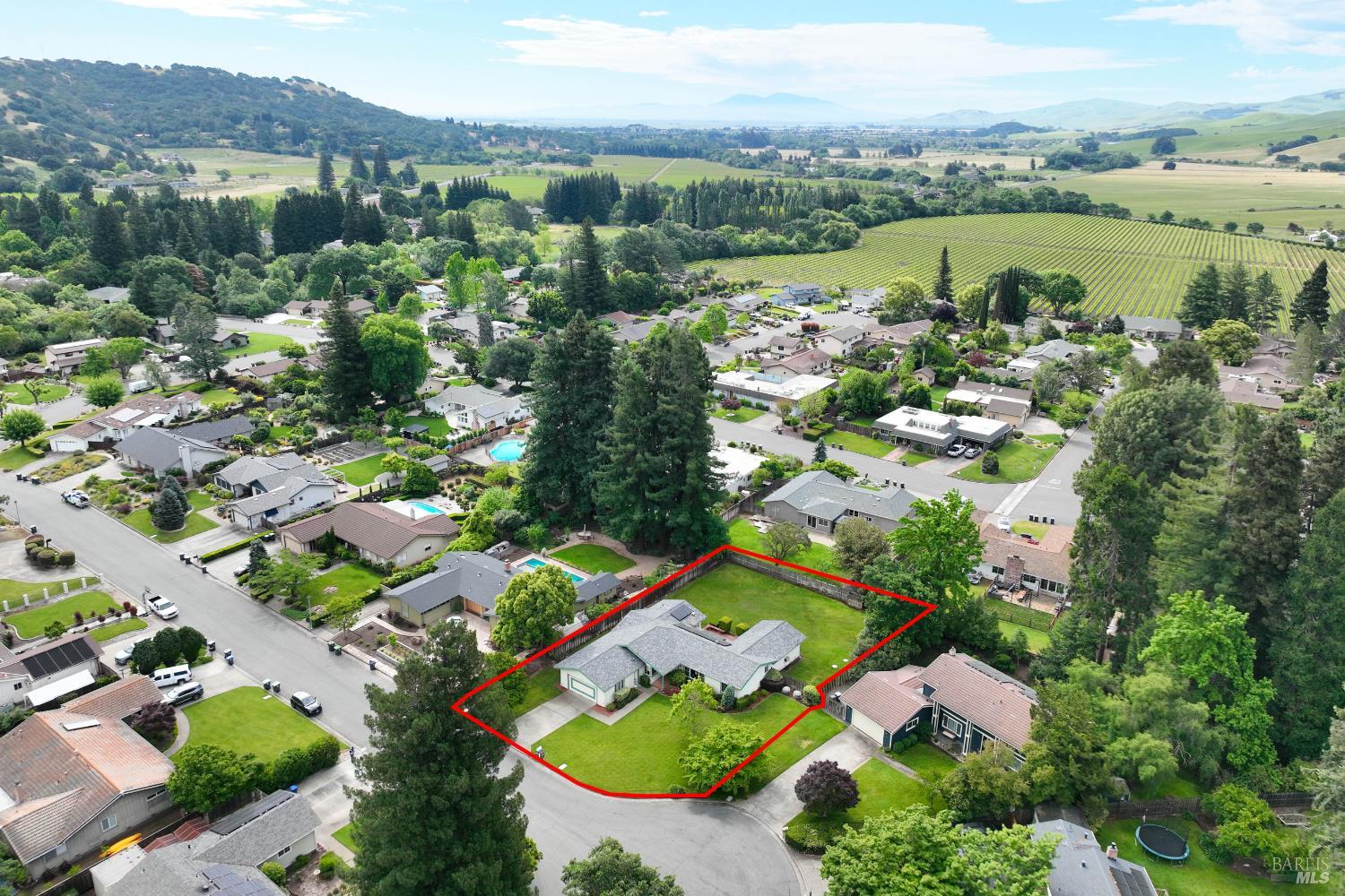 A standout residence in sought-after Green Valley Estates where timeless care meets a welcoming sense of home. Impeccably maintained by its original owner, this beautifully cared-for single-level residence reflects true pride of ownership throughout. Offering 4 bedrooms, 2.5 baths, and an approximate 320 sq ft multi-purpose room, this home blends enduring quality with thoughtful updates and a warm, comfortable living experience. A brand-new composite roof (2026) and solar (power purchase agreement) provide added value and efficiency, while the interior showcases hardwood flooring, custom crown molding, Andersen windows and sliders, two-tone paint, and quality wood doors throughout. The well-appointed kitchen features granite slab countertops, alderwood custom cabinetry, stainless steel appliances including a gas cooktop, double oven, and built-in microwave, along with a charming built-in dining nook perfect for everyday living. A spacious layout offers both a formal living room and dining room, complimented by a separate family room featuring a gas fireplace with custom mantel and marble surround creating distinct yet connected spaces for everyday living and entertaining. Additional highlights include an extended vanity with abundant cabinetry in the hall bath, Silestone countertops, tile flooring, and a well-equipped laundry room with built-ins and convenient half bath access. Step outside to a sprawling, level backyard, a rare and versatile setting offering endless potential to create a private outdoor retreat, garden oasis, your very own soccer field, and/or future entertaining space. Ideally located in desirable Green Valley, just minutes from I-80, about 50 minutes to SF and/or Sacto AND over the hill from Napa. Minutes to Solano College, Travis Air Force Base, Kaiser, North Bay Hospital, retail, library, schools, winery events and more. Most importantly, it is just a golf cart ride to the exclusive private Green Valley Country Club, offering an 18-hole golf course, tennis, swimming, dining, and premier amenities. Surrounded by local farms, renowned wineries, and scenic rolling hills, this is a lifestyle defined by comfort, convenience, and quiet luxury. Homes of this caliber, condition, and location are rarely available! Experience Green Valley living at its finest. Don't miss out!