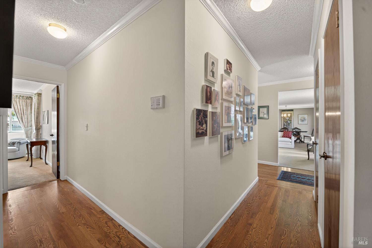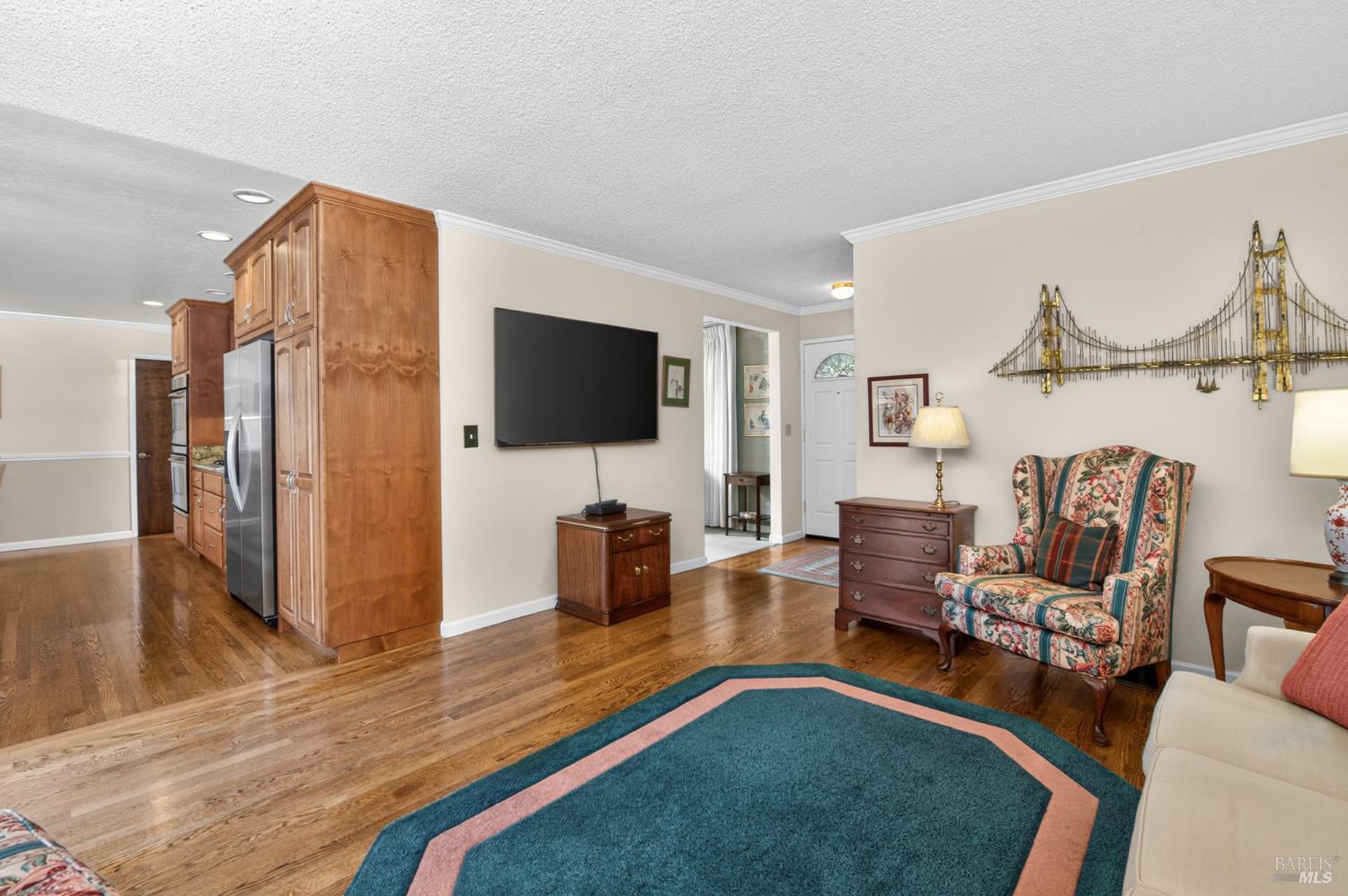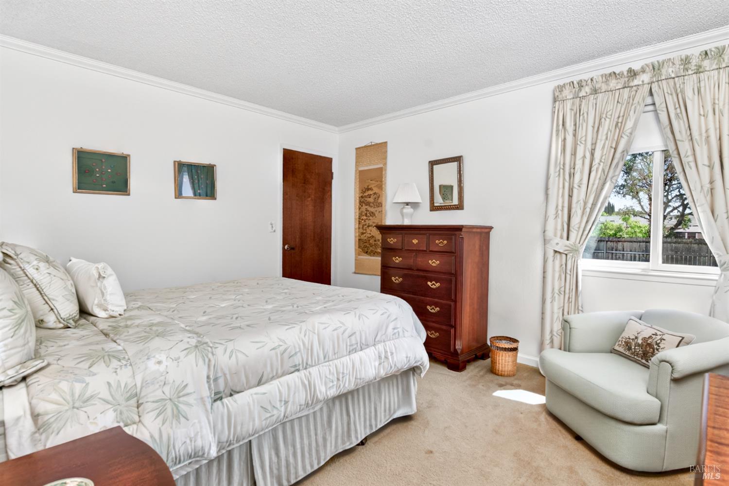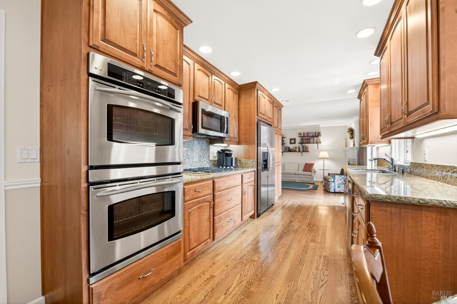 A standout residence in sought-after Green Valley Estates where timeless care meets a welcoming sense of home. Impeccably maintained by its original owner, this beautifully cared-for single-level residence reflects true pride of ownership throughout. Offering 4 bedrooms, 2.5 baths, and an approximate 320 sq ft multi-purpose room, this home blends enduring quality with thoughtful updates and a warm, comfortable living experience. A brand-new composite roof (2026) and solar (power purchase agreement) provide added value and efficiency, while the interior showcases hardwood flooring, custom crown molding, Andersen windows and sliders, two-tone paint, and quality wood doors throughout. The well-appointed kitchen features granite slab countertops, alderwood custom cabinetry, stainless steel appliances including a gas cooktop, double oven, and built-in microwave, along with a charming built-in dining nook perfect for everyday living. A spacious layout offers both a formal living room and dining room, complimented by a separate family room featuring a gas fireplace with custom mantel and marble surround creating distinct yet connected spaces for everyday living and entertaining. Additional highlights include an extended vanity with abundant cabinetry in the hall bath, Silestone countertops, tile flooring, and a well-equipped laundry room with built-ins and convenient half bath access. Step outside to a sprawling, level backyard, a rare and versatile setting offering endless potential to create a private outdoor retreat, garden oasis, your very own soccer field, and/or future entertaining space. Ideally located in desirable Green Valley, just minutes from I-80, about 50 minutes to SF and/or Sacto AND over the hill from Napa. Minutes to Solano College, Travis Air Force Base, Kaiser, North Bay Hospital, retail, library, schools, winery events and more. Most importantly, it is just a golf cart ride to the exclusive private Green Valley Country Club, offering an 18-hole golf course, tennis, swimming, dining, and premier amenities. Surrounded by local farms, renowned wineries, and scenic rolling hills, this is a lifestyle defined by comfort, convenience, and quiet luxury. Homes of this caliber, condition, and location are rarely available! Experience Green Valley living at its finest. Don't miss out!