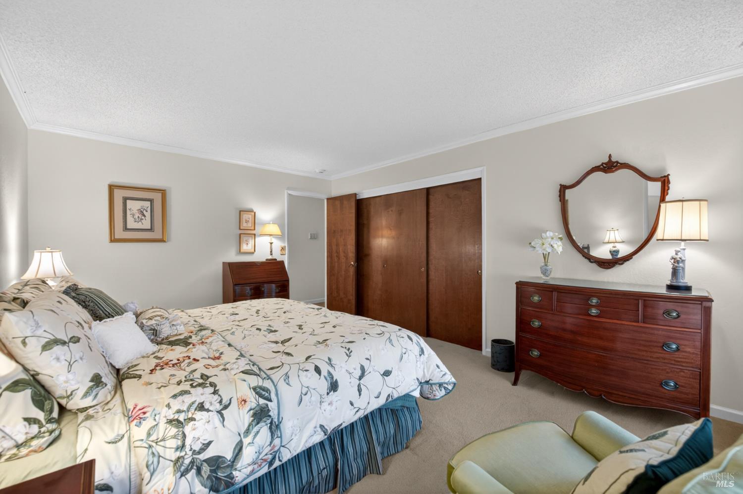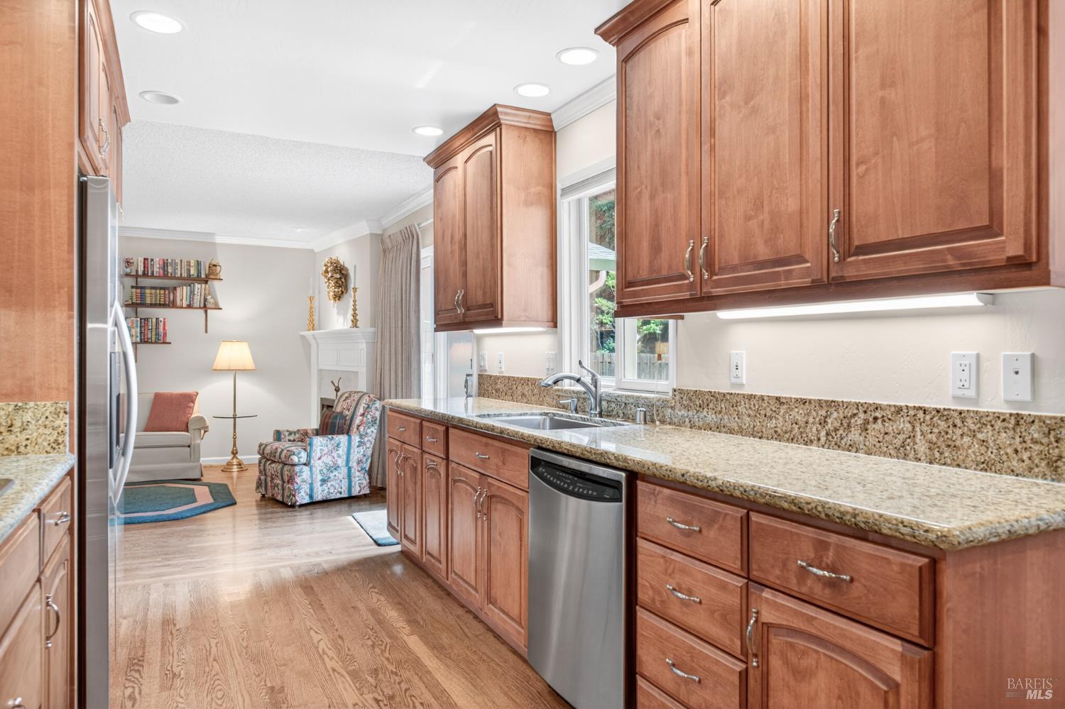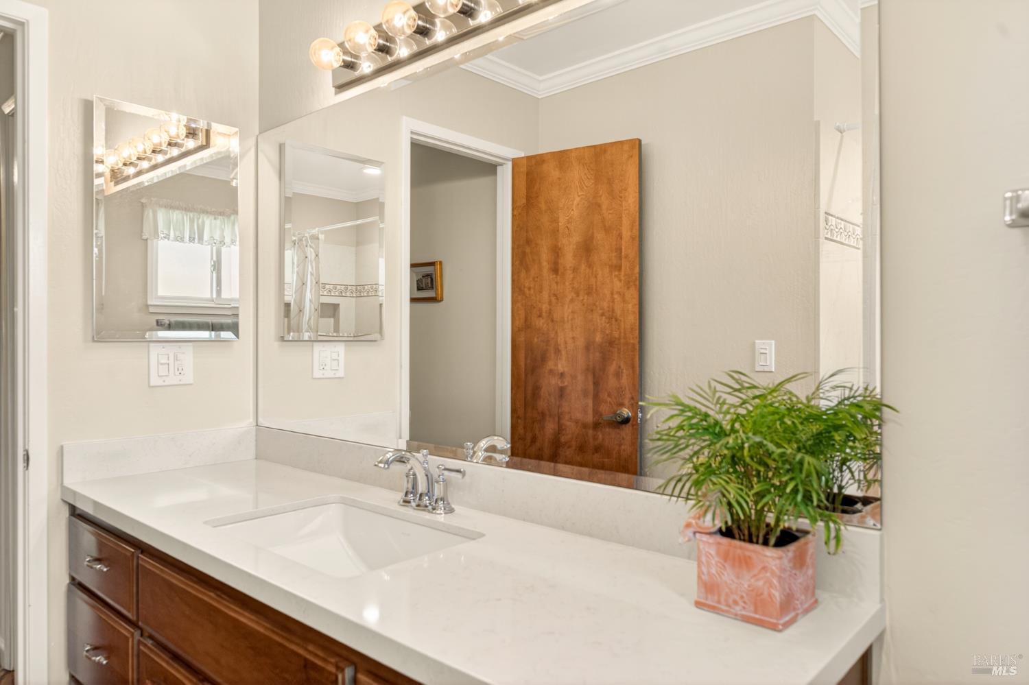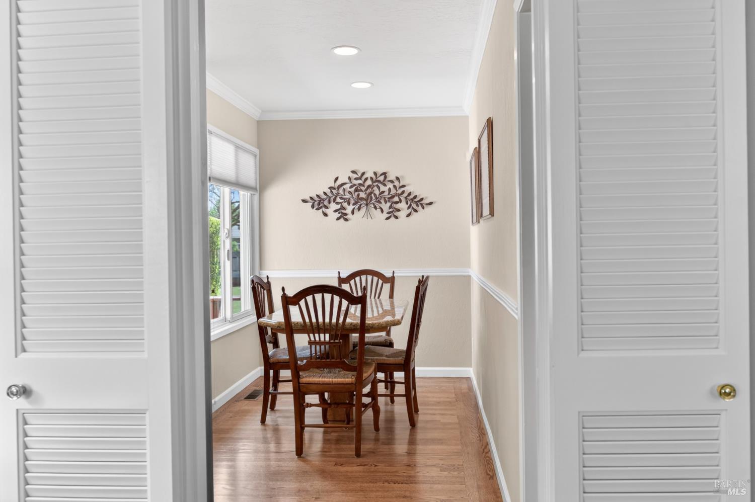A standout residence in sought-after Green Valley Estates where timeless care meets a welcoming sense of home. Impeccably maintained by its original owner, this beautifully cared-for single-level residence reflects true pride of ownership throughout. Offering 4 bedrooms, 2.5 baths, and an approximate 320 sq ft multi-purpose room, this home blends enduring quality with thoughtful updates and a warm, comfortable living experience. A brand-new composite roof (2026) and solar (power purchase agreement) provide added value and efficiency, while the interior showcases hardwood flooring, custom crown molding, Andersen windows and sliders, two-tone paint, and quality wood doors throughout. The well-appointed kitchen features granite slab countertops, alderwood custom cabinetry, stainless steel appliances including a gas cooktop, double oven, and built-in microwave, along with a charming built-in dining nook perfect for everyday living. A spacious layout offers both a formal living room and dining room, complimented by a separate family room featuring a gas fireplace with custom mantel and marble surround creating distinct yet connected spaces for everyday living and entertaining. Additional highlights include an extended vanity with abundant cabinetry in the hall bath, Silestone countertops, tile flooring, and a well-equipped laundry room with built-ins and convenient half bath access. Step outside to a sprawling, level backyard, a rare and versatile setting offering endless potential to create a private outdoor retreat, garden oasis, your very own soccer field, and/or future entertaining space. Ideally located in desirable Green Valley, just minutes from I-80, about 50 minutes to SF and/or Sacto AND over the hill from Napa. Minutes to Solano College, Travis Air Force Base, Kaiser, North Bay Hospital, retail, library, schools, winery events and more. Most importantly, it is just a golf cart ride to the exclusive private Green Valley Country Club, offering an 18-hole golf course, tennis, swimming, dining, and premier amenities. Surrounded by local farms, renowned wineries, and scenic rolling hills, this is a lifestyle defined by comfort, convenience, and quiet luxury. Homes of this caliber, condition, and location are rarely available! Experience Green Valley living at its finest. Don't miss out!