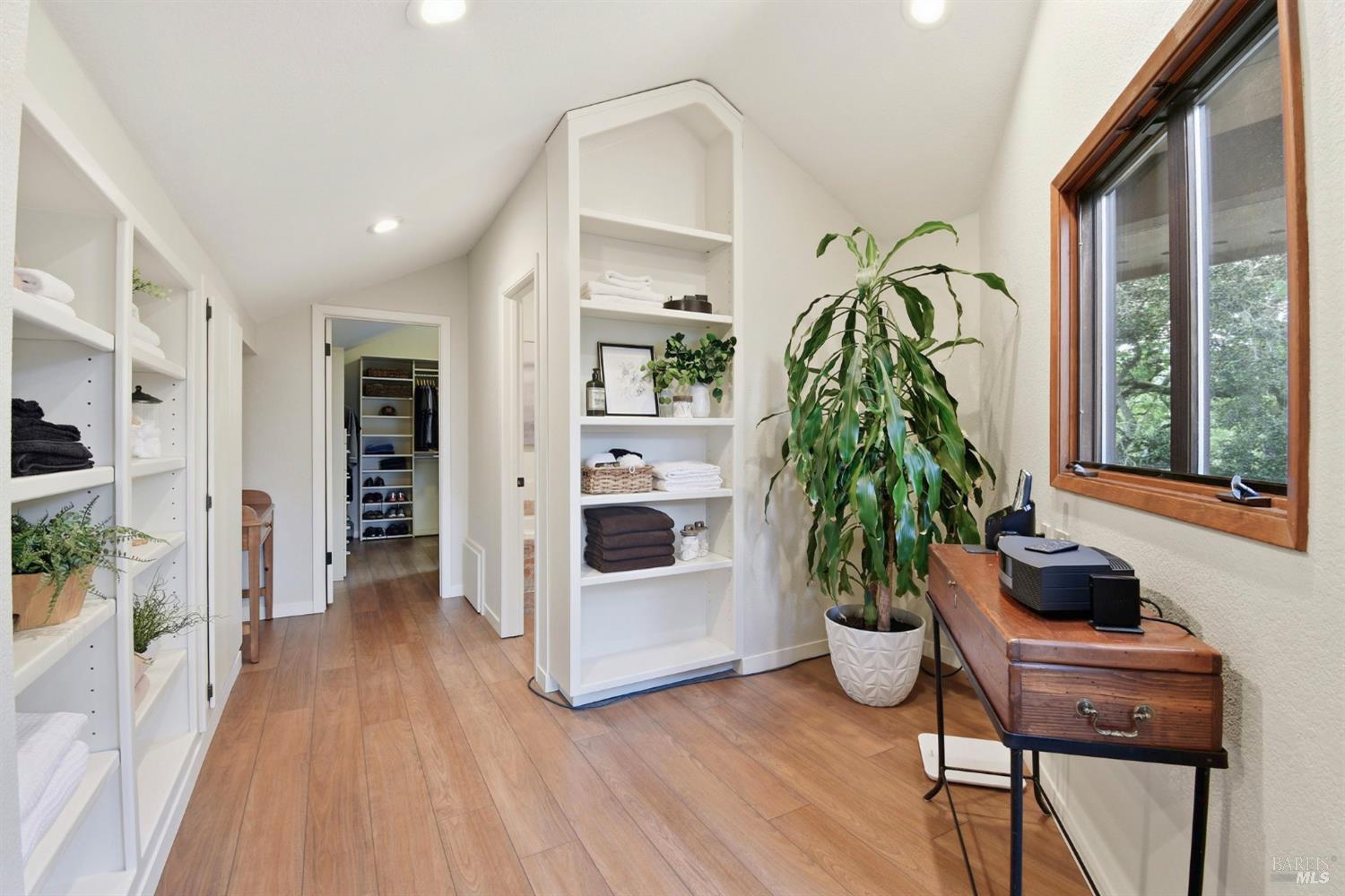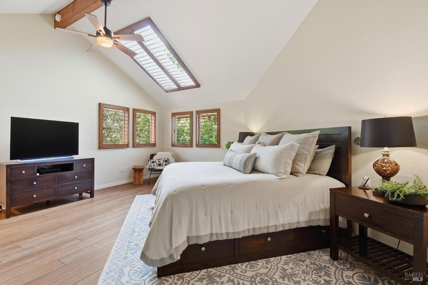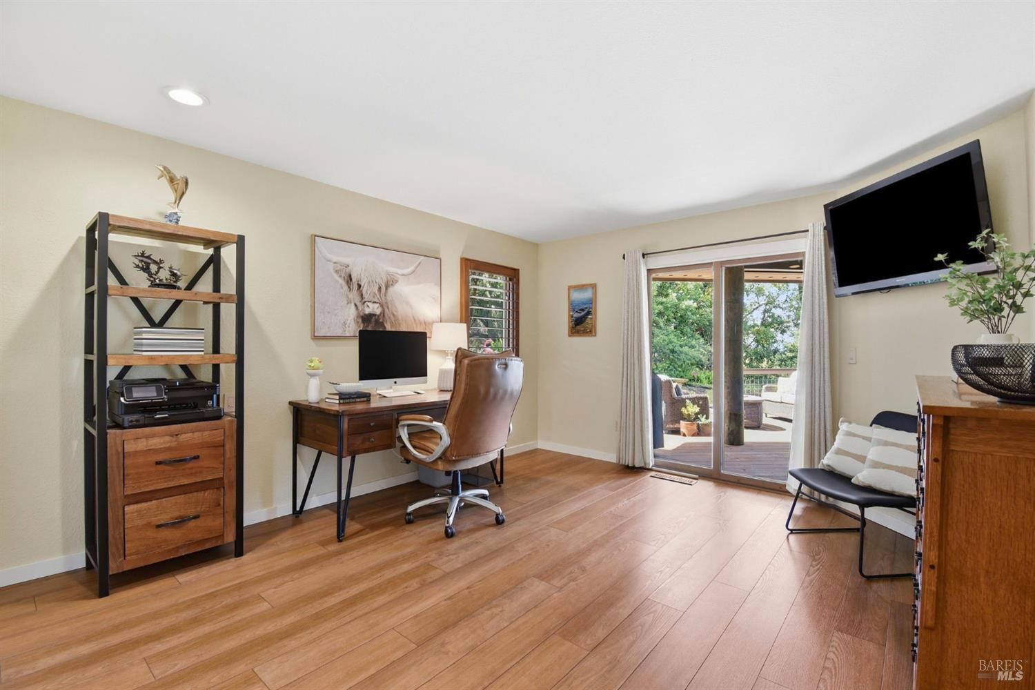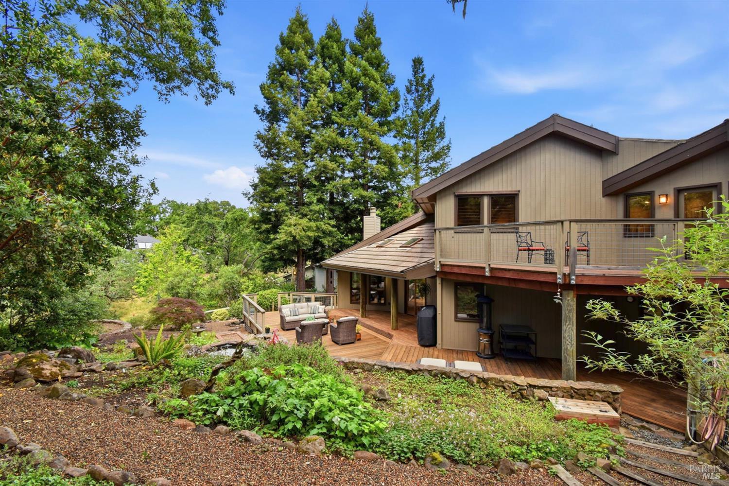 Tucked within the coveted Fairway View Estates, this beautifully crafted residence offers a rare blend of refined comfort and scenic wine country living. Inspired by the charm of a Tahoe retreat, the home features dramatic wood ceilings and an open, airy layout that lives like single-level. At the heart of the home, the well-appointed kitchen impresses with granite surfaces, premium stainless steel appliances, a 5-burner gas cooktop, convection oven, and abundant pantry storage perfect for both casual meals and entertaining. The private upstairs primary suite feels like a peaceful escape, showcasing stylish flooring and vanity, a spacious custom closet, and a balcony where sweeping views set the tone for quiet mornings or sunset evenings. A graceful curved staircase adds architectural flair, while an adjacent flex space is ideal for a home office. This home features two additional generously sized bedrooms and large windows throughout the home invite in natural light and stunning vistas. Outside, the property truly shines with a tranquil backyard that opens to natural space, complete with a low-maintenance landscape, a calming pond and waterfall, and a view deck made for gathering or unwinding. Thoughtfully maintained with quality features such as wood-framed windows, updated HVAC, tile roof, and a spacious laundry room with built-ins, this home is as practical as it is beautiful. With ample space for a pool or possible ADU, this is a rare opportunity to own a slice of wine country paradise in a prime location close to outdoor recreation, golf, and everyday conveniences.