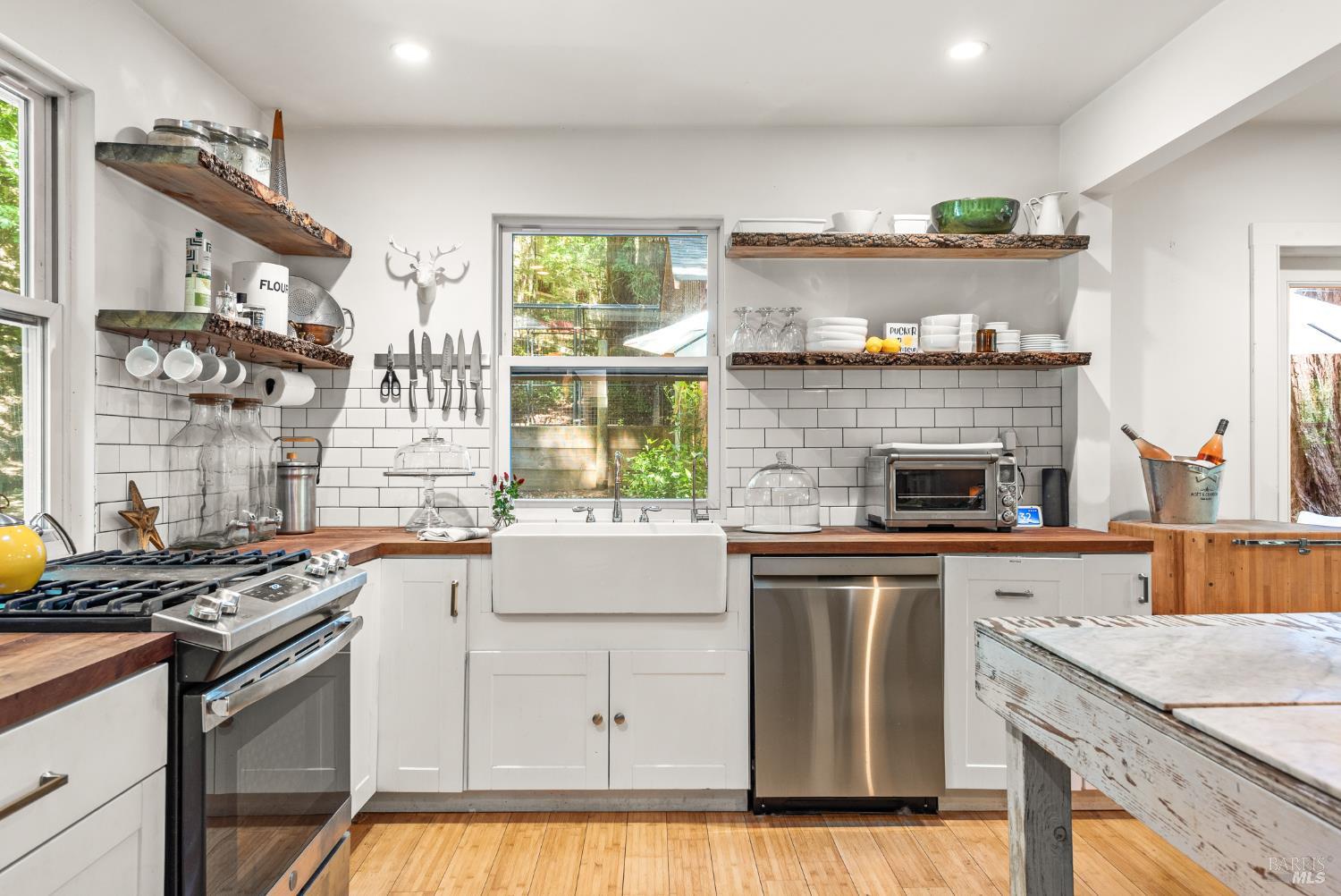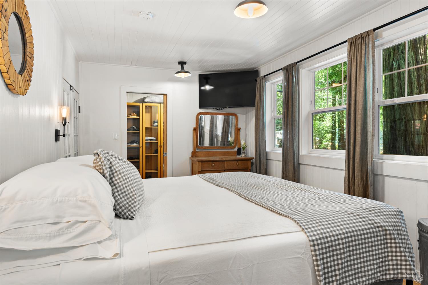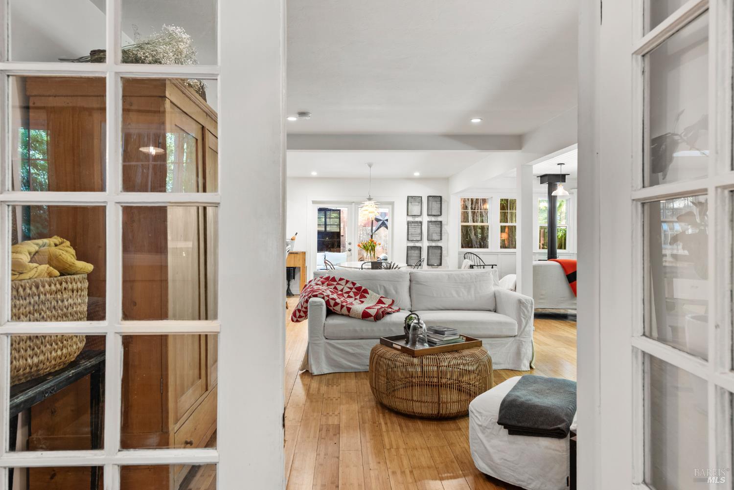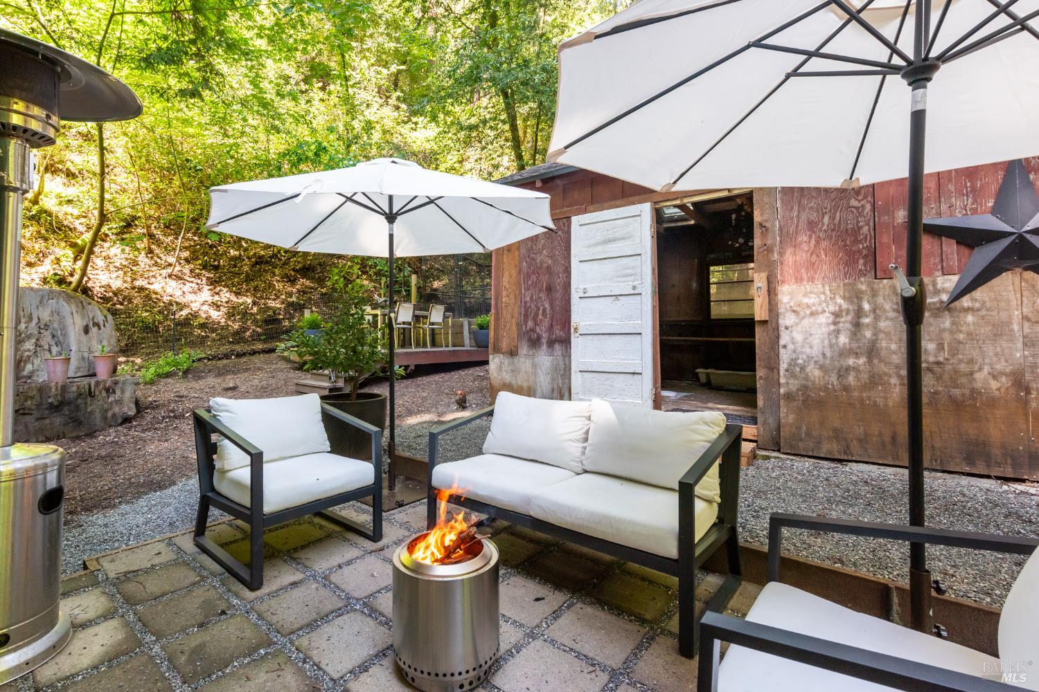 Meet the Grand Dame of Rio Nido - a home with stories to tell. Decades ago, performers from the Rio Nido Roadhouse would wander over after their sets, Jack Benny included. Today, the home has been beautifully refreshed, yet every bit of the original charm still shines through. Life here is peaceful. Step outside and the first thing you'll notice is the quiet, broken only by birds in the trees. Inside, the 2-bed, 2-bath layout feels open and inviting, with engineered wood floors, a newly updated primary ensuite with dramatic views of the redwoods, and a modern kitchen with new appliances and updated bathrooms. This home has been lovingly cared for and has a recent HVAC system, wood stove, insulation, and a newer roof. There's also a fully permitted 333 sq. ft. workshop with power, plenty of parking, and even a 16-foot canoe ready for adventure. A 13x16 shed with new roof & skylights is ready for your hobbies & storage needs. Areas for entertaining abound, and privacy is real on this near 1/3 acre parcel! You're connected to public water and sewer and just a short walk from Riverside Park Beach, the Roadhouse, and the community pool. It's history, comfort, and heart all in one place.