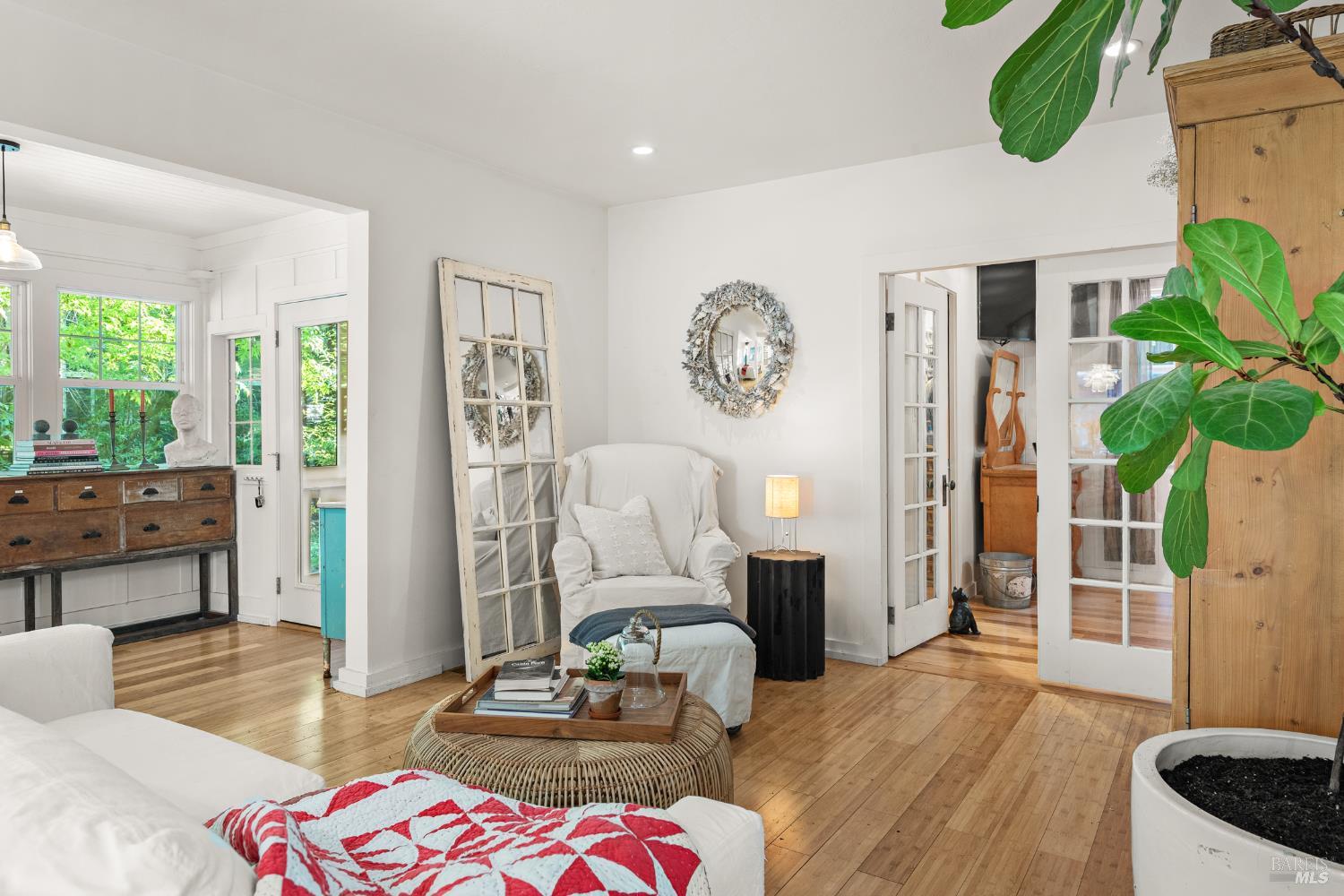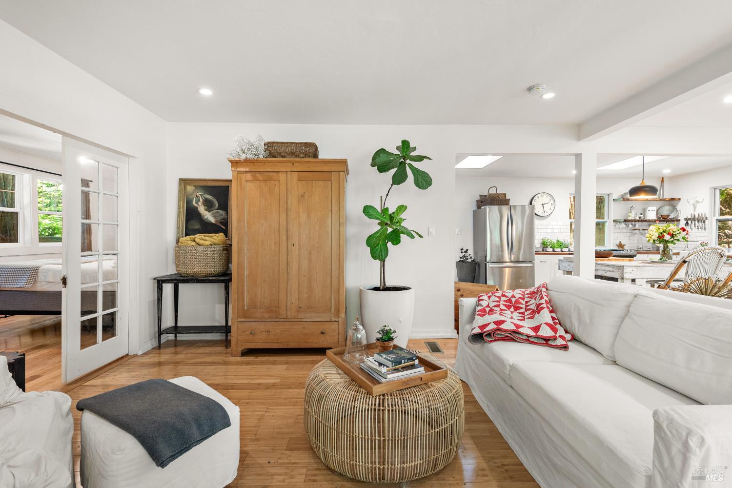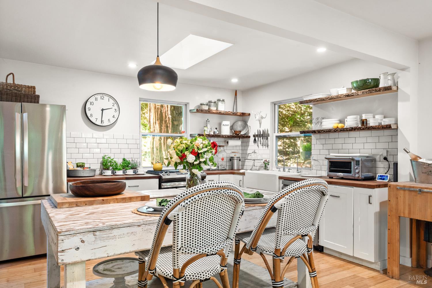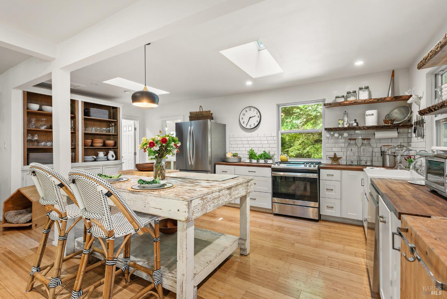 Meet the Grand Dame of Rio Nido - a home with stories to tell. Decades ago, performers from the Rio Nido Roadhouse would wander over after their sets, Jack Benny included. Today, the home has been beautifully refreshed, yet every bit of the original charm still shines through. Life here is peaceful. Step outside and the first thing you'll notice is the quiet, broken only by birds in the trees. Inside, the 2-bed, 2-bath layout feels open and inviting, with engineered wood floors, a newly updated primary ensuite with dramatic views of the redwoods, and a modern kitchen with new appliances and updated bathrooms. This home has been lovingly cared for and has a recent HVAC system, wood stove, insulation, and a newer roof. There's also a fully permitted 333 sq. ft. workshop with power, plenty of parking, and even a 16-foot canoe ready for adventure. A 13x16 shed with new roof & skylights is ready for your hobbies & storage needs. Areas for entertaining abound, and privacy is real on this near 1/3 acre parcel! You're connected to public water and sewer and just a short walk from Riverside Park Beach, the Roadhouse, and the community pool. It's history, comfort, and heart all in one place.