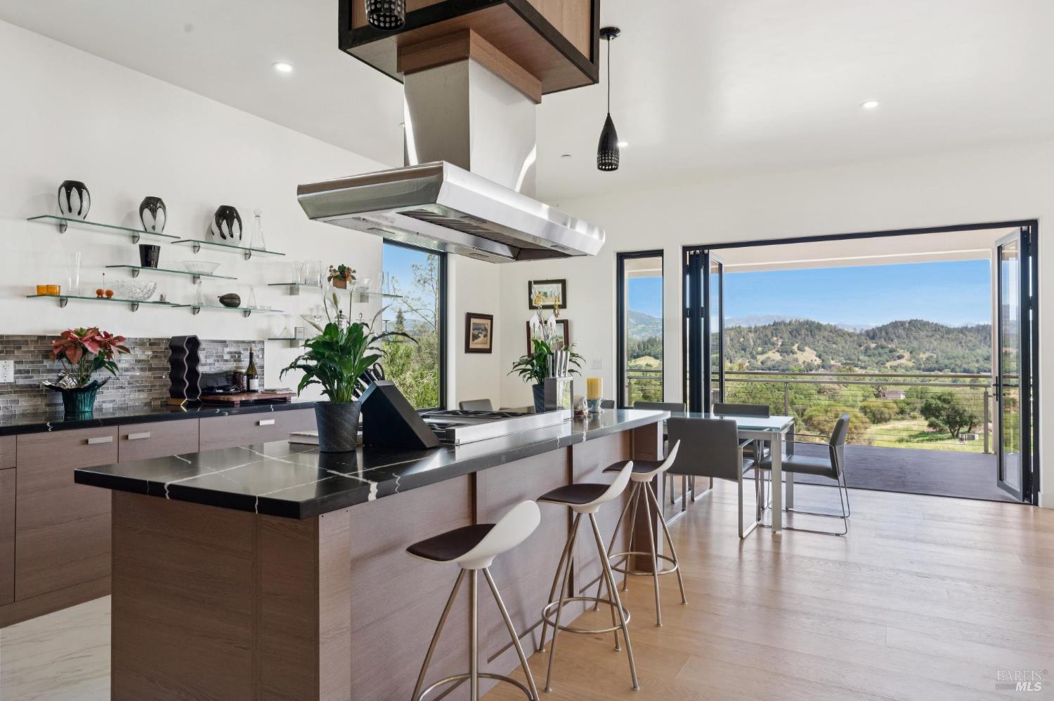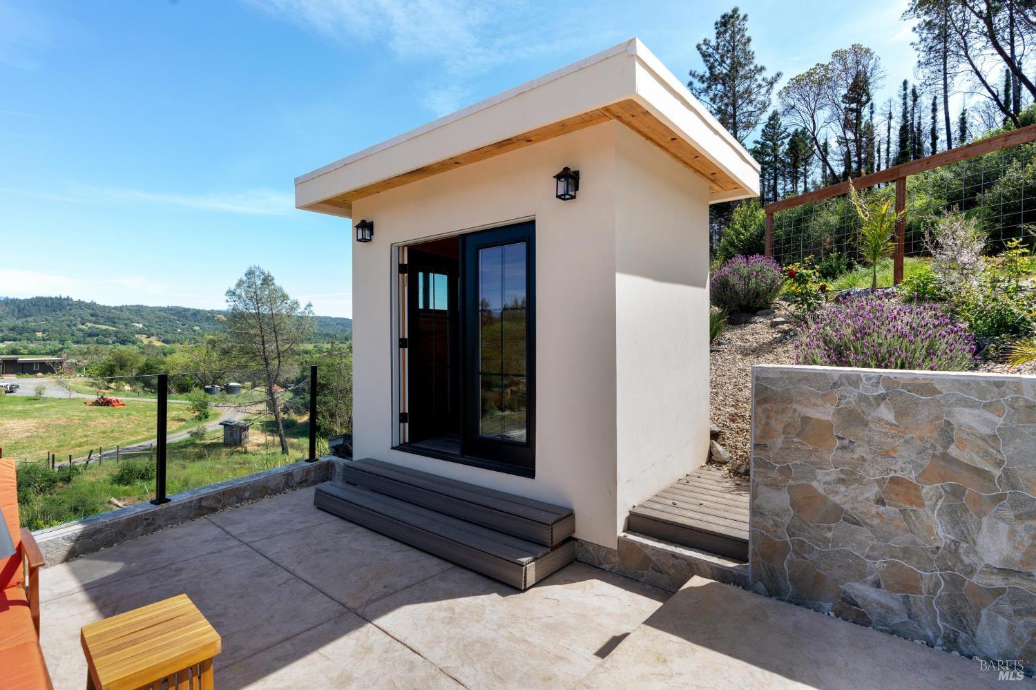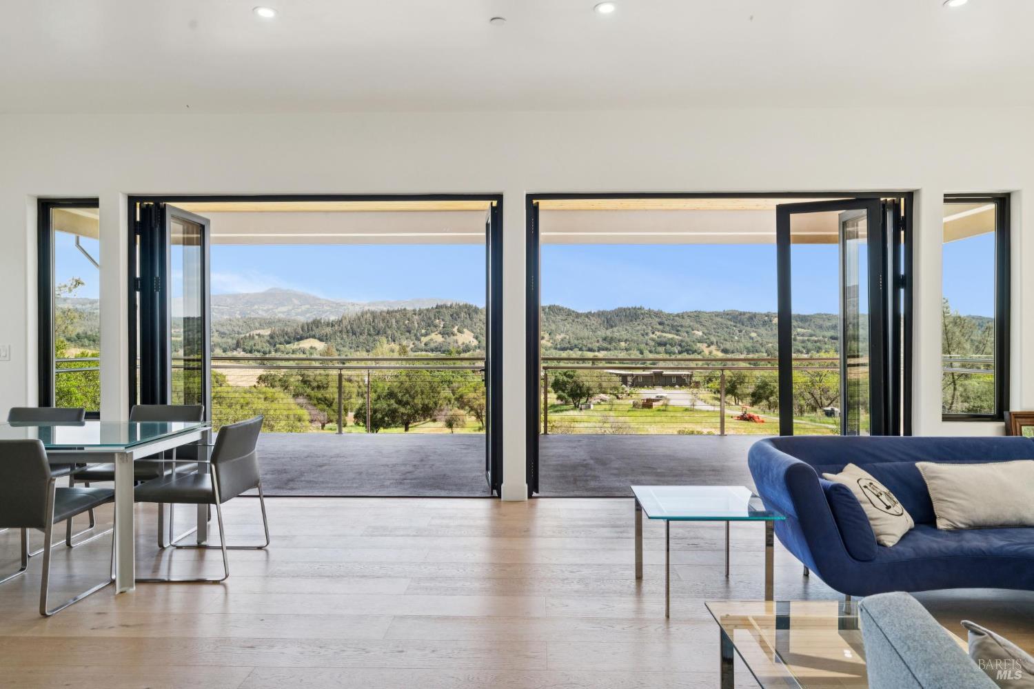 Set on approximately 15 acres in Sonoma County, this newly constructed property offers a rare combination of modern design, usable land, and a versatile multi-residence layout. Thoughtfully planned and designed for both everyday living and entertaining, the property provides a seamless blend of indoor comfort and outdoor lifestyle. The main residence features clean architectural lines, an open-concept floor plan, and abundant natural light throughout. Expansive nano-style doors create a strong indoor-outdoor connection, opening to generous decking and surrounding views. The interior offers a functional layout with well-proportioned living spaces, quality finishes, and a natural flow suited to both quiet living and gatherings. In addition to the main home, a fully detached two-bedroom, two-bath residence provides flexibility for guests, extended living, or potential income opportunities (buyer to verify). Positioned separately from the main home, it offers privacy along with its own outdoor areas. The grounds are designed to take full advantage of the acreage, with a balance of open space and curated landscaping. A newly constructed approximately 1,500 square foot barn adds utility for a variety of uses. The property also includes a small hobby vineyard and established gardens with pathways, mature plantings, and seasonal color. Outdoor amenities are a central feature of the property, including a pool, sauna, and multiple areas for seating and entertaining. A well-equipped outdoor kitchen and dining area provide an ideal setting for year-round use, whether hosting or enjoying the surrounding environment. With its combination of new construction, multiple living spaces, and usable acreage, this property presents a unique opportunity to enjoy Sonoma County living with flexibility and privacy, all within a thoughtfully designed setting.