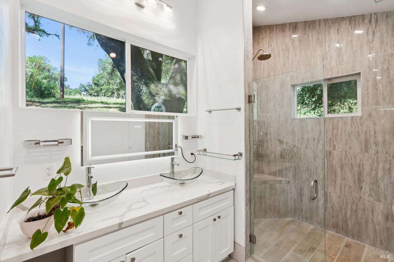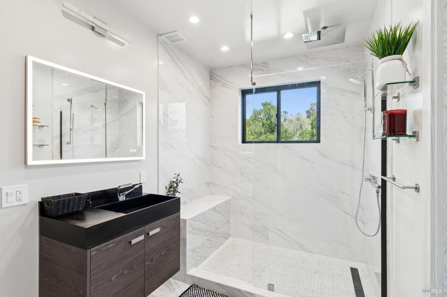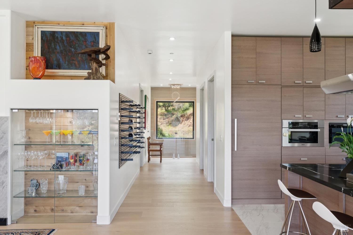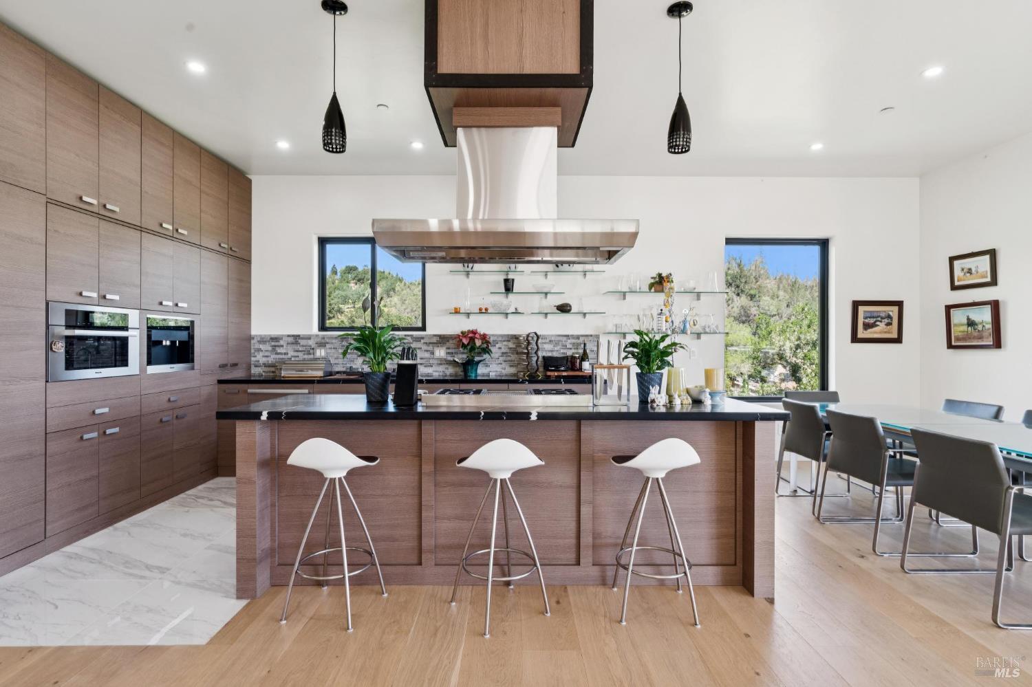 Set on approximately 15 acres in Sonoma County, this newly constructed property offers a rare combination of modern design, usable land, and a versatile multi-residence layout. Thoughtfully planned and designed for both everyday living and entertaining, the property provides a seamless blend of indoor comfort and outdoor lifestyle. The main residence features clean architectural lines, an open-concept floor plan, and abundant natural light throughout. Expansive nano-style doors create a strong indoor-outdoor connection, opening to generous decking and surrounding views. The interior offers a functional layout with well-proportioned living spaces, quality finishes, and a natural flow suited to both quiet living and gatherings. In addition to the main home, a fully detached two-bedroom, two-bath residence provides flexibility for guests, extended living, or potential income opportunities (buyer to verify). Positioned separately from the main home, it offers privacy along with its own outdoor areas. The grounds are designed to take full advantage of the acreage, with a balance of open space and curated landscaping. A newly constructed approximately 1,500 square foot barn adds utility for a variety of uses. The property also includes a small hobby vineyard and established gardens with pathways, mature plantings, and seasonal color. Outdoor amenities are a central feature of the property, including a pool, sauna, and multiple areas for seating and entertaining. A well-equipped outdoor kitchen and dining area provide an ideal setting for year-round use, whether hosting or enjoying the surrounding environment. With its combination of new construction, multiple living spaces, and usable acreage, this property presents a unique opportunity to enjoy Sonoma County living with flexibility and privacy, all within a thoughtfully designed setting.