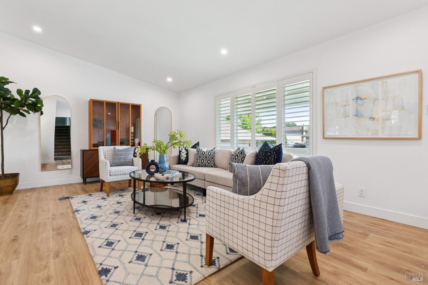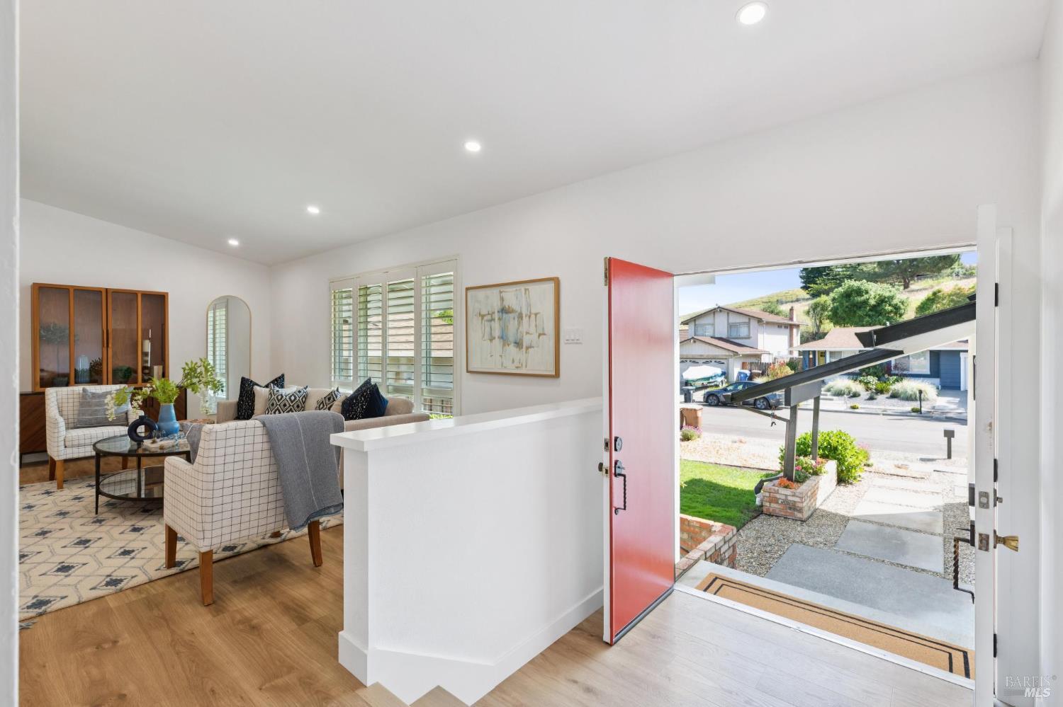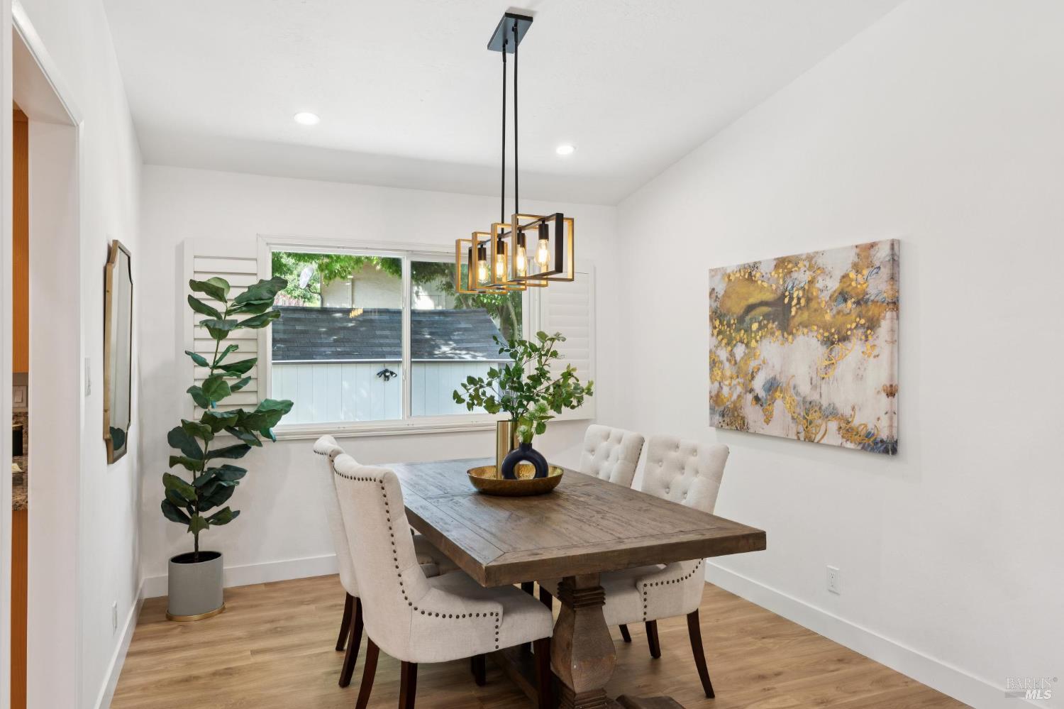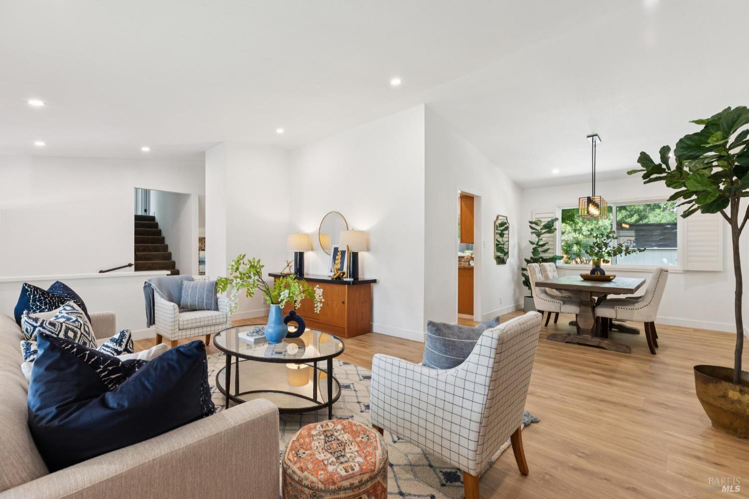 Welcome to this stunning 4-bedroom, 3-bath residence nestled in the highly sought-after Browns Valley neighborhood, where comfort, space, and thoughtful design come together in a beautifully crafted tri-level layout. From the moment you step inside, you're greeted by an inviting formal living room with dramatic cathedral ceilings that fill the space with natural light, creating an airy and elegant first impression. The adjacent formal dining room offers the perfect setting for gatherings, while the separate family room provides a warm and relaxing retreat, complete with a charming wood-burning fireplace insert ideal for cozy evenings at home. Rich, newly installed wood flooring flows seamlessly throughout the home, enhancing its modern appeal while maintaining a sense of warmth and continuity. The kitchen is perfectly positioned to overlook the backyard, making it easy to stay connected whether entertaining guests or enjoying everyday moments. Designed for both comfort and efficiency, the home features central air conditioning and solar battery back up, offering year-round climate control with energy savings in mind. Step outside to discover a private, fully fenced backyard designed for both relaxation and enjoyment. A covered patio creates the perfect space for outdoor dining or lounging, while the spacious lawn invites play and leisure. Mature fruit trees including lemon, persimmon, and orange add charm and provide seasonal harvests right at your fingertips. Adding even more versatility, the updated detached shed offers an ideal space for a home office, fitness studio, or creative work space perfect for today's flexible lifestyle needs. The attached two-car garage is equally impressive, featuring a durable epoxy floor that adds both function and a polished finish. This exceptional home offers a rare combination of style, comfort, and practical living in one of Browns Valley's most desirable settings ready to welcome you home.