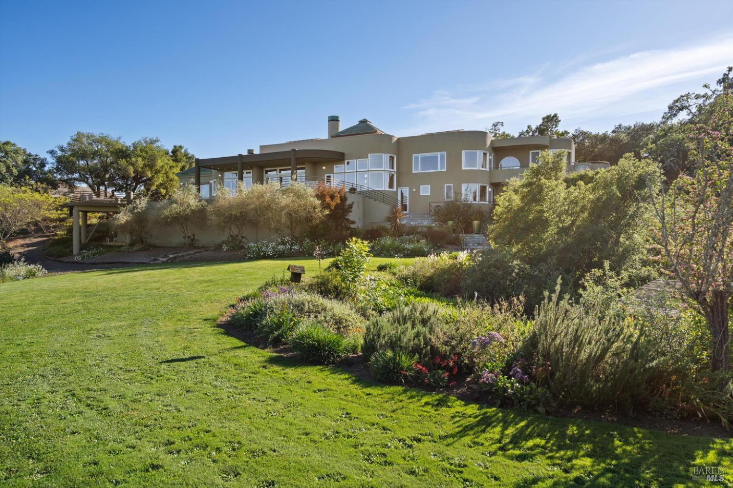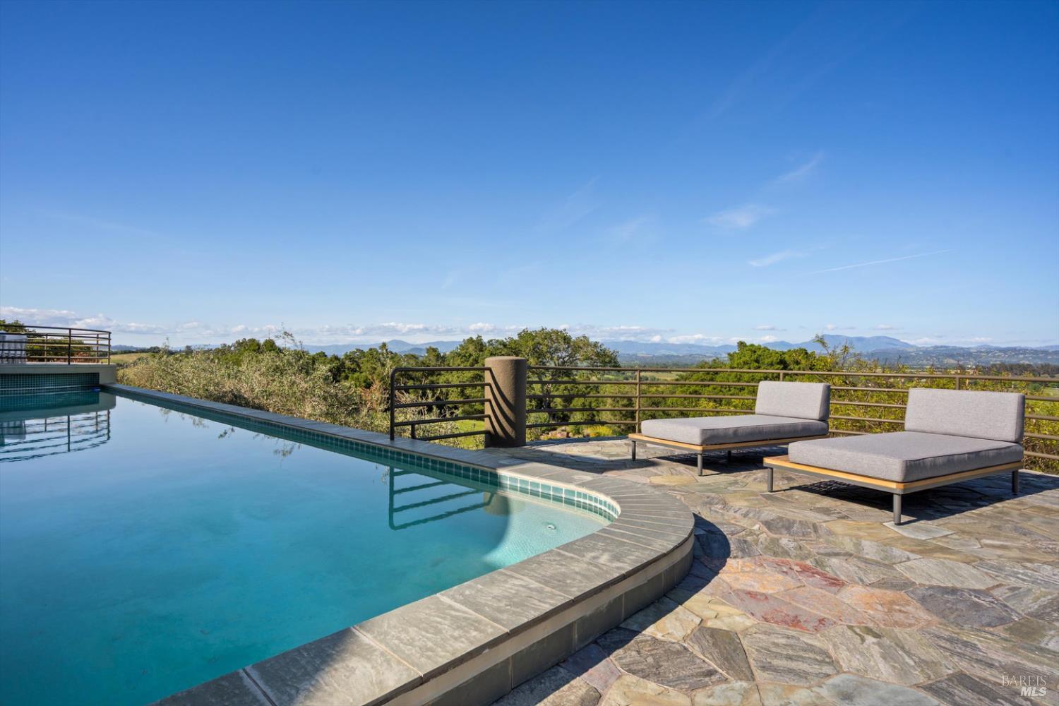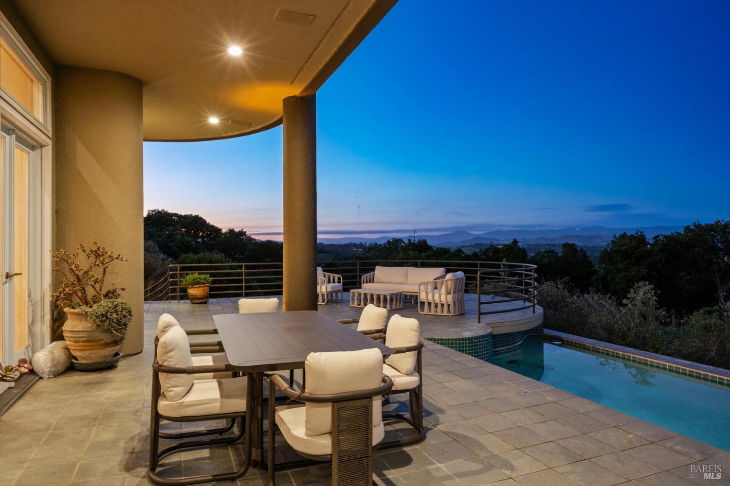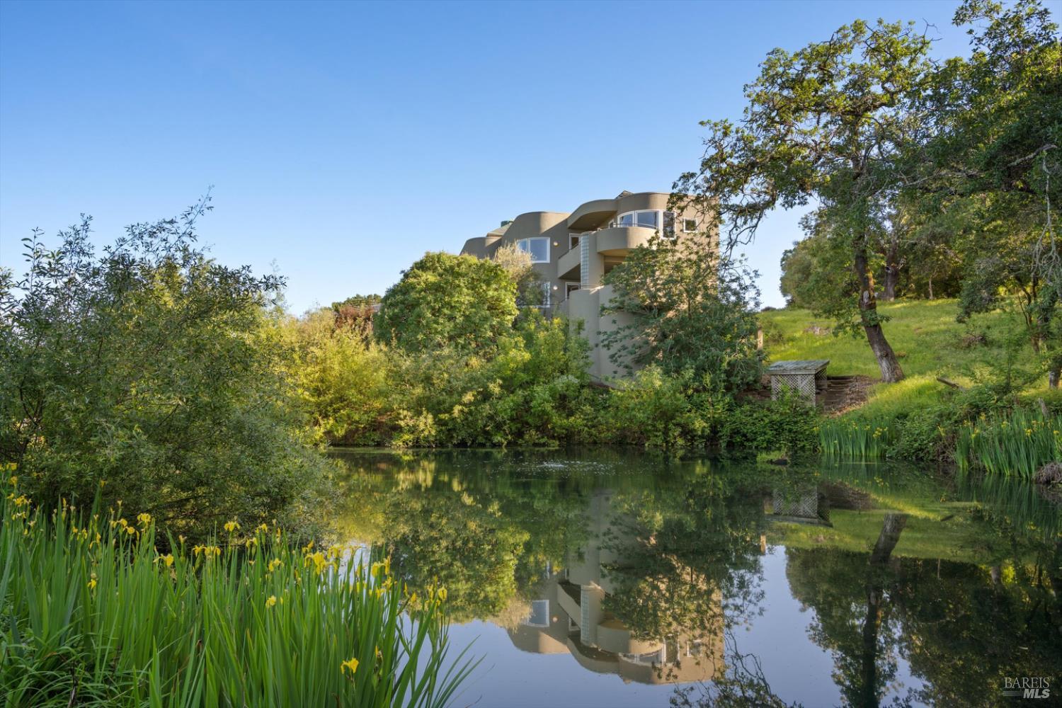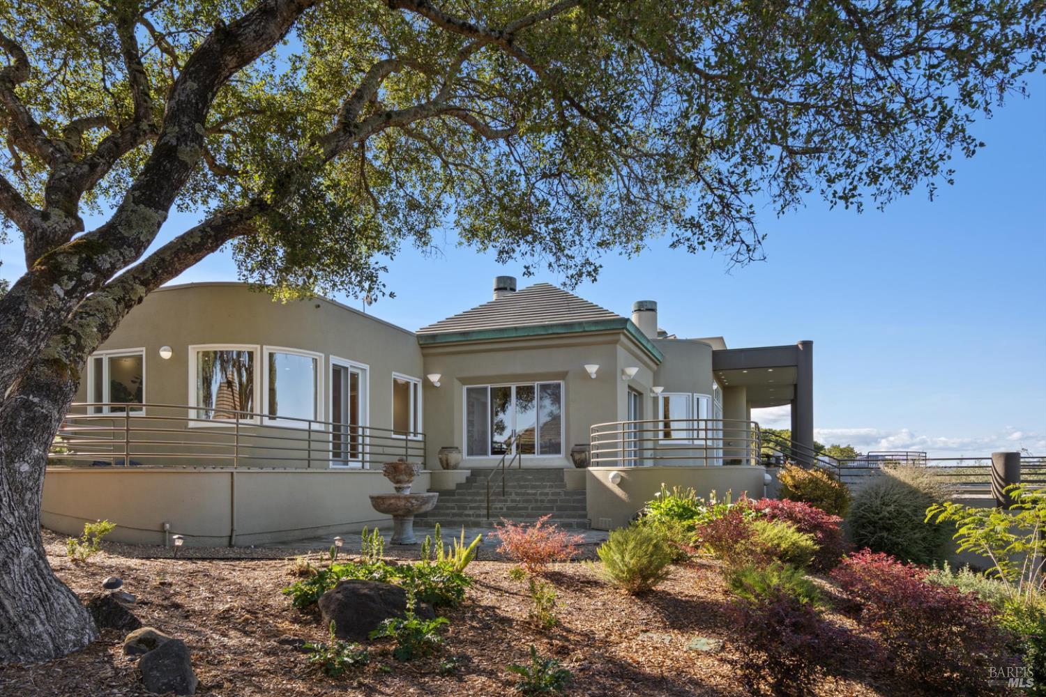 Set behind gates on approximately 26 acres in Northwest Santa Rosa, this private estate unfolds with a sense of scale, serenity, and sweeping beauty that's rare to find so close to town. From its elevated vantage point, panoramic views stretch across Sonoma County, from Geyserville to Rohnert Park, creating a constantly shifting backdrop of vineyards, hills, and open sky. The main residence spans approximately 5,500 square feet, designed to embrace both grand entertaining and relaxed everyday living. Walls of glass, soaring ceilings, and multiple view-facing decks draw the outdoors in, while the home's layout offers flexibility with multiple living spaces, two primary suites, and a dedicated office ideal for working remotely or hosting extended stays. The experience here is centered around lifestyle. Mornings begin with coffee, overlooking rolling hills, afternoons are spent poolside under the Sonoma sun, and evenings transition effortlessly to the spa, sauna, or fireside gatherings. Tucked into the landscape, a private pond offers a quiet, unexpected escape, perfect for a slow paddle, peaceful reflection, or simply unwinding at the water's edge. Whether hosting intimate dinners or larger celebrations, the setting feels both impressive and deeply comfortable. Beyond the main residence, a separate approximately 1,056 sq. ft. home provides additional versatility, ideal for guests, multigenerational living, or income potential. The land itself is equally compelling, gated, private, and thoughtfully maintained, with a sense of openness that allows for a variety of uses, from recreation to agricultural pursuits. Sustainable features, including an extensive solar system, complement the property's long-term livability. Just minutes from Santa Rosa and the airport, yet feeling worlds away, this is a property that delivers both convenience and complete escape, an opportunity to live expansively in the heart of Sonoma County.