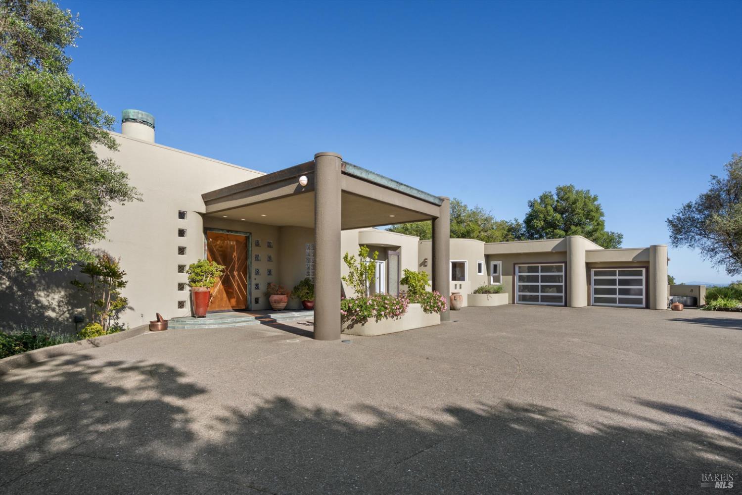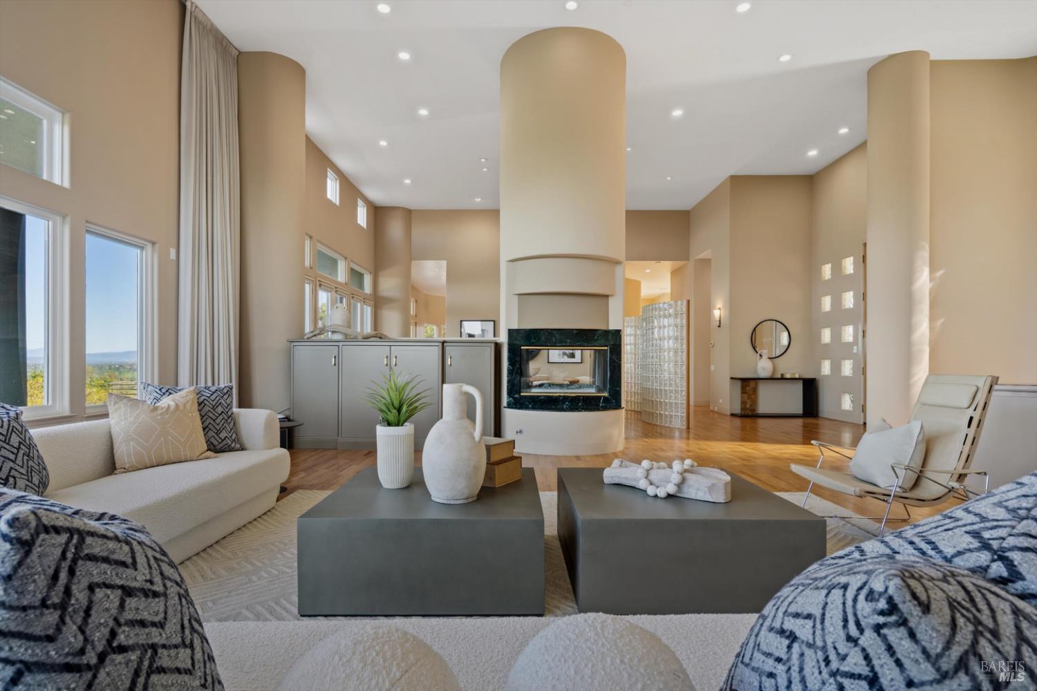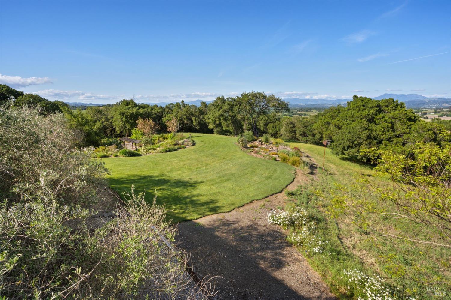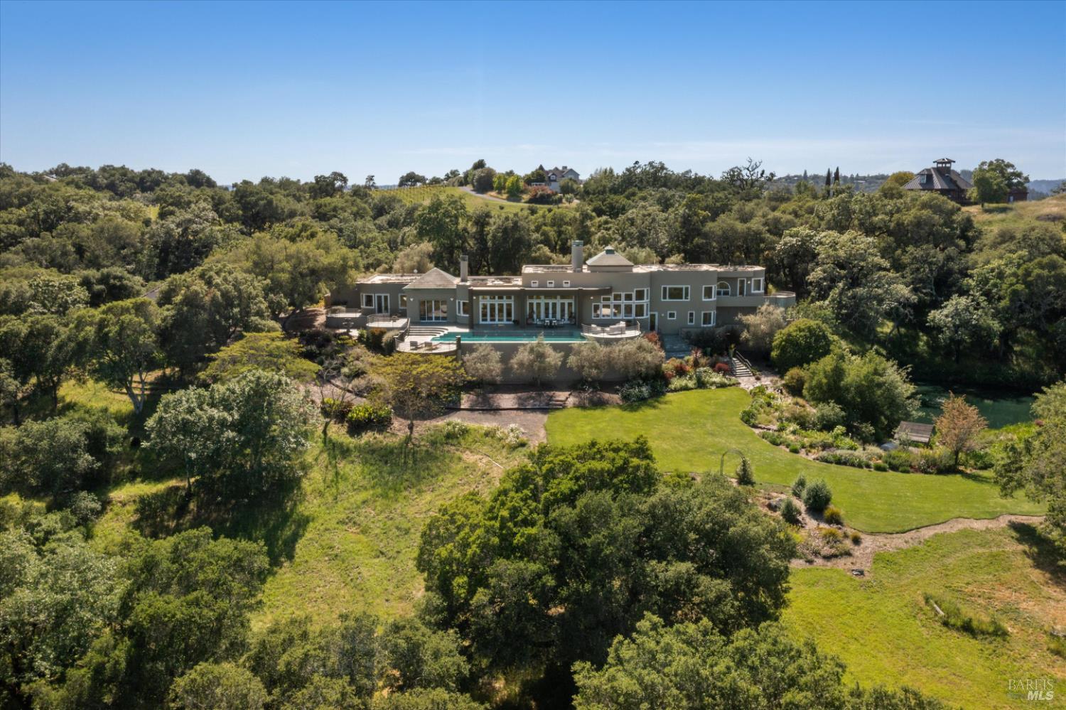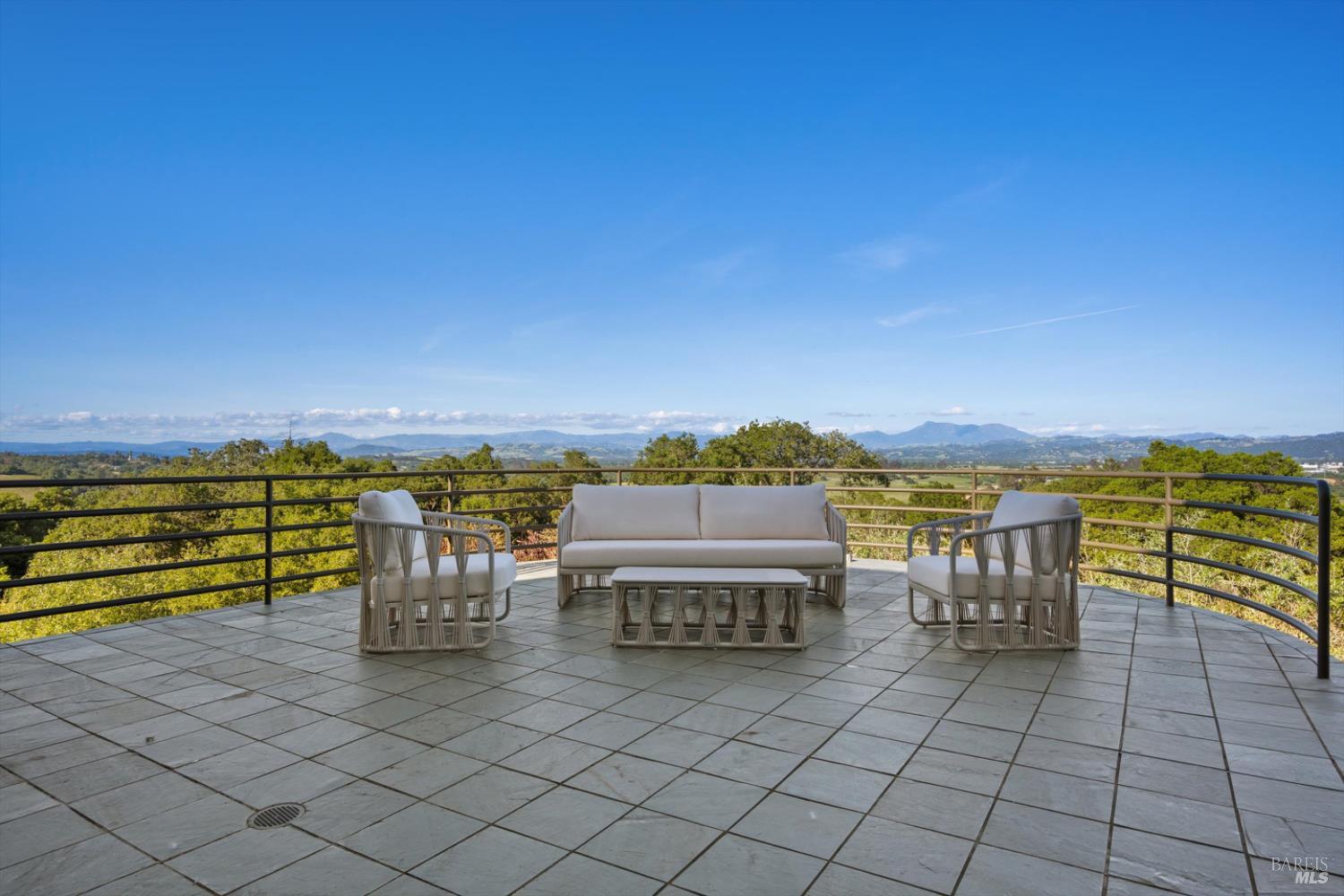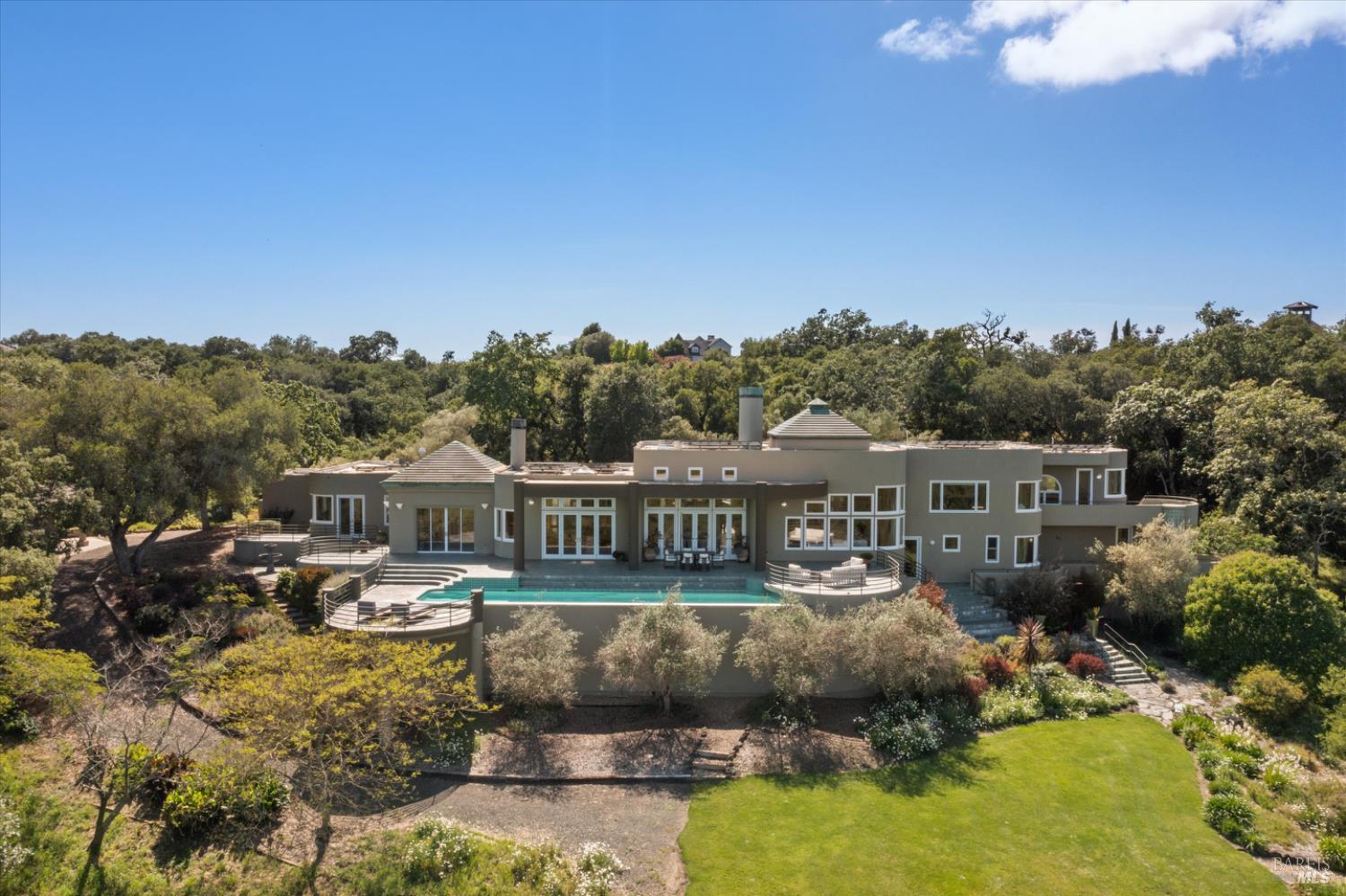 Set behind gates on approximately 26 acres in Northwest Santa Rosa, this private estate unfolds with a sense of scale, serenity, and sweeping beauty that's rare to find so close to town. From its elevated vantage point, panoramic views stretch across Sonoma County, from Geyserville to Rohnert Park, creating a constantly shifting backdrop of vineyards, hills, and open sky. The main residence spans approximately 5,500 square feet, designed to embrace both grand entertaining and relaxed everyday living. Walls of glass, soaring ceilings, and multiple view-facing decks draw the outdoors in, while the home's layout offers flexibility with multiple living spaces, two primary suites, and a dedicated office ideal for working remotely or hosting extended stays. The experience here is centered around lifestyle. Mornings begin with coffee, overlooking rolling hills, afternoons are spent poolside under the Sonoma sun, and evenings transition effortlessly to the spa, sauna, or fireside gatherings. Tucked into the landscape, a private pond offers a quiet, unexpected escape, perfect for a slow paddle, peaceful reflection, or simply unwinding at the water's edge. Whether hosting intimate dinners or larger celebrations, the setting feels both impressive and deeply comfortable. Beyond the main residence, a separate approximately 1,056 sq. ft. home provides additional versatility, ideal for guests, multigenerational living, or income potential. The land itself is equally compelling, gated, private, and thoughtfully maintained, with a sense of openness that allows for a variety of uses, from recreation to agricultural pursuits. Sustainable features, including an extensive solar system, complement the property's long-term livability. Just minutes from Santa Rosa and the airport, yet feeling worlds away, this is a property that delivers both convenience and complete escape, an opportunity to live expansively in the heart of Sonoma County.