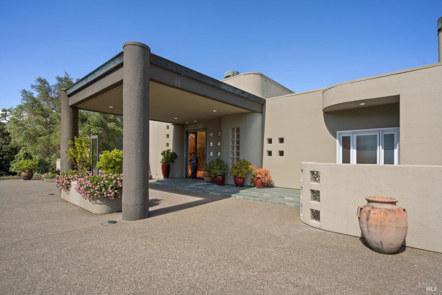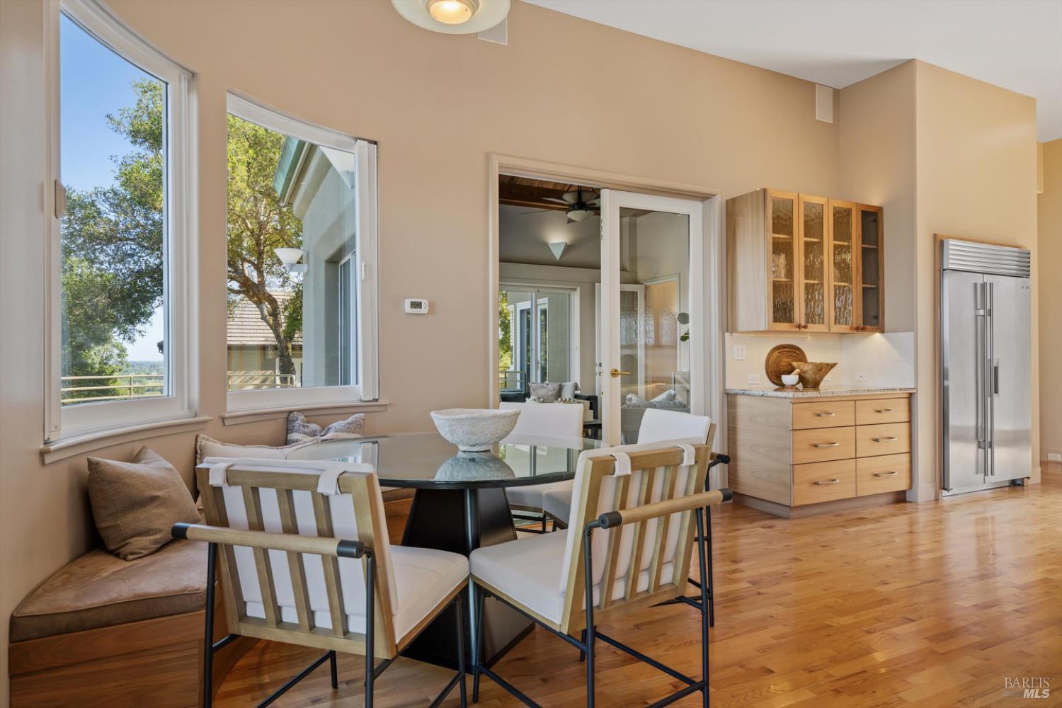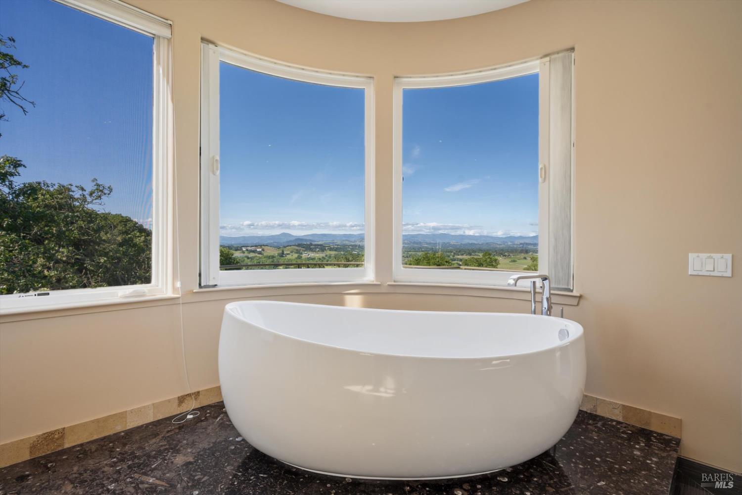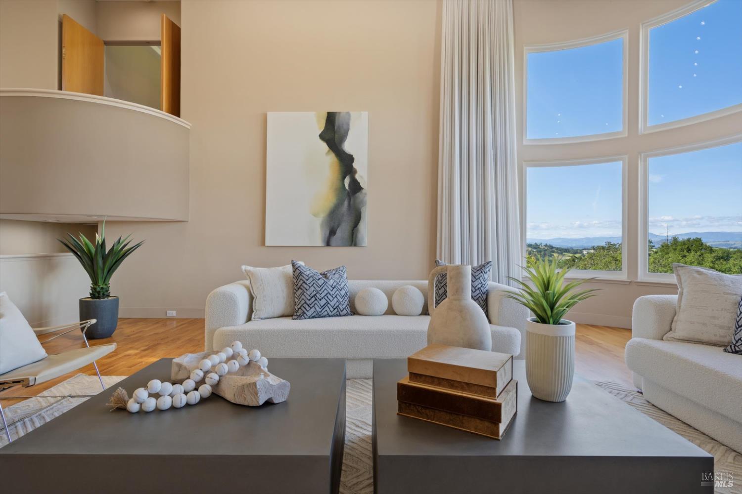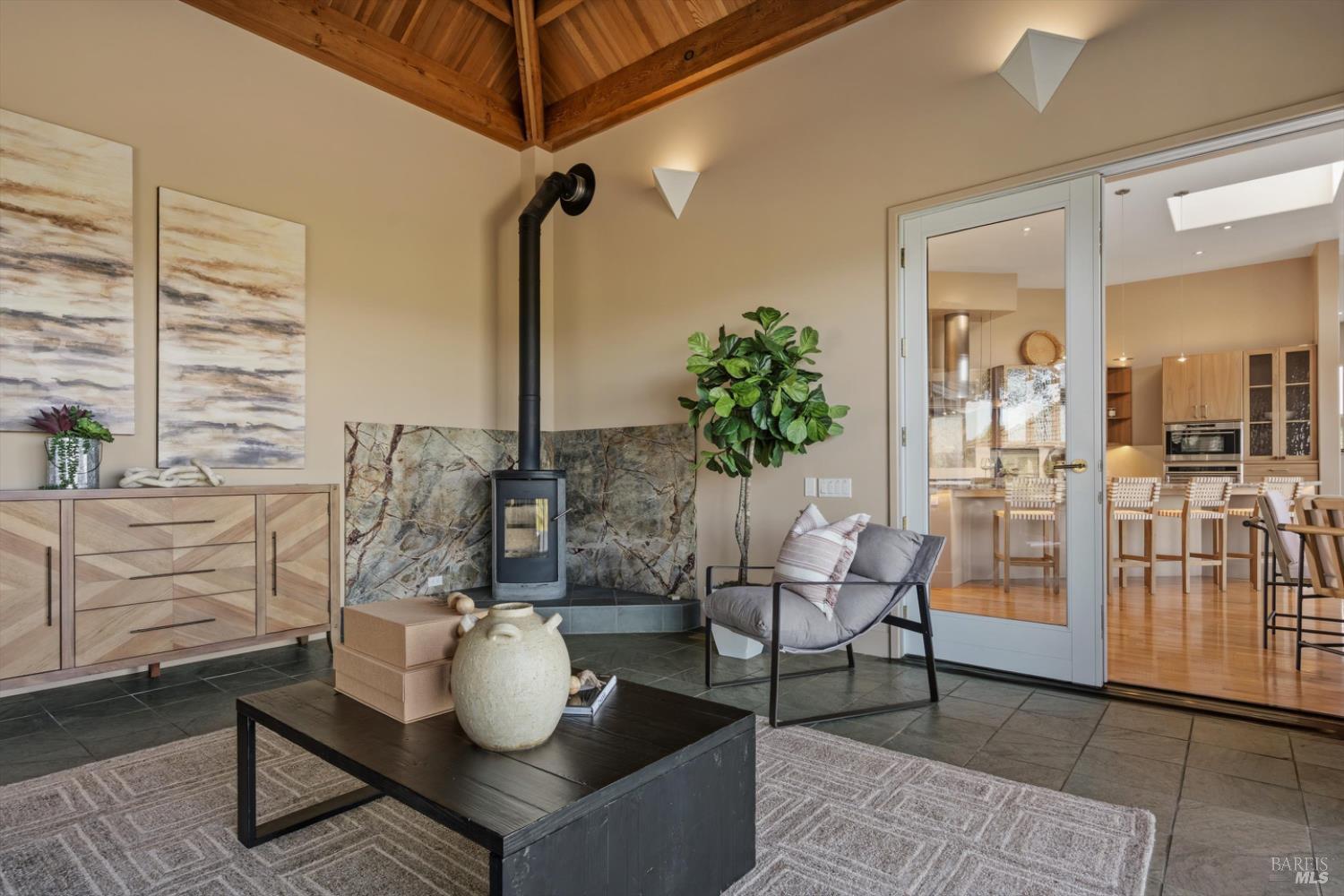 Set behind gates on approximately 26 acres in Northwest Santa Rosa, this private estate unfolds with a sense of scale, serenity, and sweeping beauty that's rare to find so close to town. From its elevated vantage point, panoramic views stretch across Sonoma County, from Geyserville to Rohnert Park, creating a constantly shifting backdrop of vineyards, hills, and open sky. The main residence spans approximately 5,500 square feet, designed to embrace both grand entertaining and relaxed everyday living. Walls of glass, soaring ceilings, and multiple view-facing decks draw the outdoors in, while the home's layout offers flexibility with multiple living spaces, two primary suites, and a dedicated office ideal for working remotely or hosting extended stays. The experience here is centered around lifestyle. Mornings begin with coffee, overlooking rolling hills, afternoons are spent poolside under the Sonoma sun, and evenings transition effortlessly to the spa, sauna, or fireside gatherings. Tucked into the landscape, a private pond offers a quiet, unexpected escape, perfect for a slow paddle, peaceful reflection, or simply unwinding at the water's edge. Whether hosting intimate dinners or larger celebrations, the setting feels both impressive and deeply comfortable. Beyond the main residence, a separate approximately 1,056 sq. ft. home provides additional versatility, ideal for guests, multigenerational living, or income potential. The land itself is equally compelling, gated, private, and thoughtfully maintained, with a sense of openness that allows for a variety of uses, from recreation to agricultural pursuits. Sustainable features, including an extensive solar system, complement the property's long-term livability. Just minutes from Santa Rosa and the airport, yet feeling worlds away, this is a property that delivers both convenience and complete escape, an opportunity to live expansively in the heart of Sonoma County.