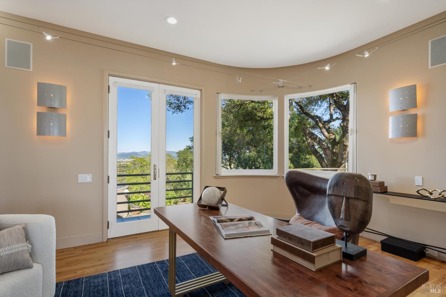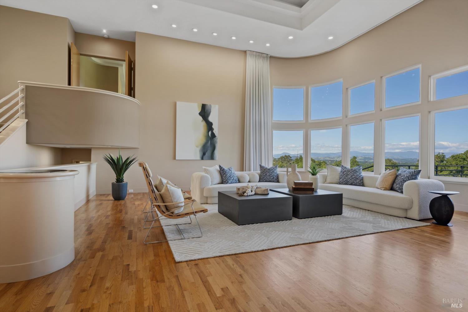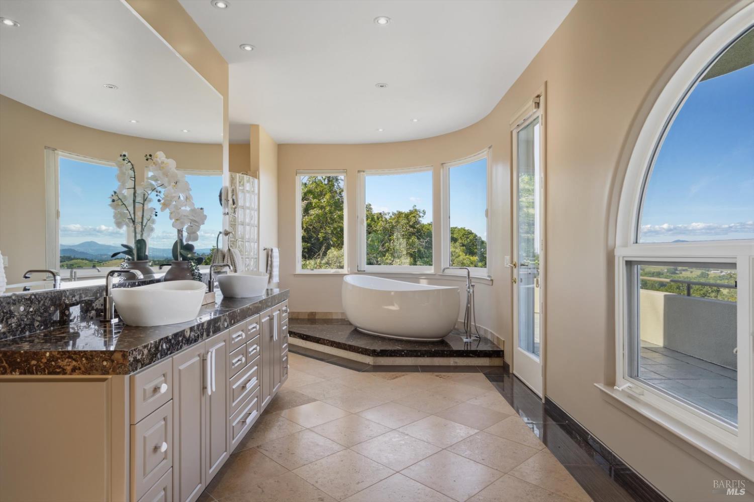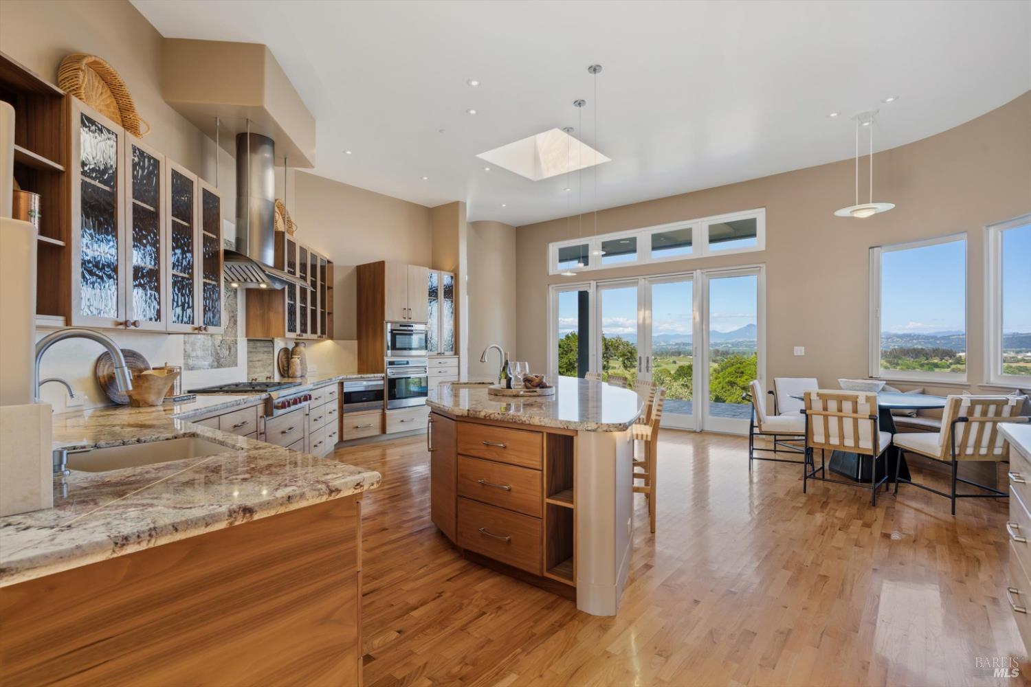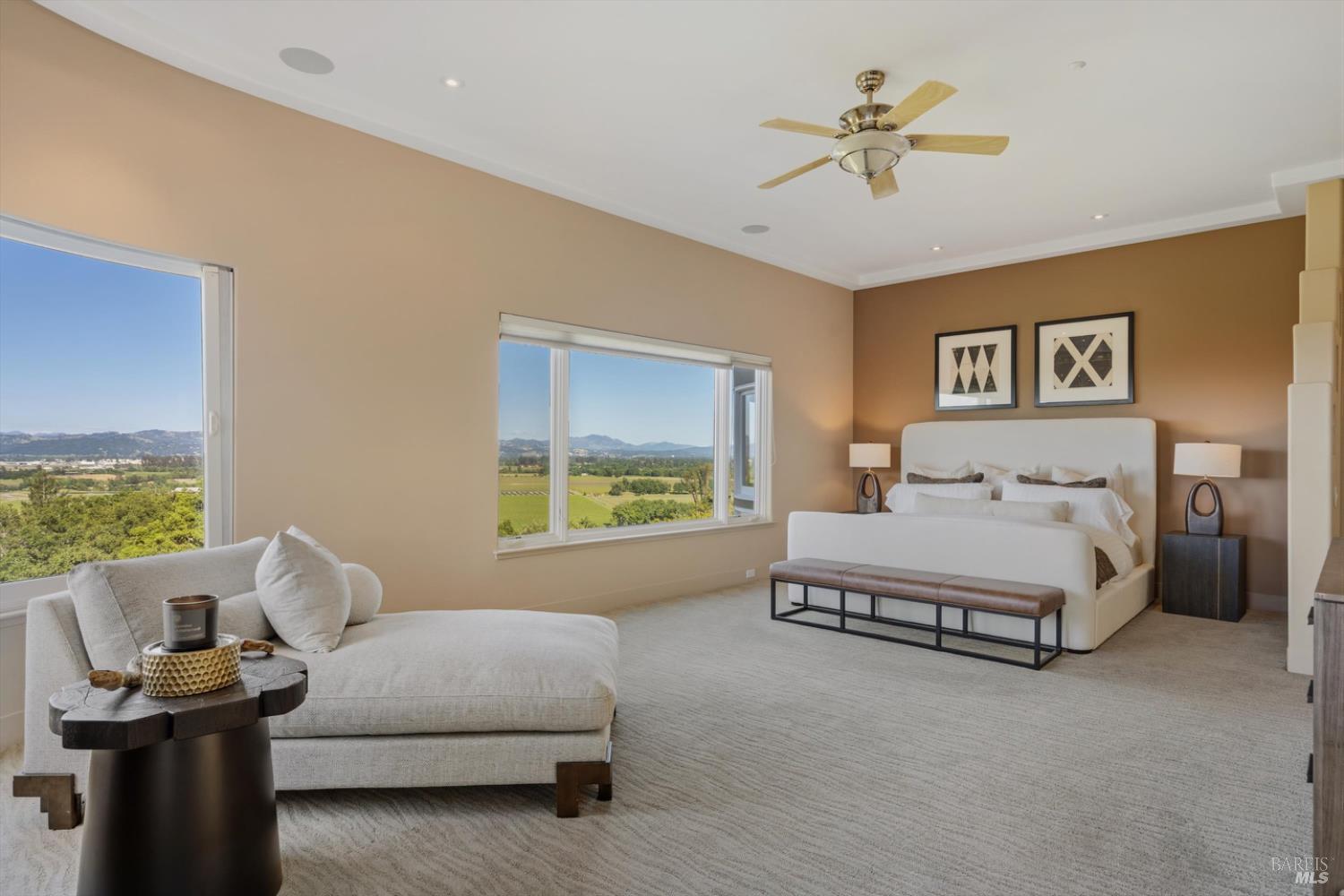 Set behind gates on approximately 26 acres in Northwest Santa Rosa, this private estate unfolds with a sense of scale, serenity, and sweeping beauty that's rare to find so close to town. From its elevated vantage point, panoramic views stretch across Sonoma County, from Geyserville to Rohnert Park, creating a constantly shifting backdrop of vineyards, hills, and open sky. The main residence spans approximately 5,500 square feet, designed to embrace both grand entertaining and relaxed everyday living. Walls of glass, soaring ceilings, and multiple view-facing decks draw the outdoors in, while the home's layout offers flexibility with multiple living spaces, two primary suites, and a dedicated office ideal for working remotely or hosting extended stays. The experience here is centered around lifestyle. Mornings begin with coffee, overlooking rolling hills, afternoons are spent poolside under the Sonoma sun, and evenings transition effortlessly to the spa, sauna, or fireside gatherings. Tucked into the landscape, a private pond offers a quiet, unexpected escape, perfect for a slow paddle, peaceful reflection, or simply unwinding at the water's edge. Whether hosting intimate dinners or larger celebrations, the setting feels both impressive and deeply comfortable. Beyond the main residence, a separate approximately 1,056 sq. ft. home provides additional versatility, ideal for guests, multigenerational living, or income potential. The land itself is equally compelling, gated, private, and thoughtfully maintained, with a sense of openness that allows for a variety of uses, from recreation to agricultural pursuits. Sustainable features, including an extensive solar system, complement the property's long-term livability. Just minutes from Santa Rosa and the airport, yet feeling worlds away, this is a property that delivers both convenience and complete escape, an opportunity to live expansively in the heart of Sonoma County.