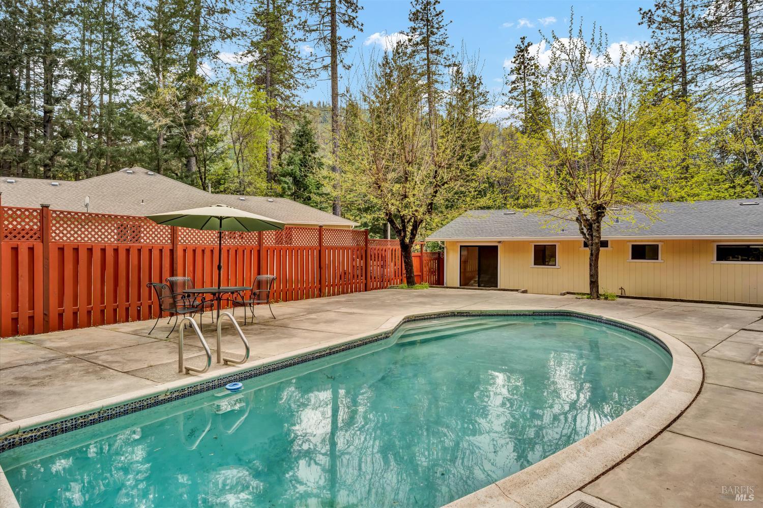 Welcome home to your own mountain escape in the desirable Cobb Estates neighborhood. Equipped with a private, heated in-ground pool, you can escape the Summer heat in your own backyard. Recently remodeled, this 3-bed/2-bath home comes with a NEW ROOF and gutters (both 2025) on the main home and the 2-car detached garage. At the heart of the home is a recently remodeled U-shaped kitchen with corian countertops, subway tile backsplash, and stone flooring. Laminate wood floors combine the dining/living rooms & all bedrooms creating a desirable cohesiveness throughout. The primary en suite includes a generously sized closet and primary bath has a large soaking tub set upon marble floors. Off the hallway are the washer/dryer hookups and guest bath with a shower/tub combo and tile floors. Located in the perfect location on Boggs Mountain near Pine Grove Resort, Hardester's Market, a variety of restaurants and only a minute drive from HWY 175. The Cobb Estates community is also a proud Nationally Recognized Participating Firewise Site. Schedule your tour today of 10005 Meadow Drive and fall in love with this beautiful home.