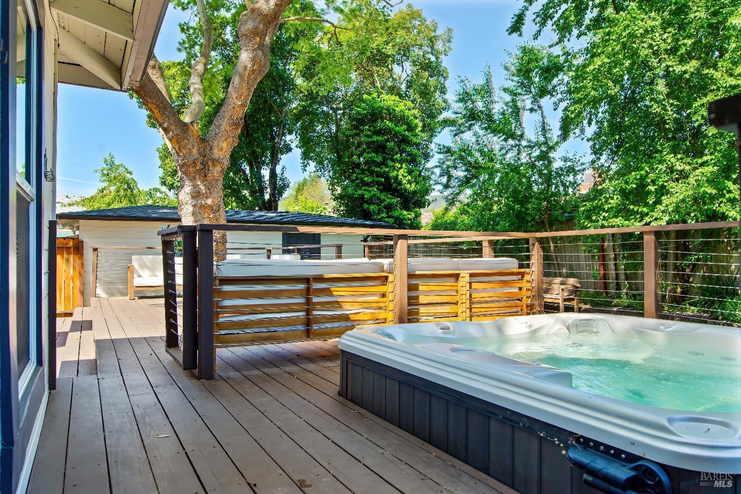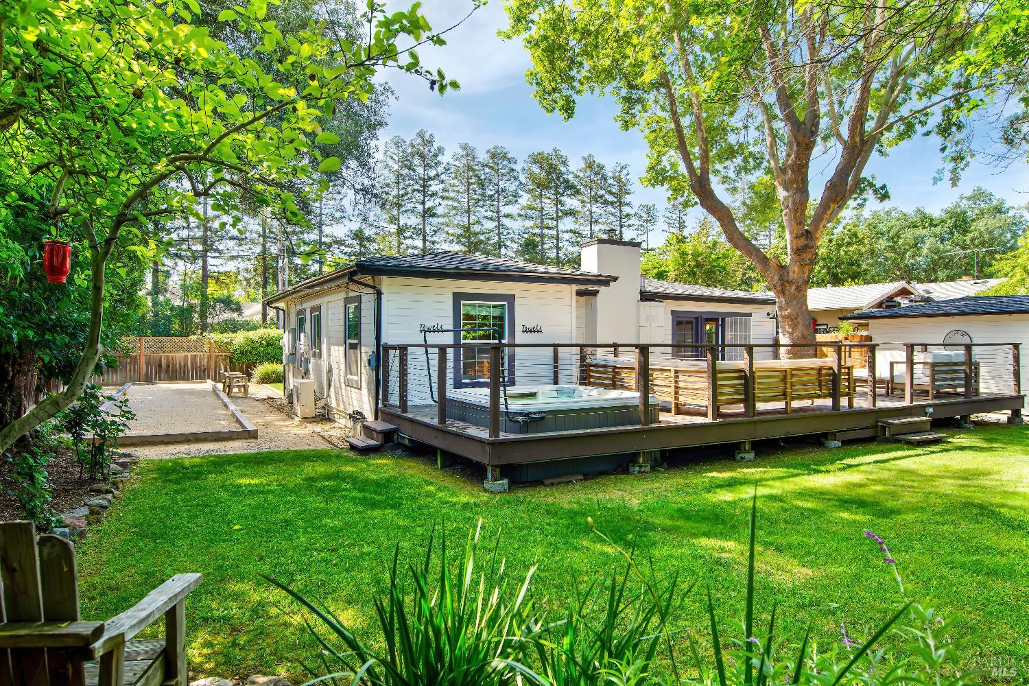 Charming Cottage Property with wonderful private outdoor spaces - fun beautiful deck with Tree and Hot Tub, Bocce Ball area, New Electric Panel, New Roof, Solar, New Mini Split Heat and Air Conditioning Systems.