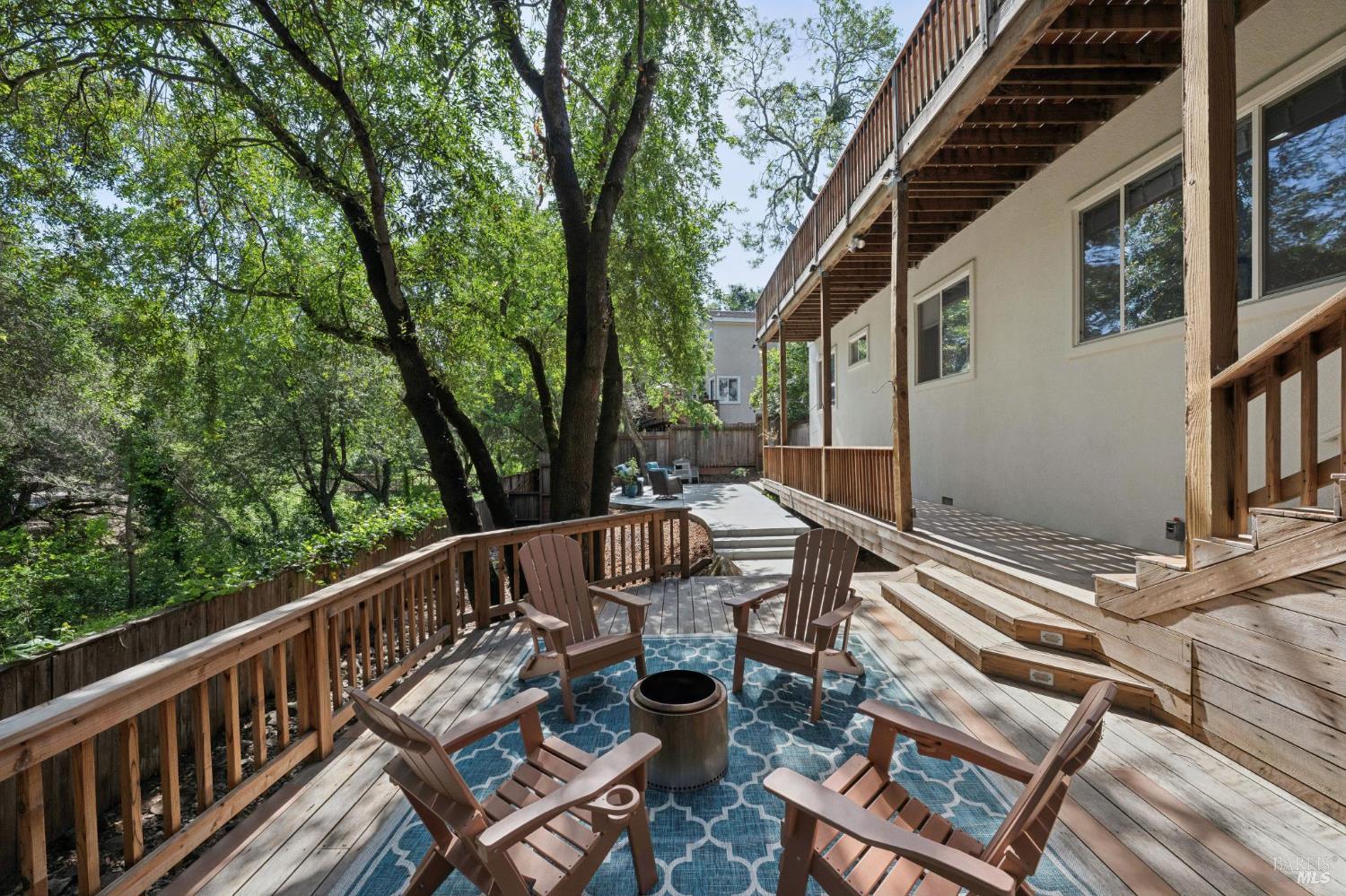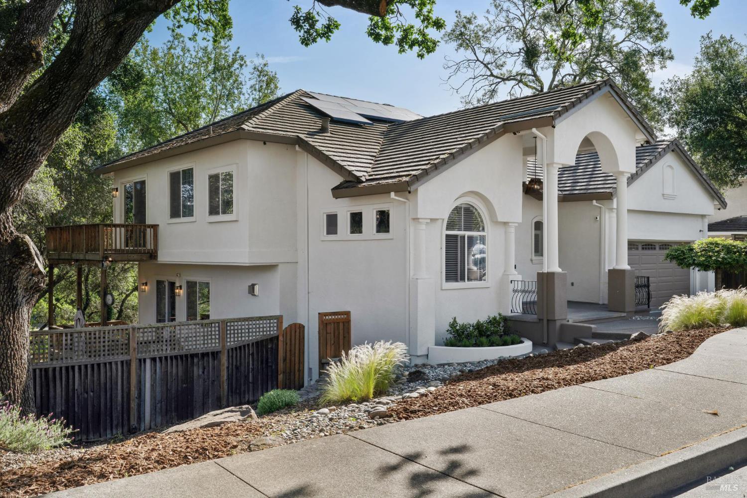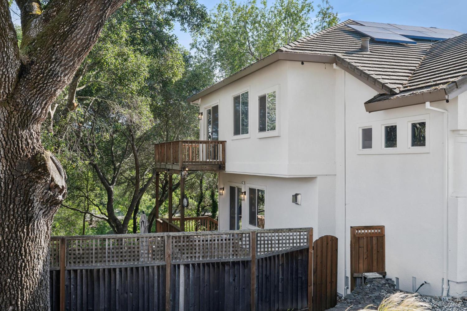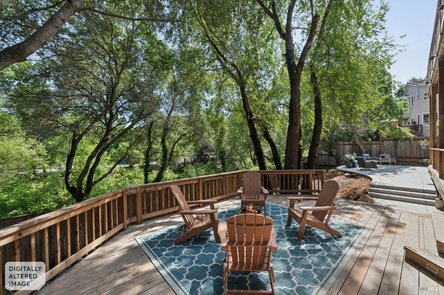Available now is this enchanting and recently updated multi-level home in the highly desirable South East neighborhood of Hampton Woods in the Sonoma County Wine Country city of Santa Rosa. Conveniently located within walking / biking distance to Memorial Hospital, Montgomery Village, Howarth Park, Spring Lake and Trione-Annadel State Park. Built to entertain this enviable family style home backs up to Brush and Santa Rosa Creeks which converge at the renowned river bed area known as Flat Rock. It was here that according to legend Padre Amoros, baptized a young Pomo Indian woman in 1829. Being St. Rose's Feast Day he christened her Rosa from which the City eventually took its name Santa Rosa. Built in 2005 and remodeled several times this just over 3000 sq. ft. home has 4 bed / 3 baths / an extra room that's been utilized as an office, gamers room and gym / yoga area. In addition there are living rooms on each floor one of which has a custom reclaimed wood 168 bottle wine cellar. The recently updated kitchen has tons of black granite counter space, storage and a large center island spanning over 8 feet in length. Stainless Steel appliances, gas burner stove and wine fridge make this chefs kitchen an entertainers dream. The spacious primary bedroom on the main level has glass sliders onto to the massive wrap around wooden deck which provides relaxing views of the creek below as well as direct exterior access to the combination kitchen / dining room. To add a spa like touch the jetted tub in the primary has a dual sided gas fireplace looking directly into the primary bedroom. There is an additional dual sided glass gas fire place connecting the living room with the dining room and kitchen. As if all this wasn't enough there are two spacious relaxing retreat patios one of which has as a fantastic outdoor kitchen / grilling area. To add to this properties serenity you'll find an incredible custom riverbed waterfall designed by Sonoma Cascades offering tranquility and conversational privacy. Owned rooftop Solar and Tesla EV charging panel with wall mounted battery backup in the garage provide energy efficiency and utility expense mitigation. Lastly, there is an abundance of parking with three spaces in the driveway as well as a paved side yard that accommodate either a boat or small RV. The low to no maintenance yard makes living here hassle free. This is one you don't want to miss and an absolutely a must see!