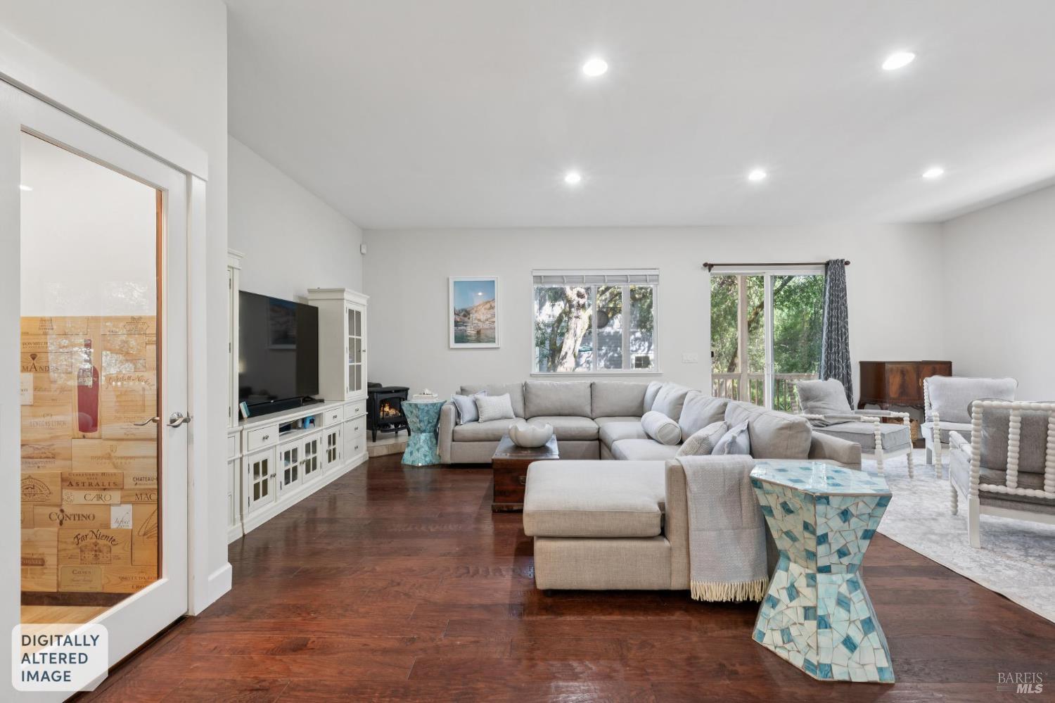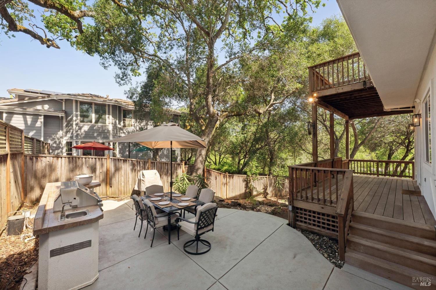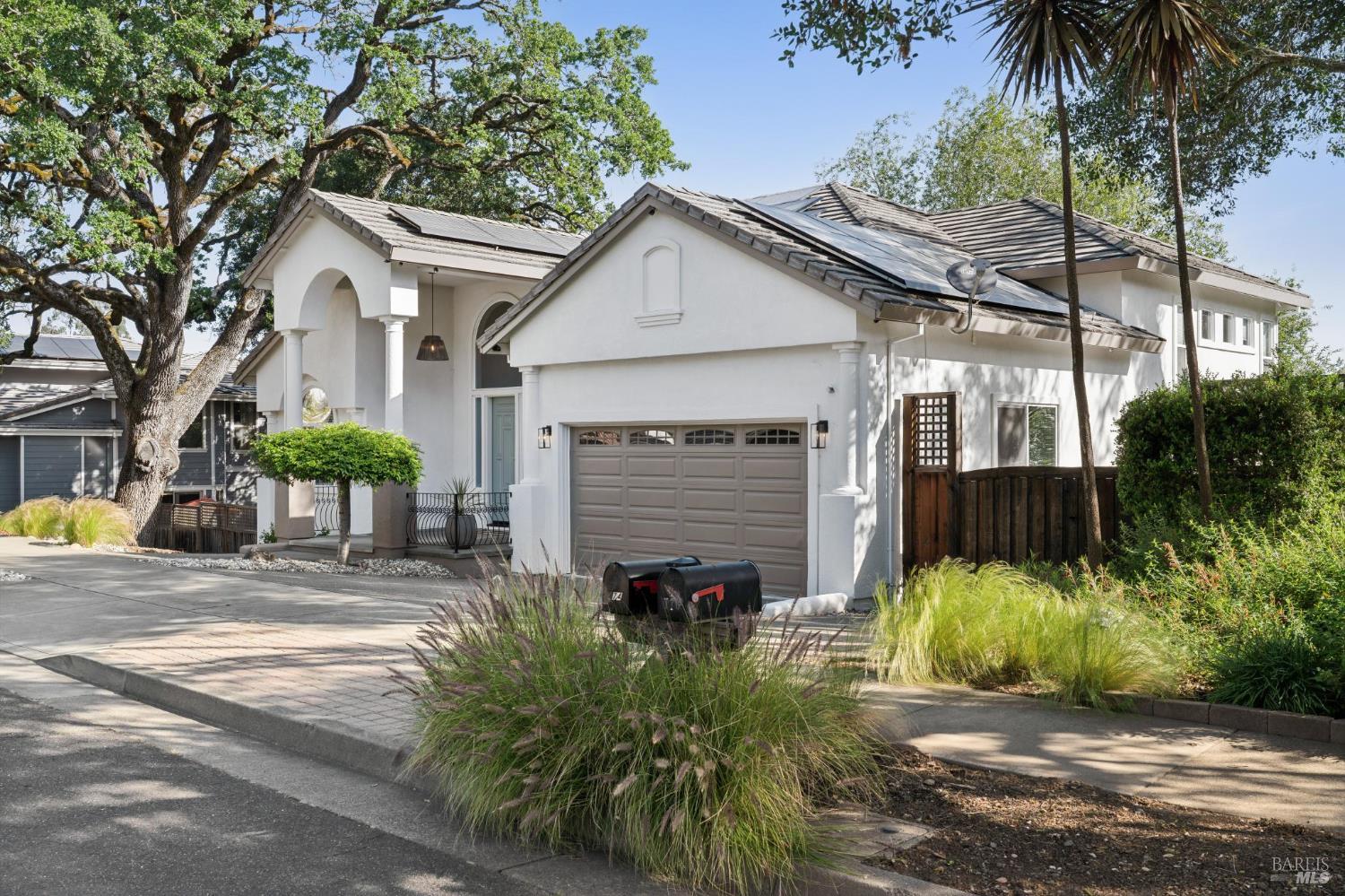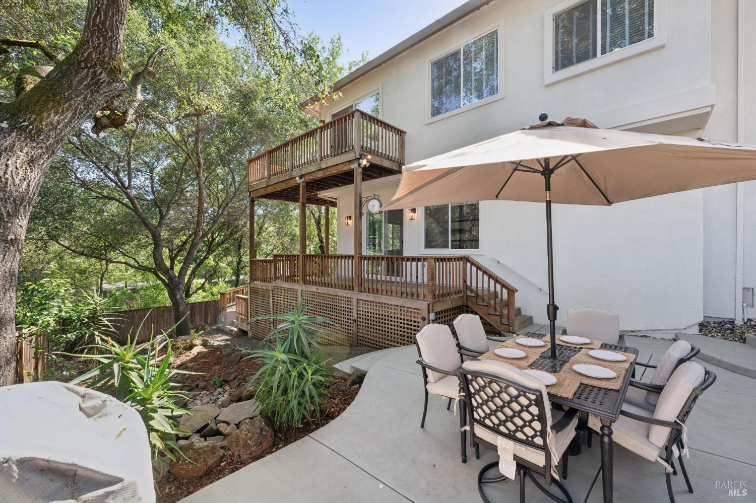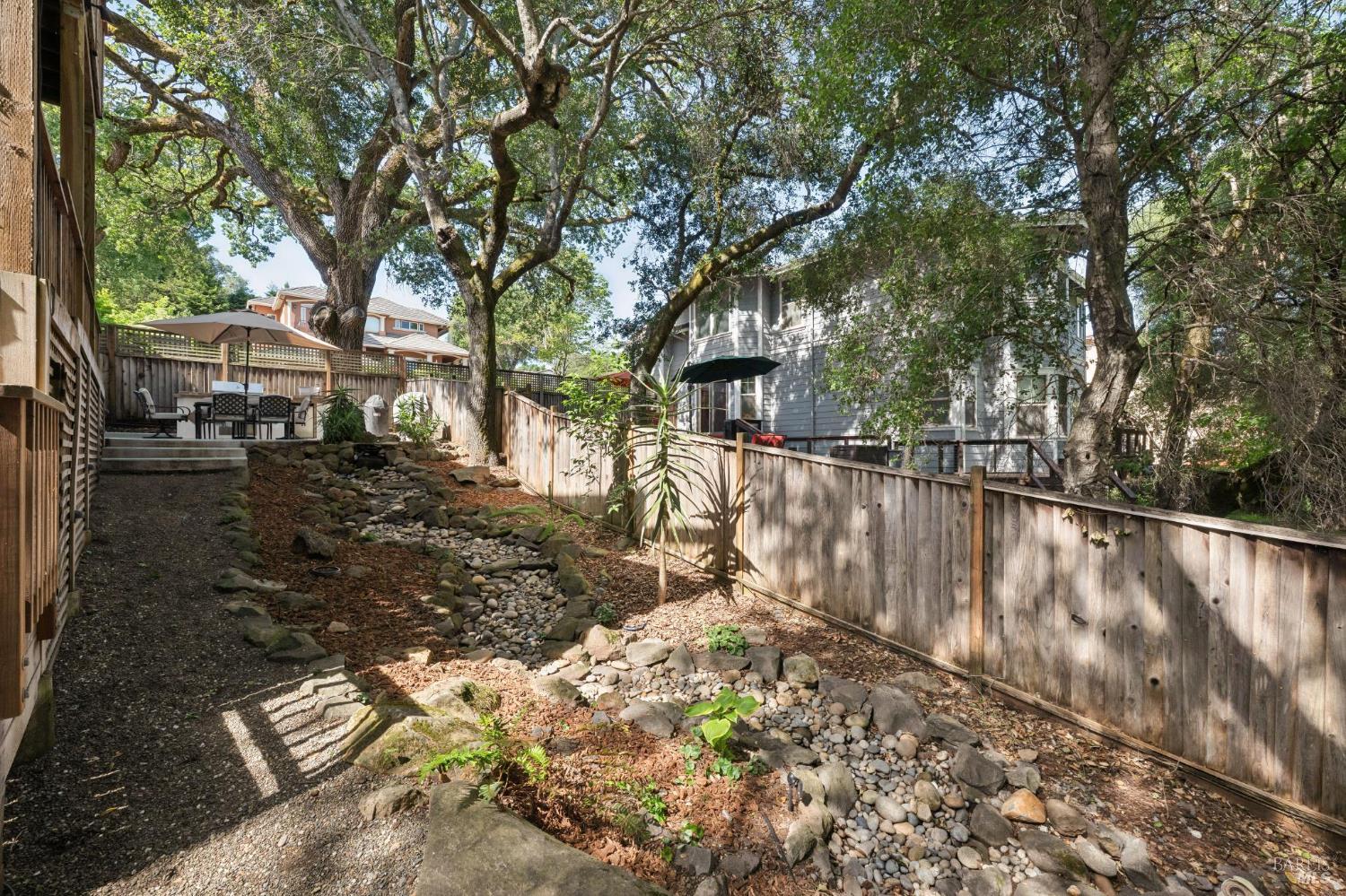 Available now is this enchanting and recently updated multi-level home in the highly desirable South East neighborhood of Hampton Woods in the Sonoma County Wine Country city of Santa Rosa. Conveniently located within walking / biking distance to Memorial Hospital, Montgomery Village, Howarth Park, Spring Lake and Trione-Annadel State Park. Built to entertain this enviable family style home backs up to Brush and Santa Rosa Creeks which converge at the renowned river bed area known as Flat Rock. It was here that according to legend Padre Amoros, baptized a young Pomo Indian woman in 1829. Being St. Rose's Feast Day he christened her Rosa from which the City eventually took its name Santa Rosa. Built in 2005 and remodeled several times this just over 3000 sq. ft. home has 4 bed / 3 baths / an extra room that's been utilized as an office, gamers room and gym / yoga area. In addition there are living rooms on each floor one of which has a custom reclaimed wood 168 bottle wine cellar. The recently updated kitchen has tons of black granite counter space, storage and a large center island spanning over 8 feet in length. Stainless Steel appliances, gas burner stove and wine fridge make this chefs kitchen an entertainers dream. The spacious primary bedroom on the main level has glass sliders onto to the massive wrap around wooden deck which provides relaxing views of the creek below as well as direct exterior access to the combination kitchen / dining room. To add a spa like touch the jetted tub in the primary has a dual sided gas fireplace looking directly into the primary bedroom. There is an additional dual sided glass gas fire place connecting the living room with the dining room and kitchen. As if all this wasn't enough there are two spacious relaxing retreat patios one of which has as a fantastic outdoor kitchen / grilling area. To add to this properties serenity you'll find an incredible custom riverbed waterfall designed by Sonoma Cascades offering tranquility and conversational privacy. Owned rooftop Solar and Tesla EV charging panel with wall mounted battery backup in the garage provide energy efficiency and utility expense mitigation. Lastly, there is an abundance of parking with three spaces in the driveway as well as a paved side yard that accommodate either a boat or small RV. The low to no maintenance yard makes living here hassle free. This is one you don't want to miss and an absolutely a must see!