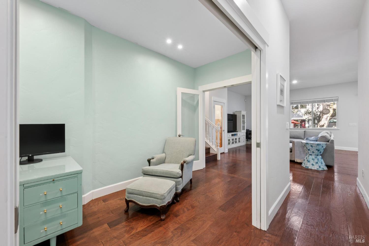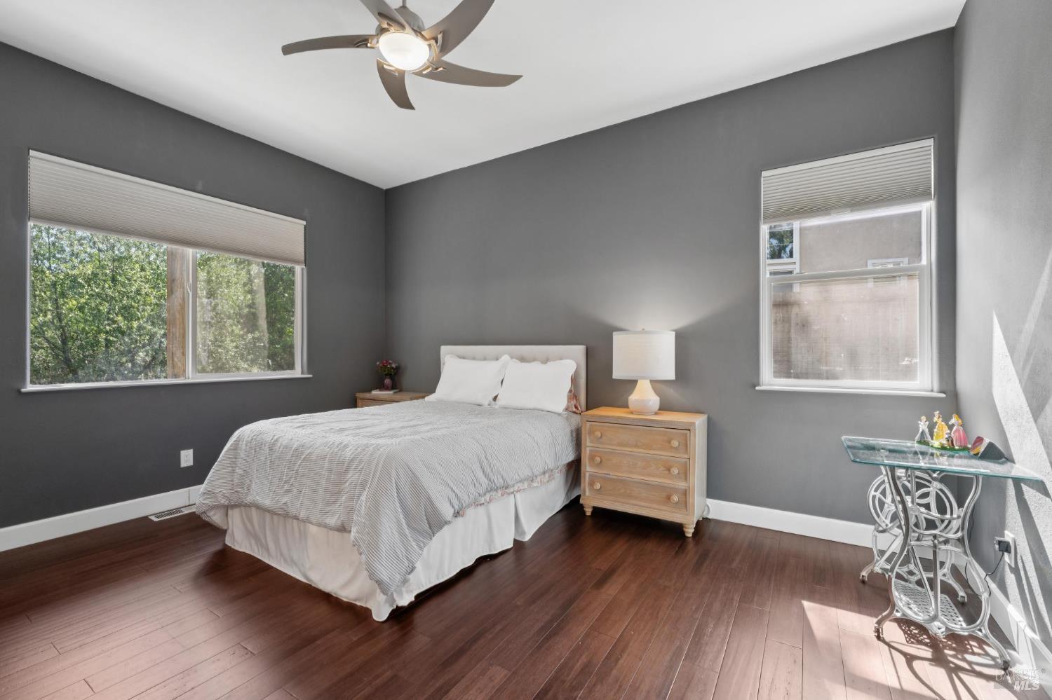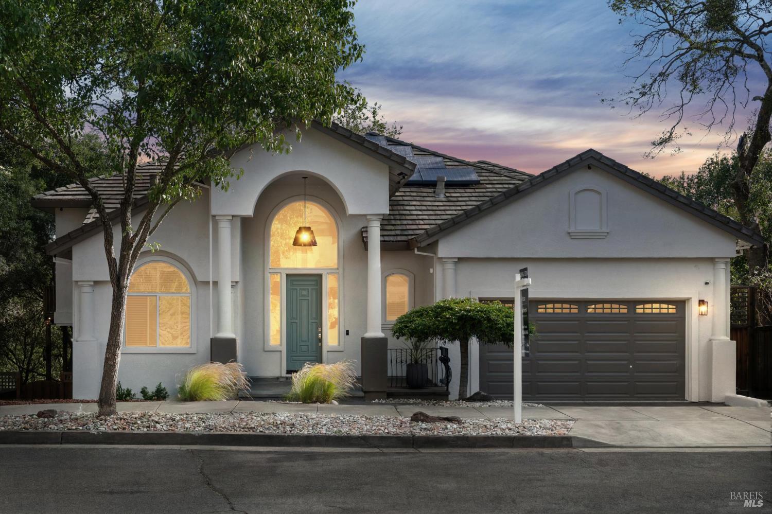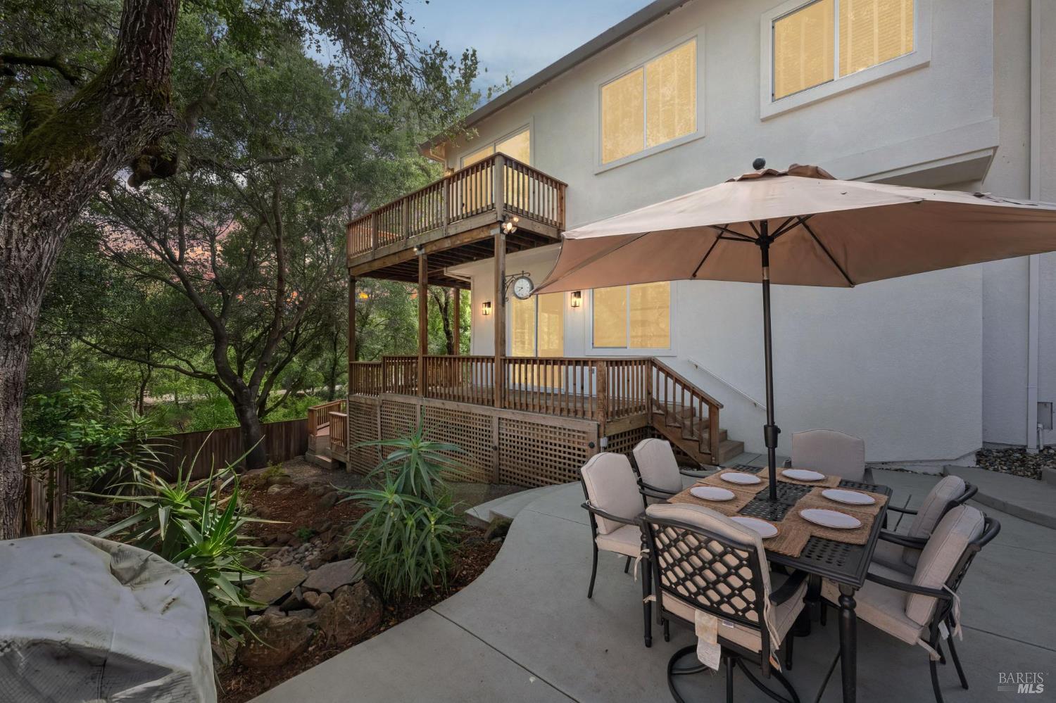 Available now is this enchanting and recently updated multi-level home in the highly desirable South East neighborhood of Hampton Woods in the Sonoma County Wine Country city of Santa Rosa. Conveniently located within walking / biking distance to Memorial Hospital, Montgomery Village, Howarth Park, Spring Lake and Trione-Annadel State Park. Built to entertain this enviable family style home backs up to Brush and Santa Rosa Creeks which converge at the renowned river bed area known as Flat Rock. It was here that according to legend Padre Amoros, baptized a young Pomo Indian woman in 1829. Being St. Rose's Feast Day he christened her Rosa from which the City eventually took its name Santa Rosa. Built in 2005 and remodeled several times this just over 3000 sq. ft. home has 4 bed / 3 baths / an extra room that's been utilized as an office, gamers room and gym / yoga area. In addition there are living rooms on each floor one of which has a custom reclaimed wood 168 bottle wine cellar. The recently updated kitchen has tons of black granite counter space, storage and a large center island spanning over 8 feet in length. Stainless Steel appliances, gas burner stove and wine fridge make this chefs kitchen an entertainers dream. The spacious primary bedroom on the main level has glass sliders onto to the massive wrap around wooden deck which provides relaxing views of the creek below as well as direct exterior access to the combination kitchen / dining room. To add a spa like touch the jetted tub in the primary has a dual sided gas fireplace looking directly into the primary bedroom. There is an additional dual sided glass gas fire place connecting the living room with the dining room and kitchen. As if all this wasn't enough there are two spacious relaxing retreat patios one of which has as a fantastic outdoor kitchen / grilling area. To add to this properties serenity you'll find an incredible custom riverbed waterfall designed by Sonoma Cascades offering tranquility and conversational privacy. Owned rooftop Solar and Tesla EV charging panel with wall mounted battery backup in the garage provide energy efficiency and utility expense mitigation. Lastly, there is an abundance of parking with three spaces in the driveway as well as a paved side yard that accommodate either a boat or small RV. The low to no maintenance yard makes living here hassle free. This is one you don't want to miss and an absolutely a must see!