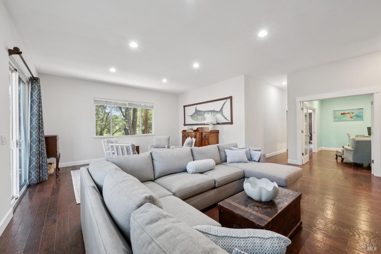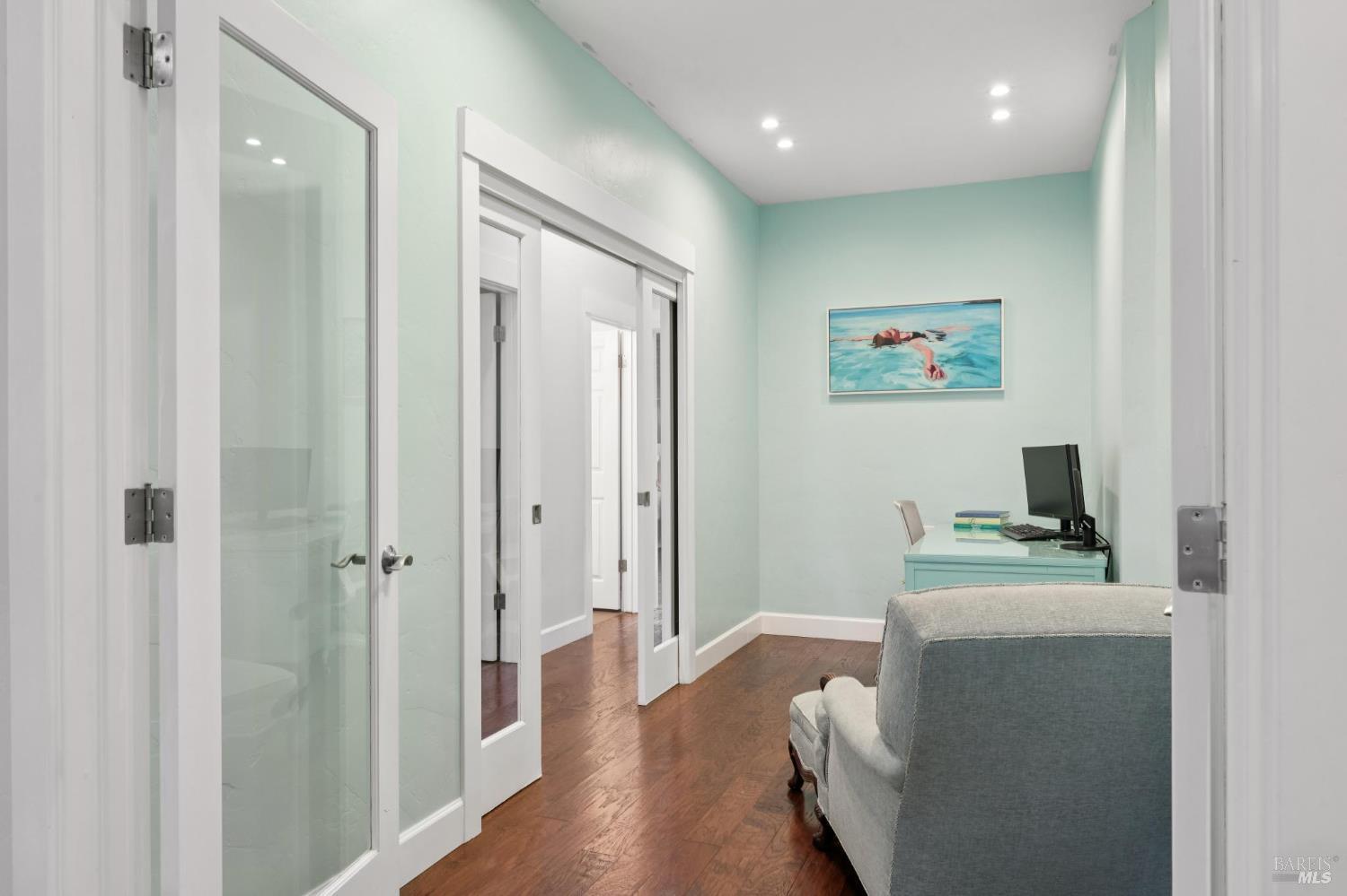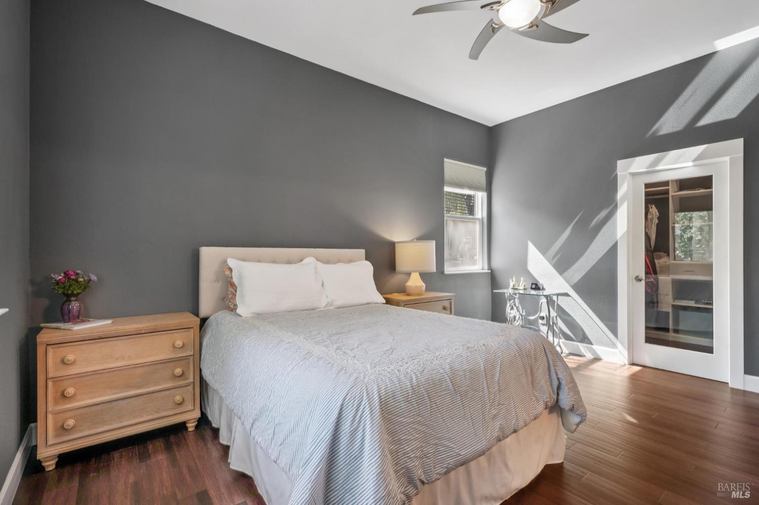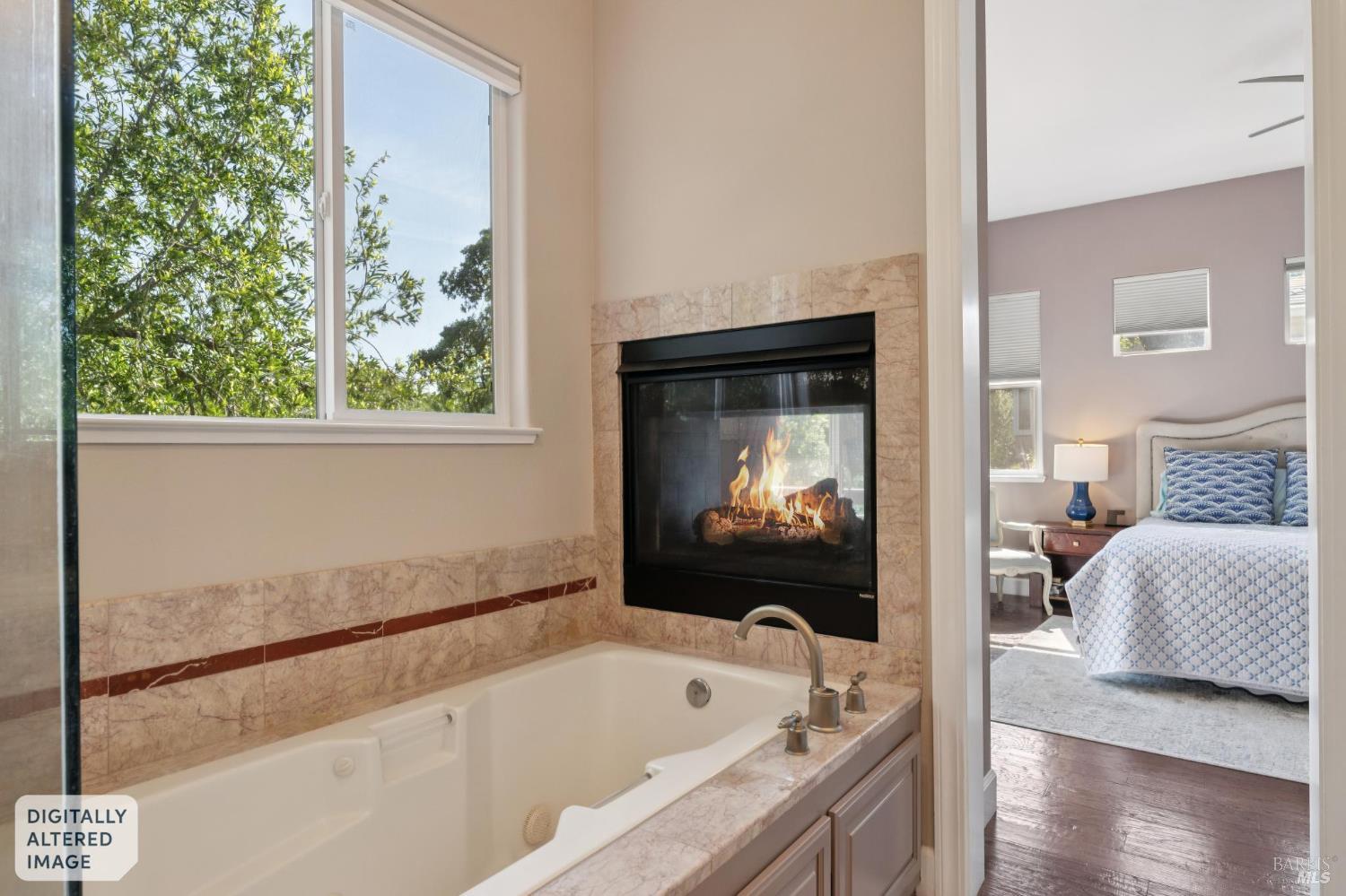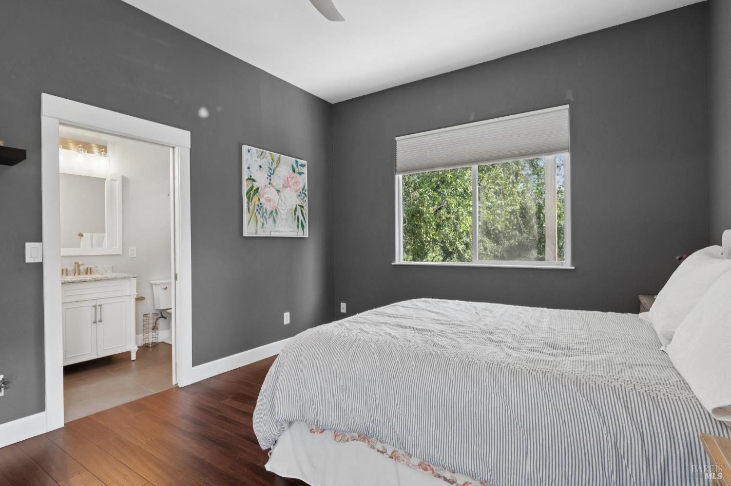 Available now is this enchanting and recently updated multi-level home in the highly desirable South East neighborhood of Hampton Woods in the Sonoma County Wine Country city of Santa Rosa. Conveniently located within walking / biking distance to Memorial Hospital, Montgomery Village, Howarth Park, Spring Lake and Trione-Annadel State Park. Built to entertain this enviable family style home backs up to Brush and Santa Rosa Creeks which converge at the renowned river bed area known as Flat Rock. It was here that according to legend Padre Amoros, baptized a young Pomo Indian woman in 1829. Being St. Rose's Feast Day he christened her Rosa from which the City eventually took its name Santa Rosa. Built in 2005 and remodeled several times this just over 3000 sq. ft. home has 4 bed / 3 baths / an extra room that's been utilized as an office, gamers room and gym / yoga area. In addition there are living rooms on each floor one of which has a custom reclaimed wood 168 bottle wine cellar. The recently updated kitchen has tons of black granite counter space, storage and a large center island spanning over 8 feet in length. Stainless Steel appliances, gas burner stove and wine fridge make this chefs kitchen an entertainers dream. The spacious primary bedroom on the main level has glass sliders onto to the massive wrap around wooden deck which provides relaxing views of the creek below as well as direct exterior access to the combination kitchen / dining room. To add a spa like touch the jetted tub in the primary has a dual sided gas fireplace looking directly into the primary bedroom. There is an additional dual sided glass gas fire place connecting the living room with the dining room and kitchen. As if all this wasn't enough there are two spacious relaxing retreat patios one of which has as a fantastic outdoor kitchen / grilling area. To add to this properties serenity you'll find an incredible custom riverbed waterfall designed by Sonoma Cascades offering tranquility and conversational privacy. Owned rooftop Solar and Tesla EV charging panel with wall mounted battery backup in the garage provide energy efficiency and utility expense mitigation. Lastly, there is an abundance of parking with three spaces in the driveway as well as a paved side yard that accommodate either a boat or small RV. The low to no maintenance yard makes living here hassle free. This is one you don't want to miss and an absolutely a must see!