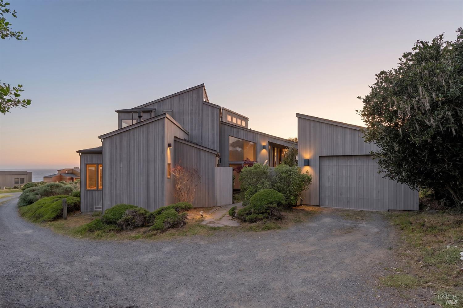 Enjoy panoramic ocean views from most every room in this stunning west side home. Just moments to bluff top trails, Smuggler Cove, Pebble Beach and Ohlson Recreation Center. The elevated lot makes for great whale watching and star gazing. Oversized stunning entry with large closet. Upper level is bright and open for entertaining with a gourmet kitchen, breakfast nook, dining, living area and half bath. Opening up to view deck. Lower level features two large bedroom suites opening to decks. A special separate bed/bath studio is charming and very private. Private Spa area and courtyard. One car garage with Tesla charger. Enjoy this great location on The Sea Ranch; Biking, hikes, pools and so much more. A short drive to Gualala for shopping, medical or golf. Popular short term rental. Sold Turn key, ready to move in.
