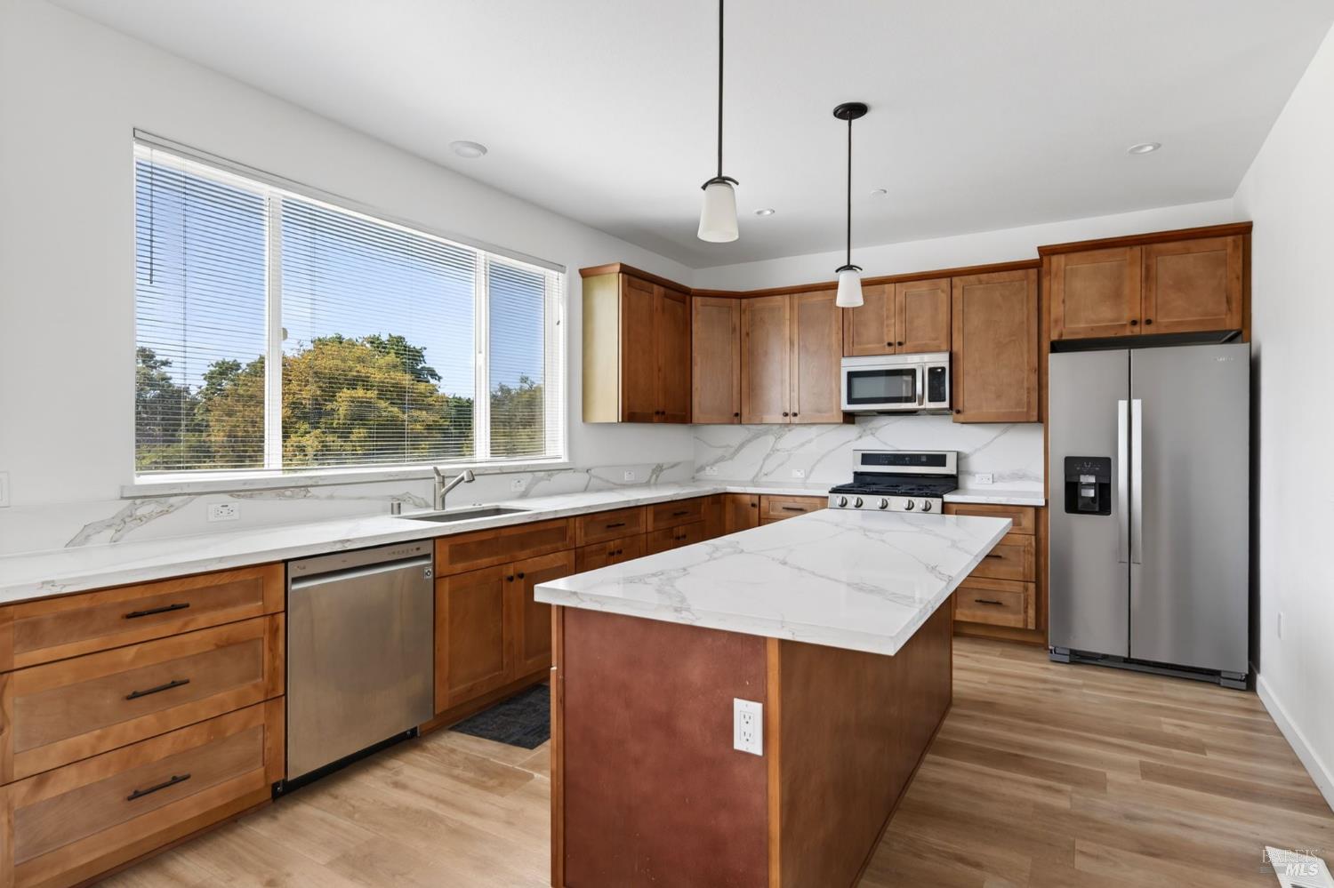 Welcome to 2017 Elson Way in Northwest Santa Rosa a beautifully built 2022 home offering modern comfort, efficiency, and flexibility with no HOA. This 3-bedroom, 2.5-bathroom home spans 1,808 square feet and features a thoughtfully designed, multi-level layout ideal for today's lifestyle. The main living area is situated on the second floor, where an open-concept design seamlessly connects the living room, dining area, and kitchen creating a bright, spacious environment perfect for both everyday living and entertaining. The kitchen serves as the heart of the home, complete with stainless steel appliances, sleek cabinetry, and ample counter space for cooking and gathering. On the first floor, you'll find a versatile office or flex space ideal for working from home, a gym, or additional living needs. This space opens directly to the private yard, offering a great indoor-outdoor connection. All three bedrooms are thoughtfully located on the third level, providing privacy and a functional layout. The primary suite features its own en-suite bathroom and generous closet space, while the additional bedrooms are well-sized and share access to a full bathroom. Additional highlights include fresh interior paint throughout and central air conditioning for year-round comfort. Located in desirable Northwest Santa Rosa, you'll enjoy close proximity to shopping, dining, and everyday conveniences without the added cost or restrictions of an HOA. Modern build. Functional layout. Flexible living. Move-in ready.