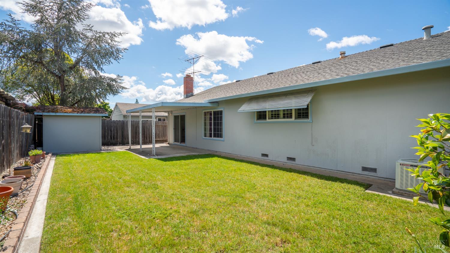 This charming single-story home features three bedrooms, two baths, and a functional floor plan designed for comfortable living. The formal living room and family room with a fireplace provide versatile spaces for entertaining or quiet evenings, while the kitchen flows into the dining area for easy gatherings. Lovingly maintained by its original owners, the home boasts wood laminate flooring, dual pane windows, plantation shutters, and central heating and air conditioning. The backyard offers inviting spaces for relaxation or entertaining, complemented by a two-car attached garage and a storage shed. Ideally situated on a quiet court near shopping, schools, and everyday conveniences, this home blends comfort and potential. Whether you're ready to personalize it or move right in, this home is ready for its new owners.
