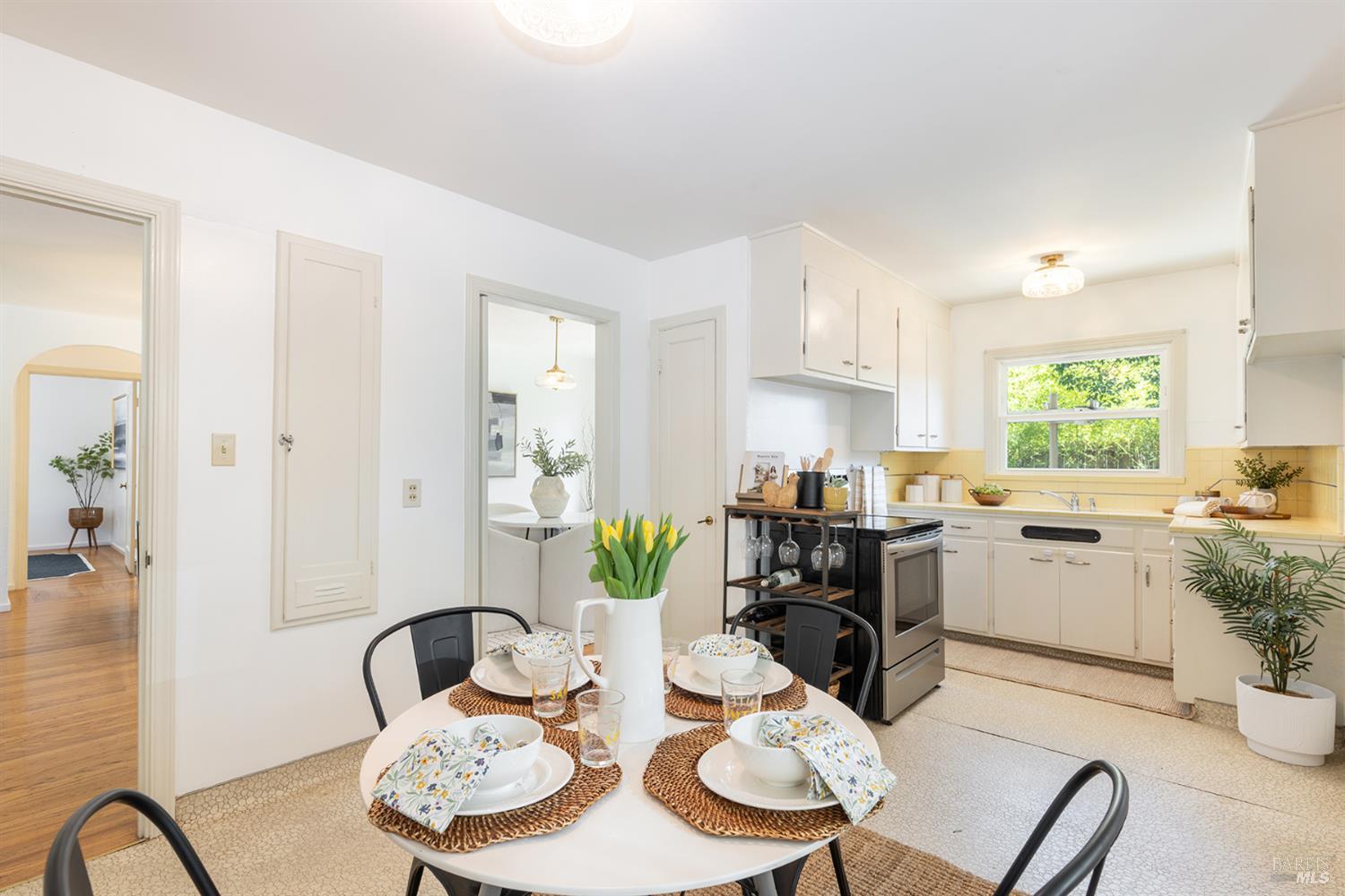 Set in the heart of Santa Rosa's sought-after JC neighborhood, this inviting single-level home blends timeless character with everyday comfort. Built in 1949, the home retains its vintage charm with sweet butter yellow tile in the kitchen and classic pink tile in the bathroom; details that add warmth, personality, and a nostalgic touch that's hard to find. Offering 2 bedrooms, 1 bath, and approximately 1,083 square feet on a 5000 sf lot, the layout is both functional and easy to live in. Original oak floors run throughout, adding classic warmth and character, while natural light fills the home and makes each space feel bright and welcoming. Arched doorways add a soft architectural touch, and the shaded front porch creates a cozy spot to relax and enjoy the neighborhood. The living spaces flow comfortably, ideal for both relaxed daily living and casual gatherings. Just a couple of blocks from Humboldt Park, the location adds to the home's appeal with a sweet neighborhood feel and easy access to green space. Fully fenced backyard offering privacy and flexibility; perfect for gardening, outdoor dining, or simply enjoying Sonoma County's mild climate. A generous driveway provides convenient off-street parking. Located near Santa Rosa Junior College, local shops, dining, and public transit, this home offers a connected lifestyle in one of Santa Rosa's most established neighborhoods. Whether you're looking for a primary residence or an investment opportunity, this property presents a compelling option with both charm and potential.