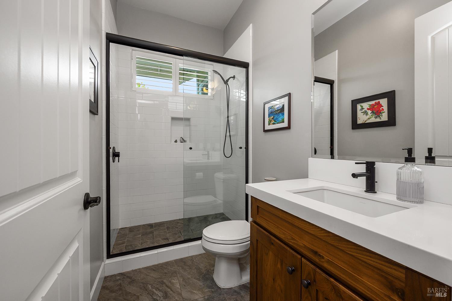 This meticulously designed single-level residence is a masterclass in functional elegance. Situated on an expansive corner lot, the home offers a seamless blend of sustainability and style featuring fully paid-off solar and a Tesla battery backup for ultimate peace of mind. The interior is currently configured for flexible living as a 2-bedroom plus den, though it is easily restored to its formal 3-bedroom layout (ask about the possible seller's wall-enclosure credit!). Outside, your private oasis awaits. Host gatherings on the custom-built deck under a beautiful pergola, or rejuvenate in the integrated swim spa. With a secondary driveway, dedicated RV parking, and a septic system engineered for future expansion (ADU potential), this property isn't just a home it's a future-proof investment.