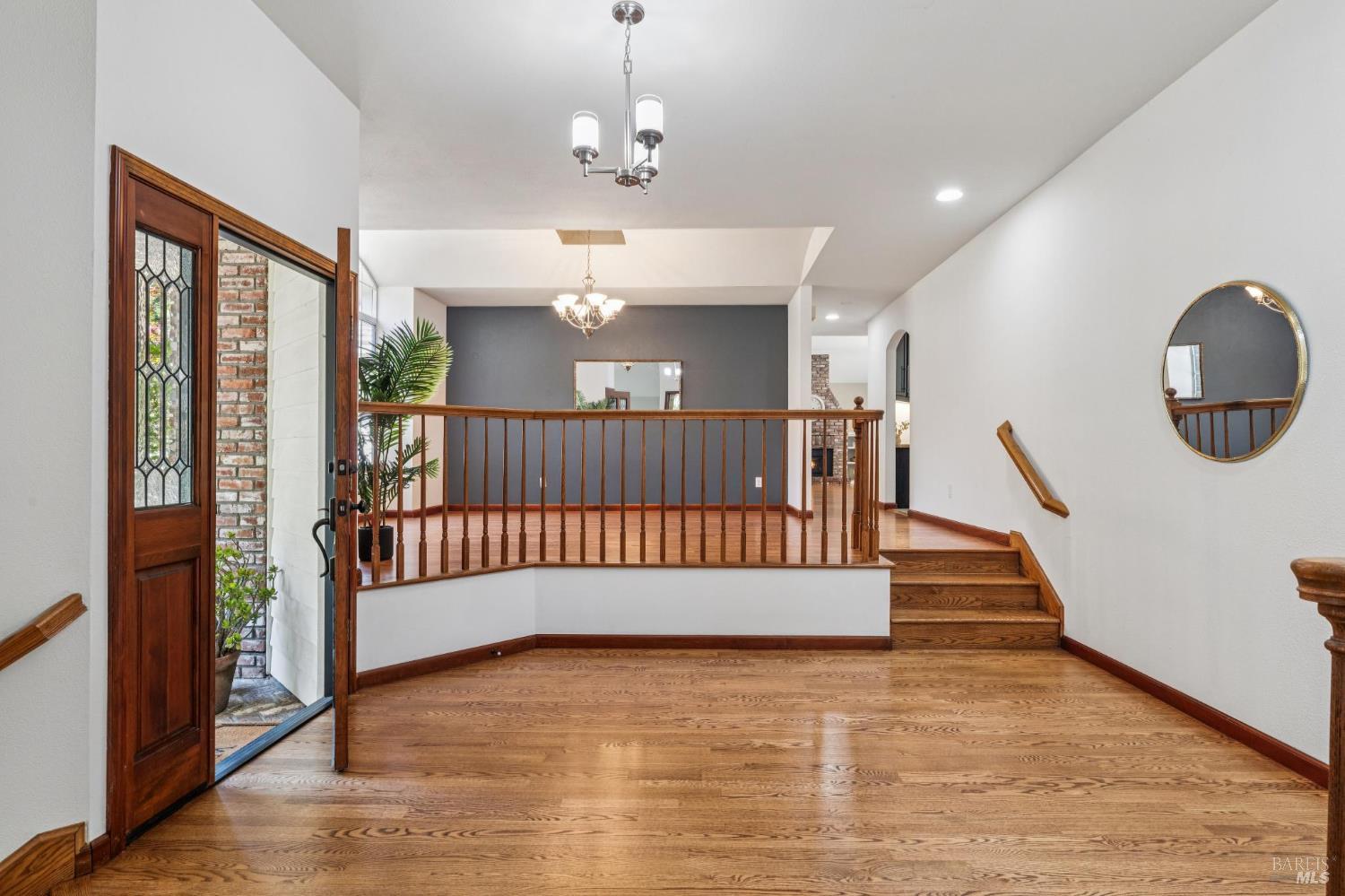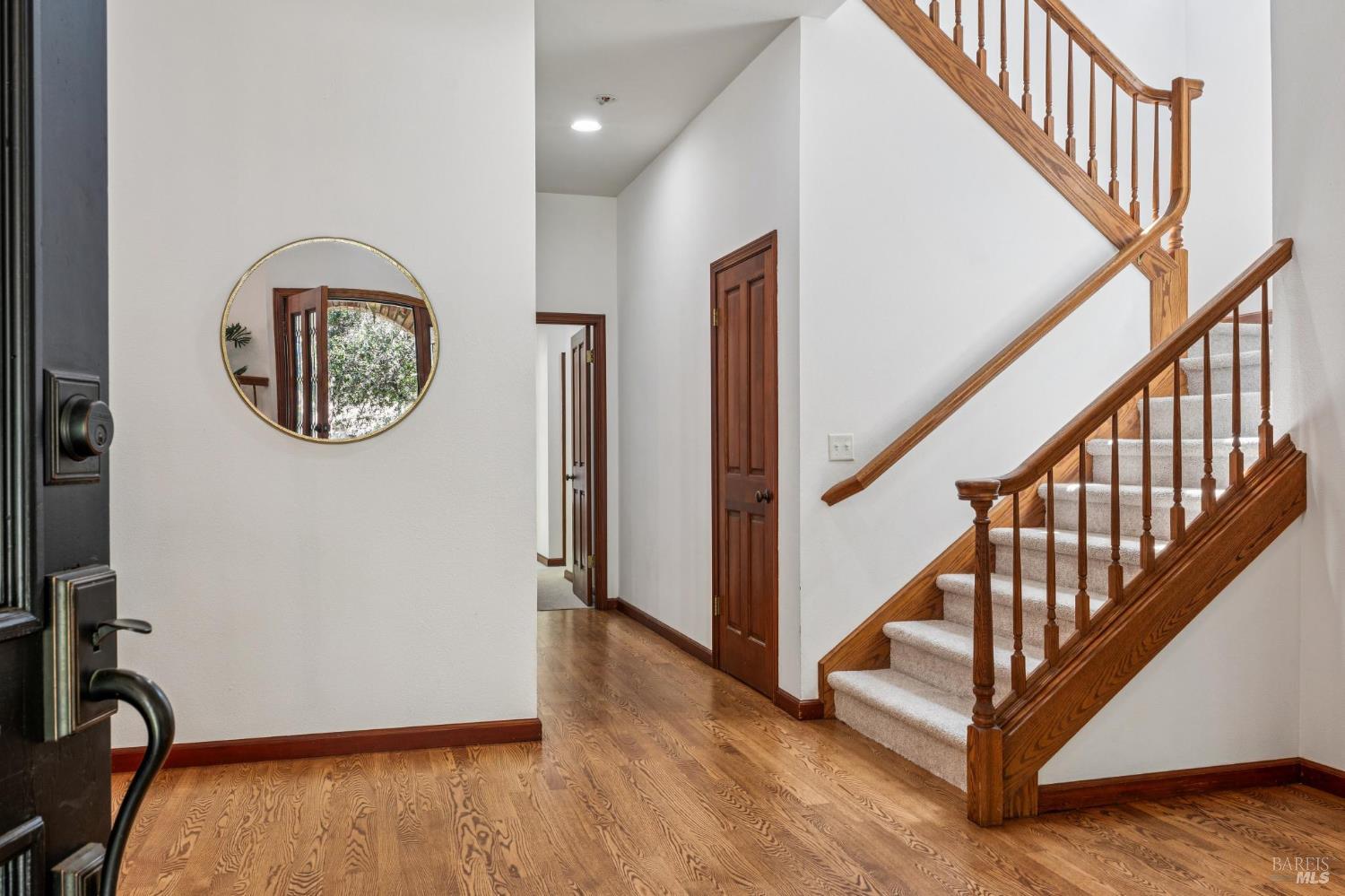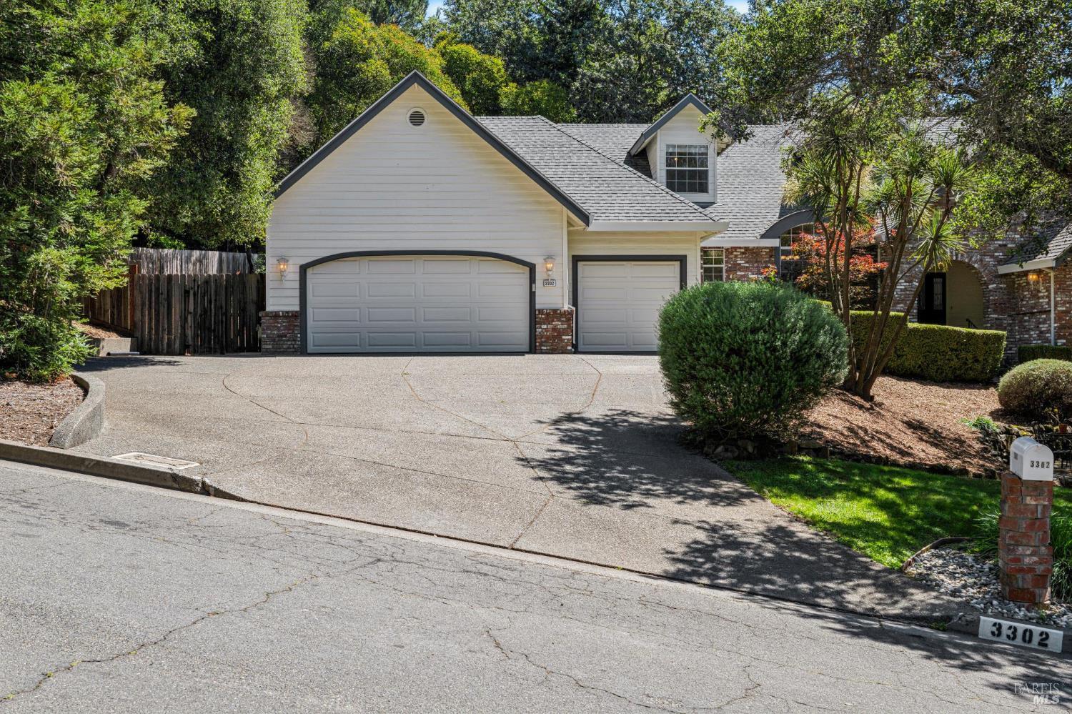 Set on a beautifully landscaped, private half-acre lot, this 3,247 sq ft home offers 4 bedrooms, 2.5 bathrooms, and a 3-car garage. Classic hardwood floors flow throughout the main level, complemented by brand-new carpet in additional rooms and recessed lighting across both levels. The spacious main-level primary suite features a large walk-in closet, vaulted ceilings, and updated bathroom with dual vanities and a vessel tub. The well appointed kitchen includes solid stone counters, 5-burner gas stove, double ovens, and a built-in desk nook beside an integrated informal dining area. Just off the kitchen, the family room showcases a brick gas fireplace, built-ins and timeless french doors that open to the expansive backyard. Enjoy quiet evenings under Sonoma County's Mediterranean climate or host outdoor dinner parties with ample space on the deck and patio, all surrounded by mature landscaping with automatic irrigation. Upstairs, you'll find 3 additional bedrooms and a stylishly updated bathroom with floating dual sink vanities. Abundant storage space throughout the home including an oversized laundry room with folding counter & cabinetry, multiple closets & more. The large driveway offers plenty of parking in addition to the 3-car garage that boasts a dedicated area with built-in work bench and drawers for all your tools. 3302 Jeremy is located just minutes from award-winning Hidden Valley schools, Howarth Park, major hospitals (2.5 mi), Oliver's Market (1.5 mi), Starbucks (2 mi), Hwy 101 entrance (2.4 mi), and the STS Airport (7.7mi). Experience all Sonoma County has to offer with easy access to wine country, hiking trails in Annadel State Park's 5,000 acres of rolling hills and Spring Lake/Howarth Park, as well as world-renowned fine-dining restaurants, wineries & breweries.