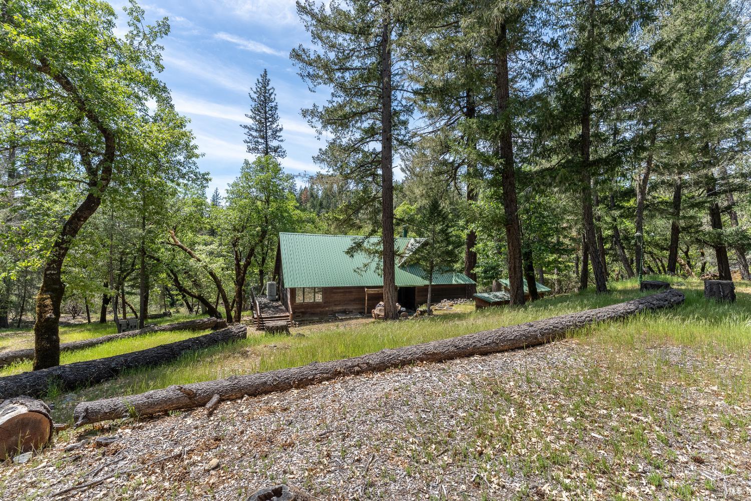 Wake up to the sound of flowing water and step into a lifestyle rooted in peace, privacy, and nature. This 2,766 sq. ft. cabin overlooks the clearest stretch of Salmon Creek, offering a truly magical setting. Designed with intention, the home features a metal roof, striking custom windows, and an open layout that brings people together effortlessly. The lower-level primary suite creates easy living, while two loft areas provide space to unwind, create, or host. With 5.55 acres across multiple legal parcels, there's room here to expand your vision or simply enjoy the freedom of open land. A massive metal shop with three roll up doors can house all of your toys. Just five minutes to the lake where you can enjoy fishing, boating and more. This property is set within the gated Lake Pillsbury Ranch community, where you'll have access to a swimming pond, BBQ area, playground, tennis courts, boat storage, horse stables, and wide-open space to explore. This is more than a home, it's an off-grid retreat where recreation, relaxation, and connection to nature come naturally.