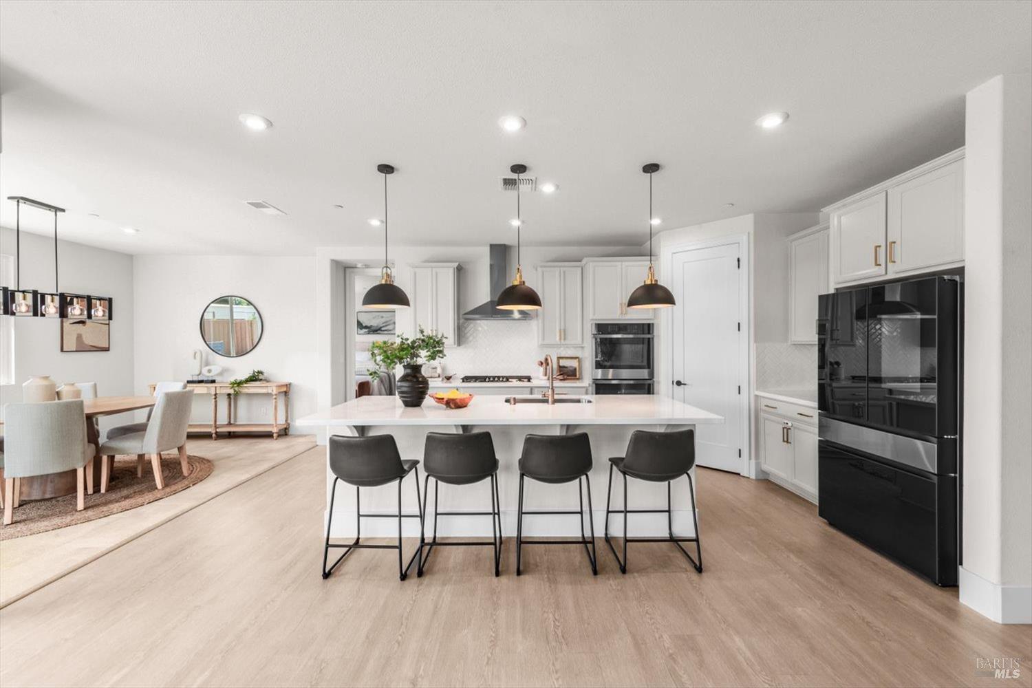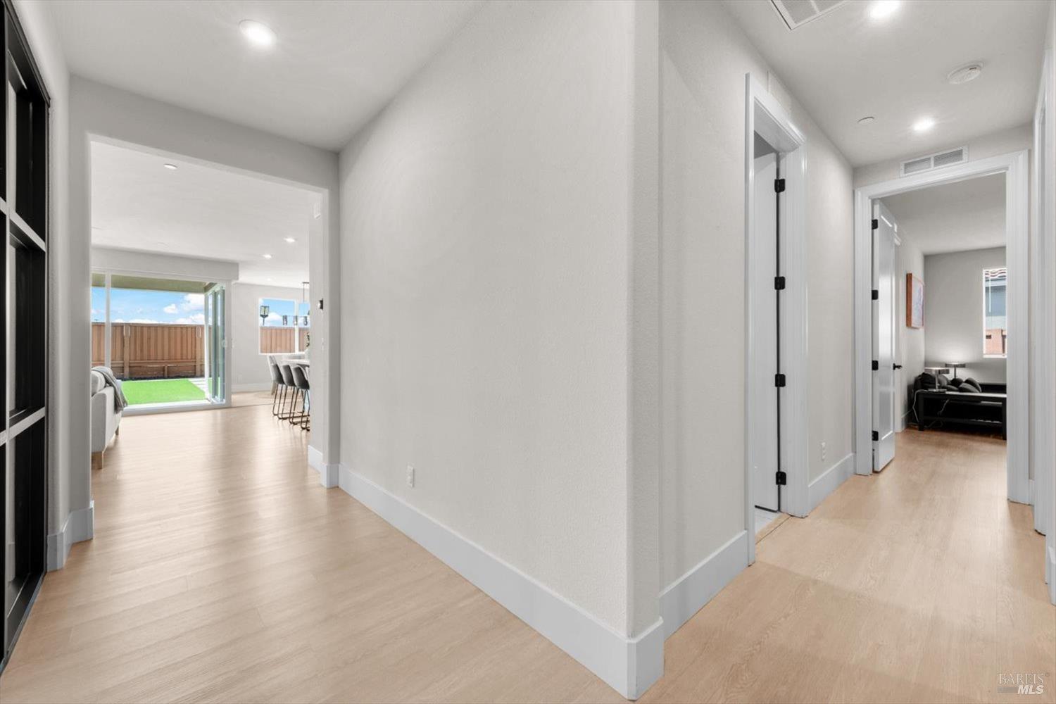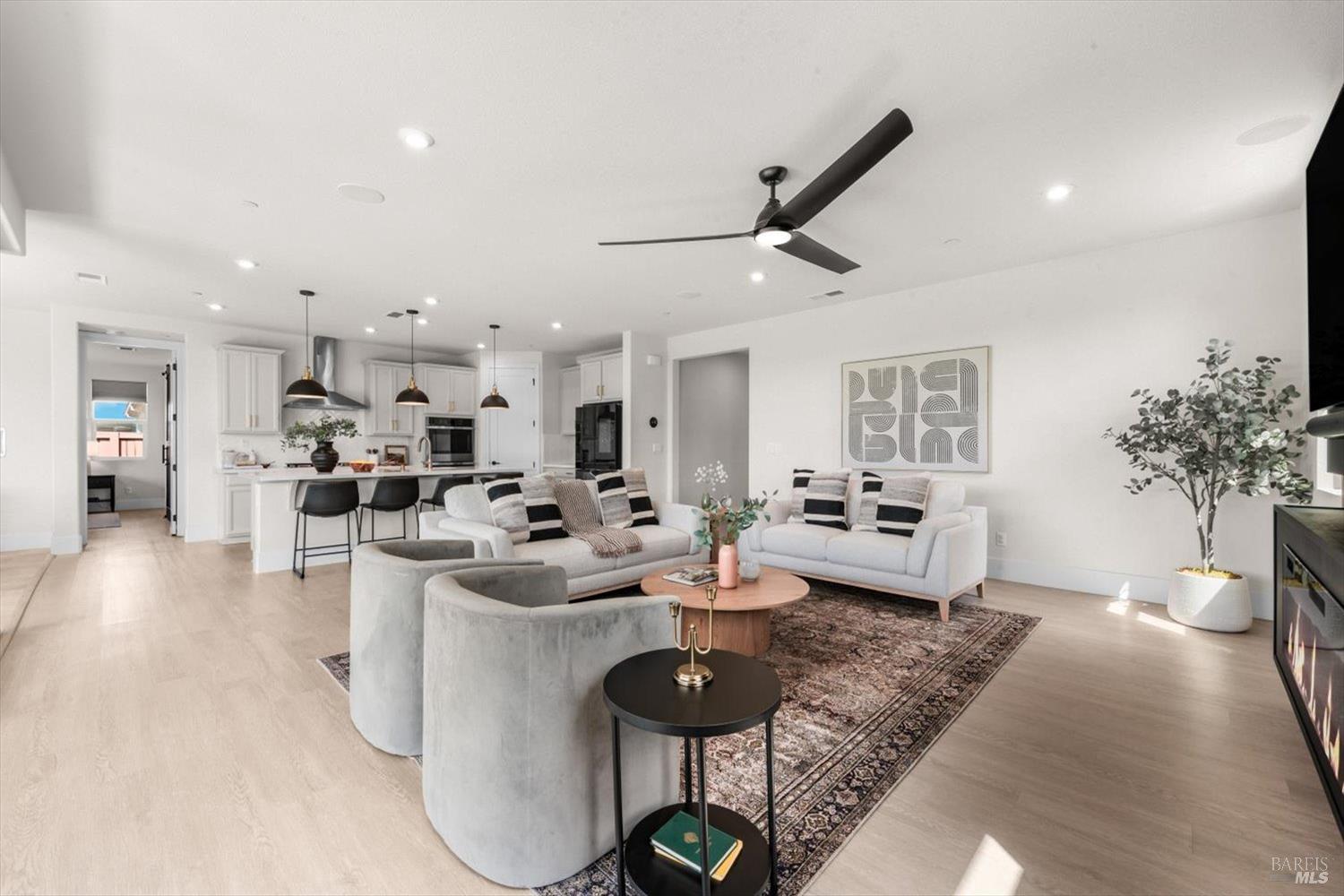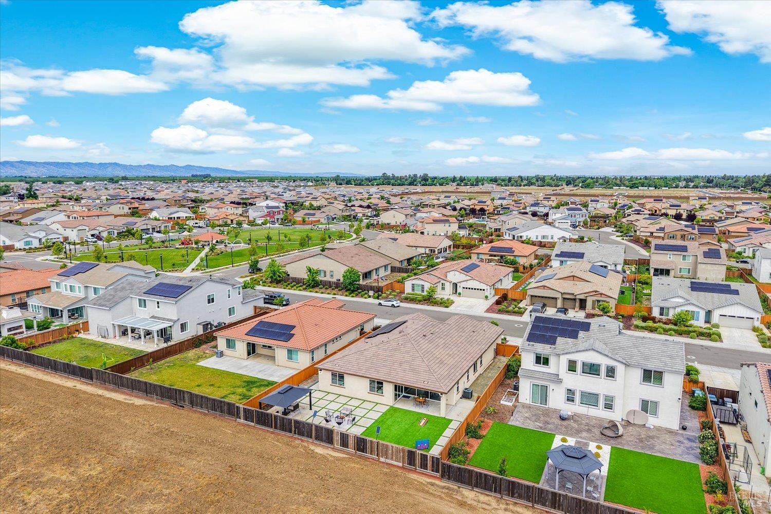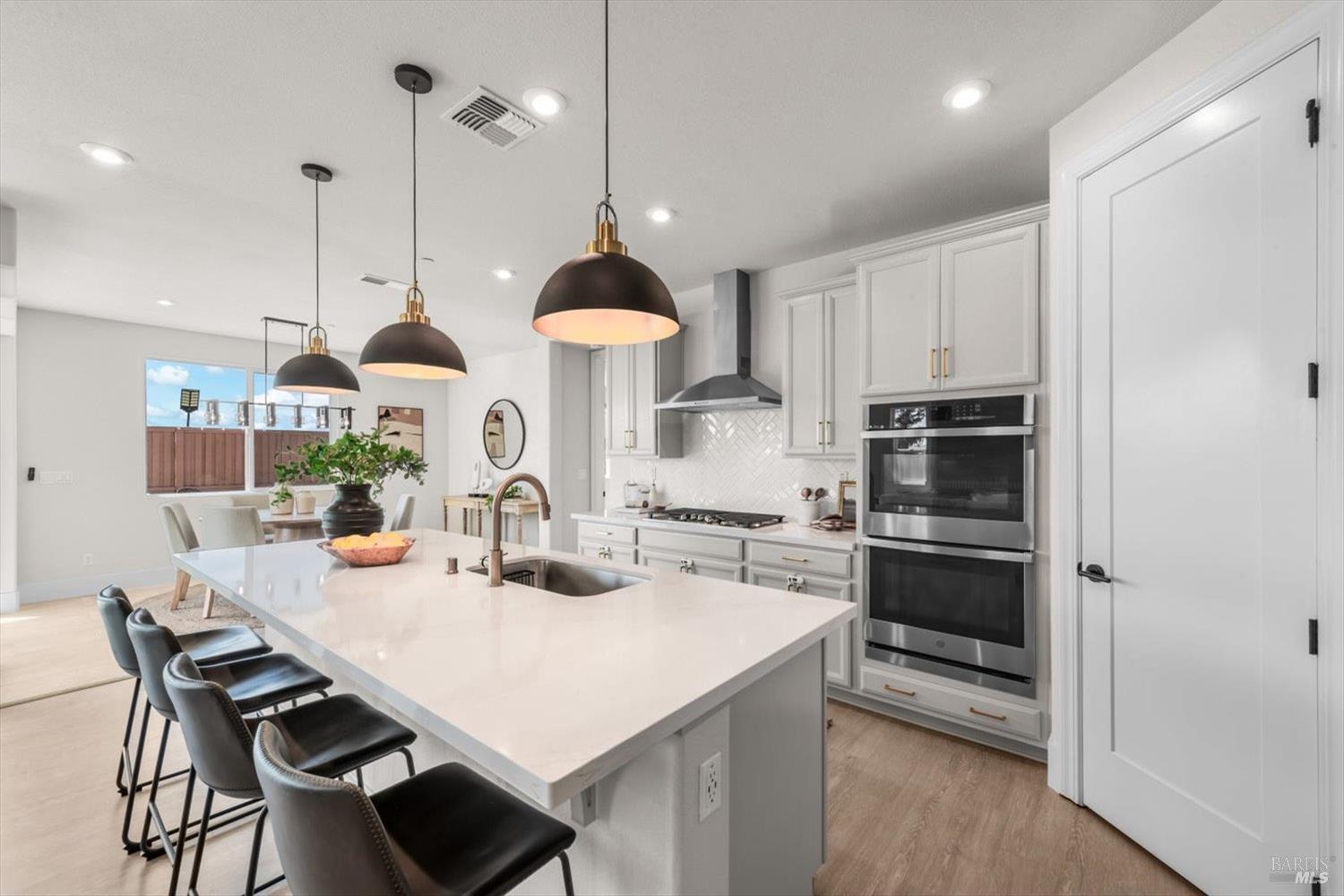 1455 Blossom Way offers nearly 3,000 square feet of single-story living, a 3-car garage, and an attached private, independent living suite. The main home is defined by a floor-to-ceiling, expansive sliding glass door that creates a seamless connection to the outdoors. Built in 2022, this 4-bedroom plus office, 3.5-bathroom home blends modern design with today's living needs. A welcoming entry and elegant hallway lead into the main living space, featuring 9-foot ceilings, where the kitchen, dining, and living areas come together in an open and inviting layout. A striking floor-to-ceiling, sliding glass door spans two walls, creating a seamless connection to the backyard, taking indoor-outdoor living to a whole new level. The kitchen showcases a transitional aesthetic with light gray cabinetry, gold hardware, quartz countertops, a gas cooktop, and a walk-in pantry, blending classic design with current finishes that feel both fresh and timeless. The primary suite offers a spacious retreat with an oversized tiled walk-in shower, dual sinks, and a large walk-in closet with built-in organizers. A dedicated office features a unique interior glass window, creating a connected workspace while still offering separation. Additional highlights include a walk-in laundry room with added storage. Privately positioned, the attached suite includes its own entrance, living room, bedroom, kitchenette, shower stall, walk-in closet, and laundry hookups and private patio. This flexible space works well for extended living, guests, or additional income potential. The backyard provides generous space to gather whether you want to relax or play games on the open turf, all while backing to open space for added privacy. With tall the benefits of newer construction, including energy efficiency, modern systems, plus completed landscaping, this home is move-in ready and conveniently located just minutes from I-80. If you have been searching for true multigenerational living with elevated design, this home delivers.